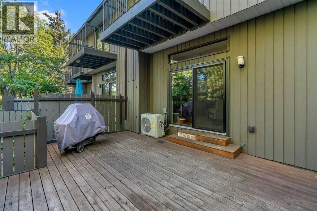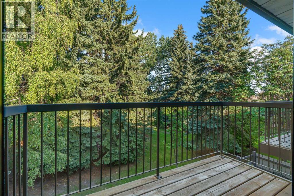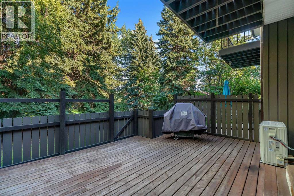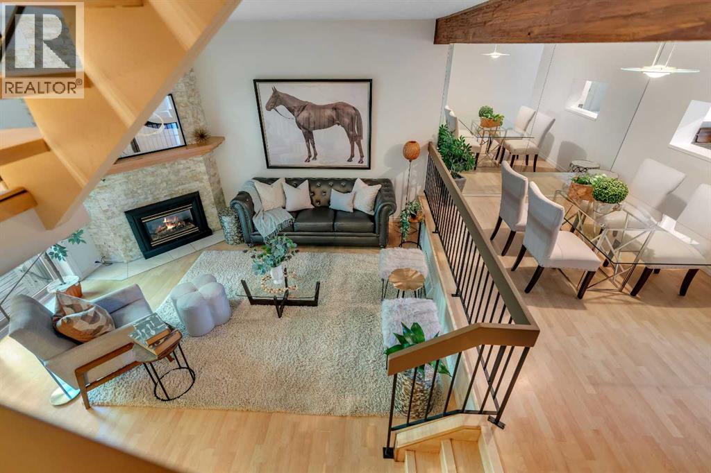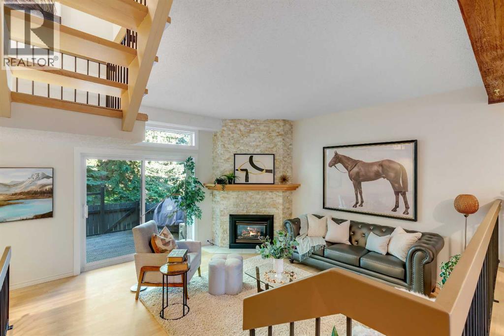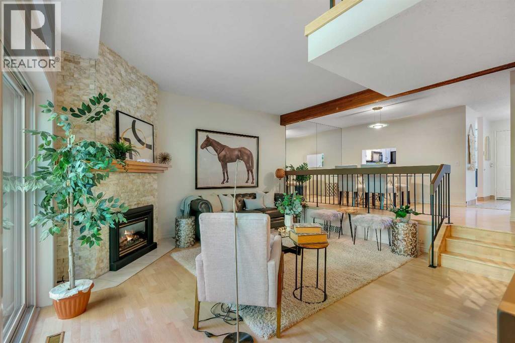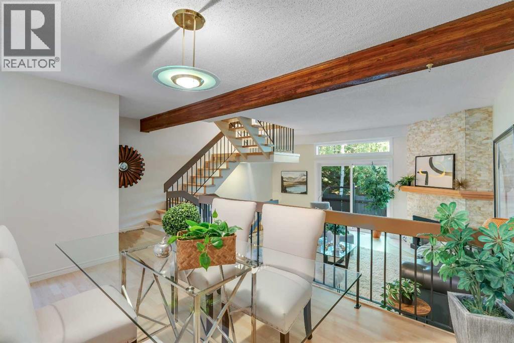 Immediate possession available! This is the one you’ve been waiting for in Phase 3 which is the most desirable and coveted location in the complex, backing directly onto a beautiful treed green space. This stunning townhome in the sought after community of Lakeview offers over 1,572 sq ft above grade plus a private attached double garage, blending unique architectural charm with thoughtful updates in one of Calgary’s most established inner city neighbourhoods. The bright and functional kitchen features freshly painted cabinetry with new hardware, updated lighting, newer countertops, sink, and faucet, kitchen nook, and a convenient pass through to the dining area. The spacious dining room overlooks a cozy sunken living room with soaring ceilings, exposed beams, stone gas fireplace with new mantle, and sliding patio doors with transom windows that open to a private large deck surrounded by gorgeous mature trees and a convenient 2 pc powder room next to storage closet. Upstairs, the large primary suite easily fits a king bed with its own balcony, and includes a large walk in closet and 3-piece ensuite, across the hall enjoy the convenience of upper floor laundry, a large second bedroom, a big flex space that can used as an office (or potential third bedroom), and a full bath complete the level. Additional highlights include wood flooring throughout (laminate upstairs and down, solid maple steps to the upper floor), freshly repainted, newer hardware, newer baseboards, ceiling fans in all bedrooms. Recent upgrades add incredible value: all windows and both patio doors replaced, air conditioning (2024), new fridge and dishwasher (2023), new garage door (2022), gas fireplace and mantle, new hot water tank (~3 years), and a regularly serviced newer furnace. The oversized double garage provides excellent storage with shelving, bike hooks, and plenty of room for vehicles or a workshop plus the additional excellent storage next to garage is fantastic.. This well managed comple x has reasonable condo fees and reflects clear pride of ownership throughout. Perfectly located steps from North Glenmore Park, IGA, shopping, amazing top schools, Taza Park, and countless amenities, this home combines size, function, and style in one of Calgary’s most desirable neighborhoods. Don’t miss this opportunity =book your showing today! (id:53676)