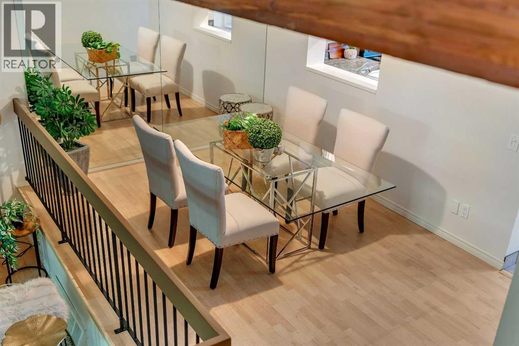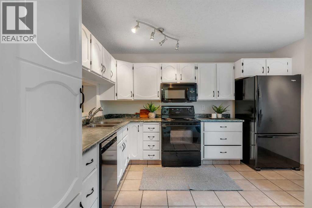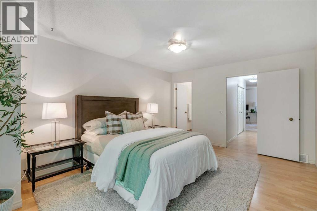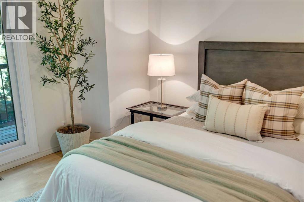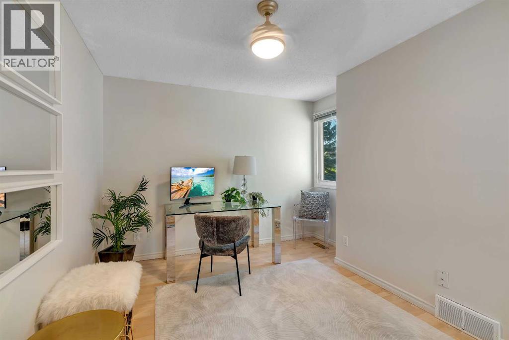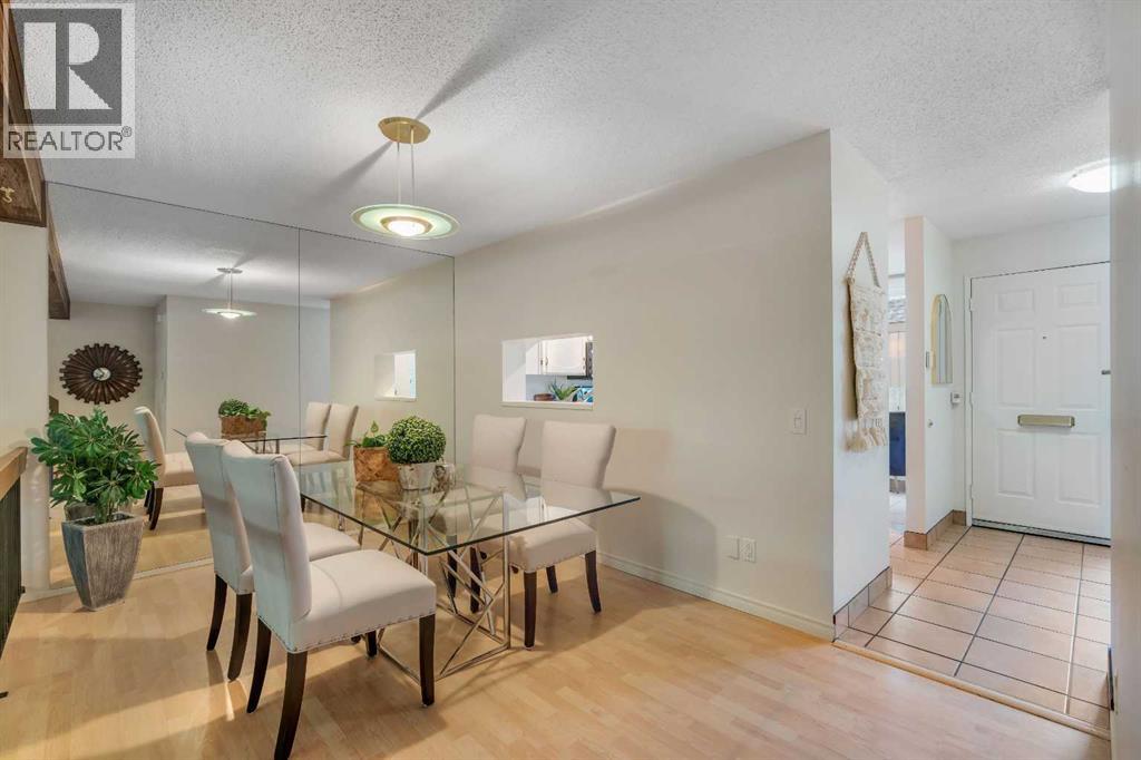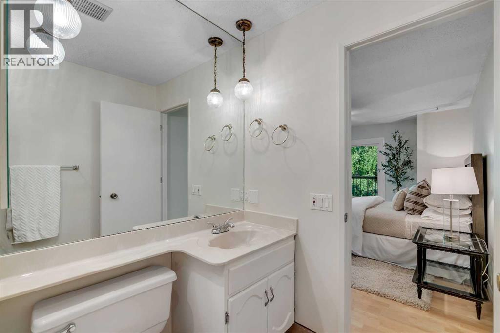 Immediate possession available! This is the one you’ve been waiting for in Phase 3 which is the most desirable and coveted location in the complex, backing directly onto a beautiful treed green space. This stunning townhome in the sought after community of Lakeview offers over 1,572 sq ft above grade plus a private attached double garage, blending unique architectural charm with thoughtful updates in one of Calgary’s most established inner city neighbourhoods. The bright and functional kitchen features freshly painted cabinetry with new hardware, updated lighting, newer countertops, sink, and faucet, kitchen nook, and a convenient pass through to the dining area. The spacious dining room overlooks a cozy sunken living room with soaring ceilings, exposed beams, stone gas fireplace with new mantle, and sliding patio doors with transom windows that open to a private large deck surrounded by gorgeous mature trees and a convenient 2 pc powder room next to storage closet. Upstairs, the large primary suite easily fits a king bed with its own balcony, and includes a large walk in closet and 3-piece ensuite, across the hall enjoy the convenience of upper floor laundry, a large second bedroom, a big flex space that can used as an office (or potential third bedroom), and a full bath complete the level. Additional highlights include wood flooring throughout (laminate upstairs and down, solid maple steps to the upper floor), freshly repainted, newer hardware, newer baseboards, ceiling fans in all bedrooms. Recent upgrades add incredible value: all windows and both patio doors replaced, air conditioning (2024), new fridge and dishwasher (2023), new garage door (2022), gas fireplace and mantle, new hot water tank (~3 years), and a regularly serviced newer furnace. The oversized double garage provides excellent storage with shelving, bike hooks, and plenty of room for vehicles or a workshop plus the additional excellent storage next to garage is fantastic.. This well managed comple x has reasonable condo fees and reflects clear pride of ownership throughout. Perfectly located steps from North Glenmore Park, IGA, shopping, amazing top schools, Taza Park, and countless amenities, this home combines size, function, and style in one of Calgary’s most desirable neighborhoods. Don’t miss this opportunity =book your showing today! (id:53676)