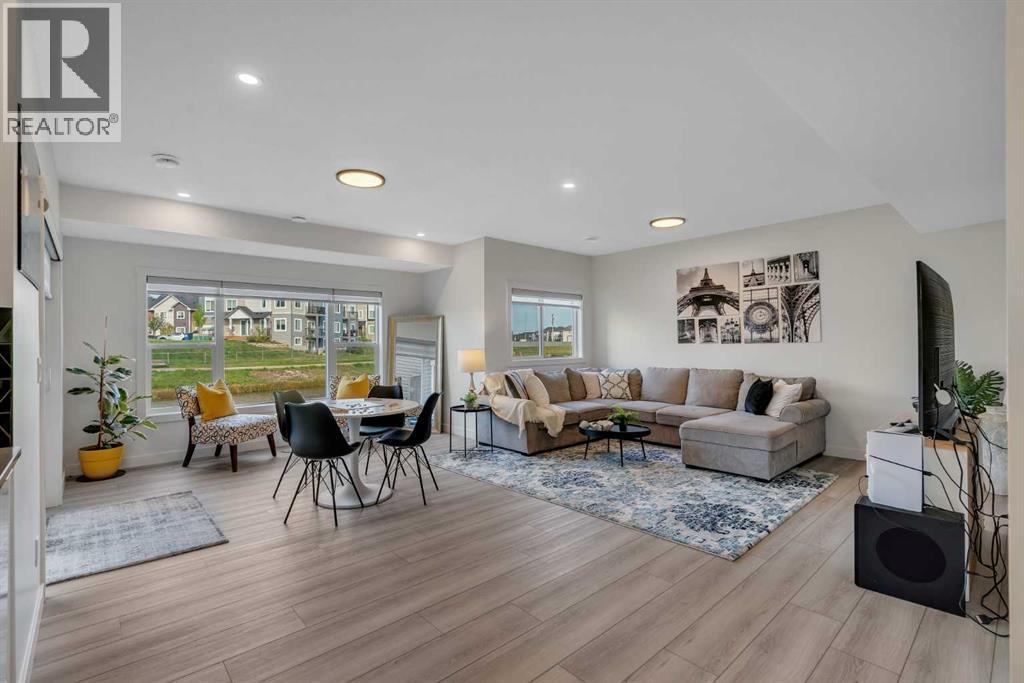 Welcome to this exceptional 6-bedroom, 4-bathroom estate, ideally located on a premium 6,500 sq ft lot with direct access to the serene Bayside canal. Positioned within one of Airdrie's most sought-after neighborhoods, this home masterfully blends refined elegance, contemporary comfort, and luxury, offering an unparalleled lifestyle of sophistication and tranquility.As you approach, you’ll be drawn to the home’s exceptional curb appeal, complete with a triple car garage that balances prestige with practicality. Step inside, and you’ll be greeted by an expansive, open-concept floor plan filled with high-end finishes and thoughtful upgrades.The main level features a stunning living room with a stone-accented fireplace, creating a cozy ambiance for family gatherings. The spacious dining area offers unobstructed views of the canal, providing the perfect backdrop for elegant entertaining. The chef-inspired kitchen is a showstopper, outfitted with built-in premium appliances, a gas range with a hood fan, a large island, ample pantry storage, and a convenient garbage disposal. A main-level bedroom/office and a full 3-piece bathroom add to the home’s functionality, along with a mudroom for added convenience.Upstairs, you’ll find three generously sized bedrooms, two full bathrooms, and a spacious bonus room with views of the nearby playground—a perfect setting for family movie nights. The master suite is truly a retreat, featuring a large walk-in closet and a luxurious 5-piece ensuite with dual sinks, a deep soaker tub, a private water closet, and its own private balcony overlooking the serene canal.The fully finished walkout basement is an entertainer’s dream. With two additional bedrooms, a full bathroom, and a lavish wet bar, this expansive recreation room offers endless possibilities. Large windows allow for an abundance of natural light while providing uninterrupted views of the canal, creating a peaceful setting for both lively gatherings and quiet nights in. Outside, the private backyard oasis awaits, offering direct access to the canal. It’s the perfect spot for relaxing mornings, summer evenings, or year-round family fun.This rare gem offers not just a home, but an elevated lifestyle—a harmonious blend of luxury, tranquility, and natural beauty. Homes of this caliber in Bayside don’t last long—schedule your private showing today and make this dream home yours. (id:53676)