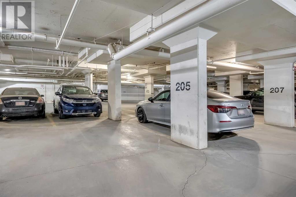 This stunning end unit 2 Bed + Den condo boasts over 980 sq ft of living space, offering an expansive open floor plan that seamlessly connects the spacious den, perfect for a home office, to the large kitchen equipped with stainless steel appliances. The private balcony, accessible via sliding doors from the open-concept living room, is an ideal spot for relaxation and entertainment. . The primary bedroom is generously sized for your comfort, complemented by a 4-piece en-suite bath and a decent-sized second bedroom with another full bath. Enjoy the convenience of in-suite washer and dryer with additional storage. With titled underground parking and storage, and impressively low condo fees, this unit presents a fantastic opportunity. Its prime location near public and Catholic schools, public transportation, shops, and Cross Iron Mills makes it an attractive choice for those seeking convenience and accessibility. Book your private viewing today to experience this incredible condo's potential! (id:53676)