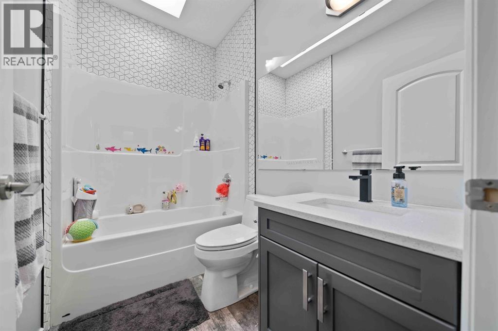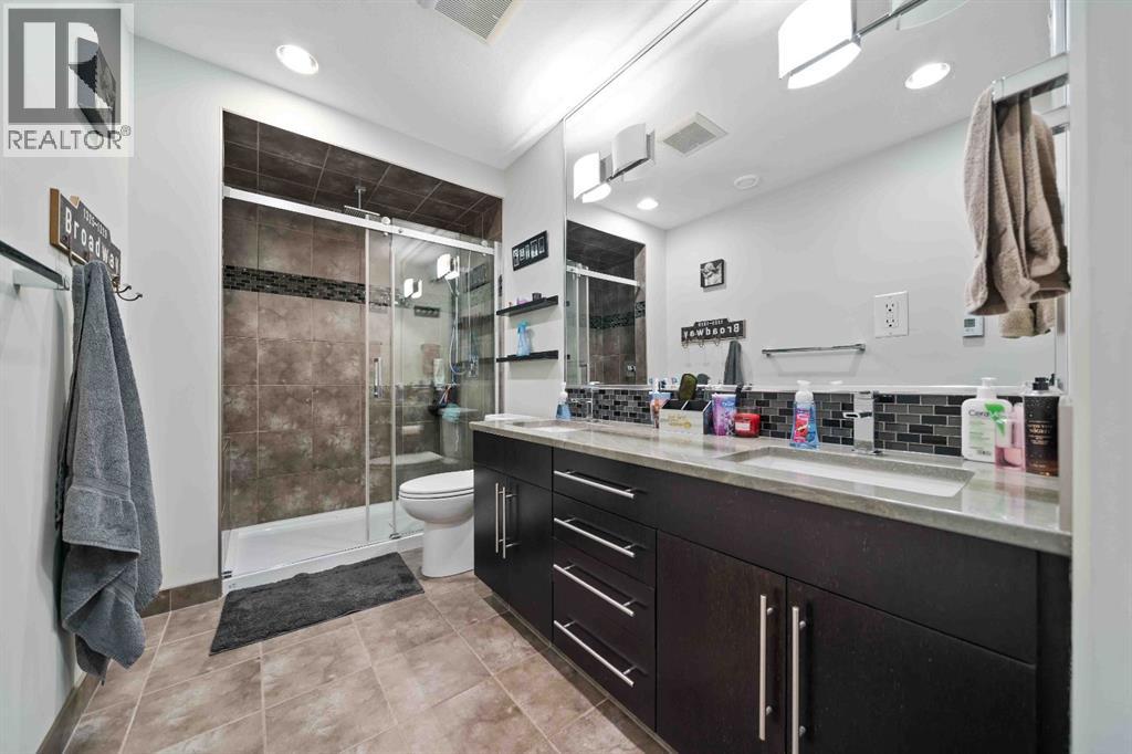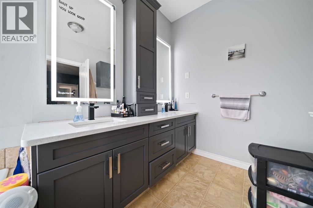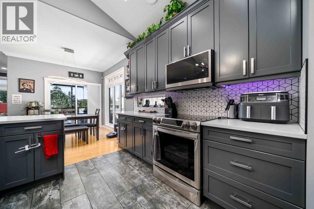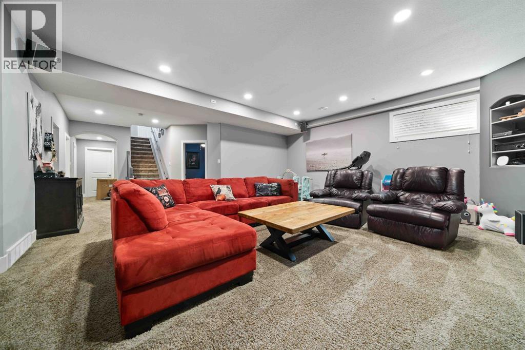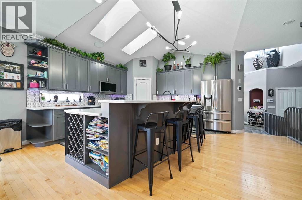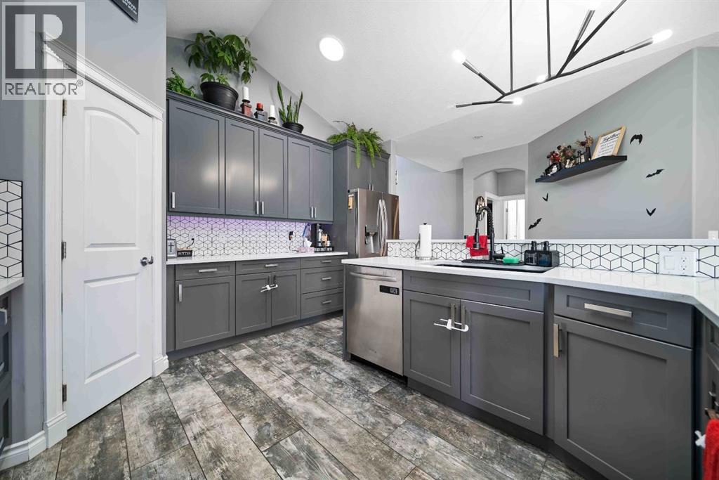 This impressive 4-bedroom bungalow with a dedicated office space, offers over 3,000 sq. ft. of beautifully finished living space! Floor-to-ceiling windows in the main floor family and dining areas, combined with skylights in the kitchen and main bath, create a home that is bright, airy, and inviting. Perfectly located backing onto a tranquil green space and just a short walk to a playground and water park, this home offers both privacy and convenience. The spacious foyer with vaulted ceilings welcomes you inside, leading to a chef-inspired kitchen featuring a large island, walk-in pantry, abundant cabinetry with unique details, updated tile flooring, and a full stainless steel appliance package (all within 3 years old). A gas hook-up is also available if a gas range is preferred. The luxurious primary suite is a true retreat, complete with a spa-like 5-piece ensuite featuring double vanities, a jetted corner tub, and a separate shower. The main floor also includes a cozy living room with a gas fireplace, a second bedroom, a 4-piece bath, and a well-appointed laundry room with a newer washer and dryer (3 years old).Step through the sliding patio doors to a backyard designed for relaxation and entertaining, featuring a composite deck with BBQ gas hook-up, a fully landscaped and fenced yard, underground sprinklers, and direct access to walking paths and green space. The lower level boasts 9-ft ceilings and an incredible layout with two oversized bedrooms, each with exceptional walk-in closets, a stylish 4-piece bathroom with heated tile floors and a walk-in shower, and a spacious theatre/games room with a second gas fireplace. To complete the basement is a great sized room with no windows that can be used as a den, or a big storage room. Built with quality in mind, this home includes silent floor joists, soundproofed doors, and extra insulation for enhanced comfort and peace of mind. A heated double attached garage adds convenience, while recent updates provide even m ore value, including a hot water tank (4 years), furnace coil (2 years), added attic insulation (2 years), LED lighting, freshly refinished cabinets & railings and composite rear decking. If you’ve been searching for a move-in ready home with space, style, and an unbeatable location, this is the one! (id:53676)