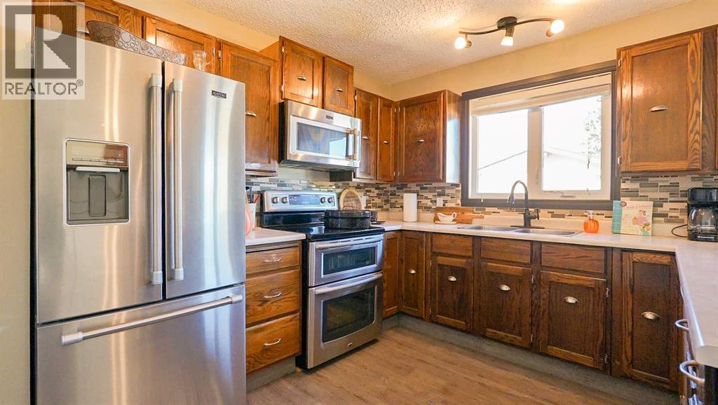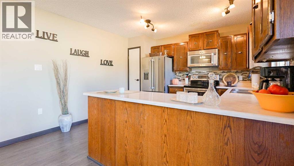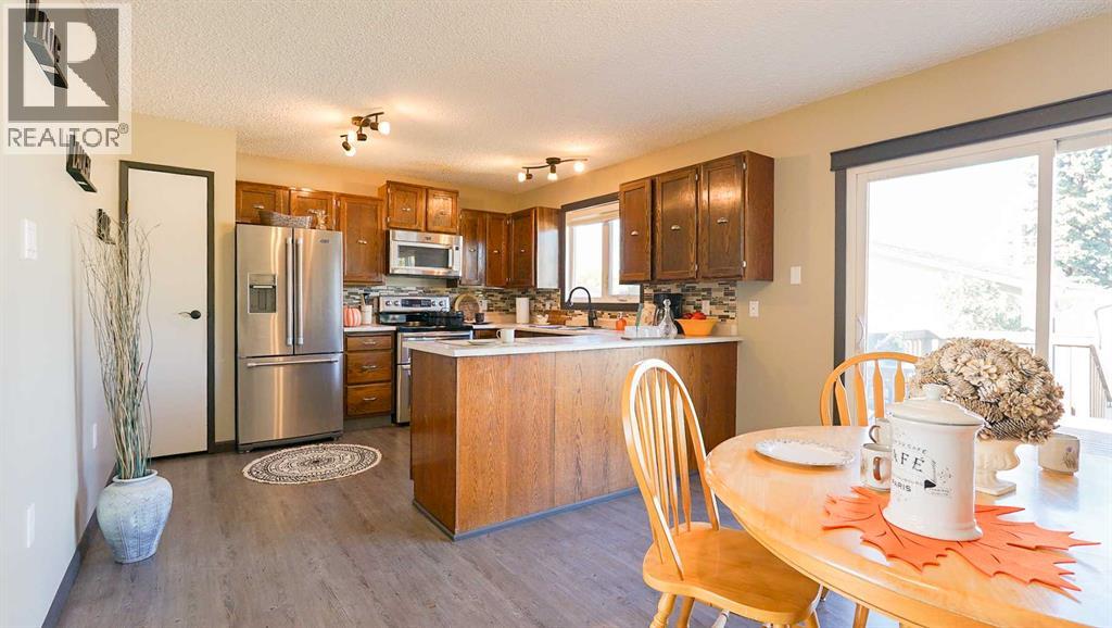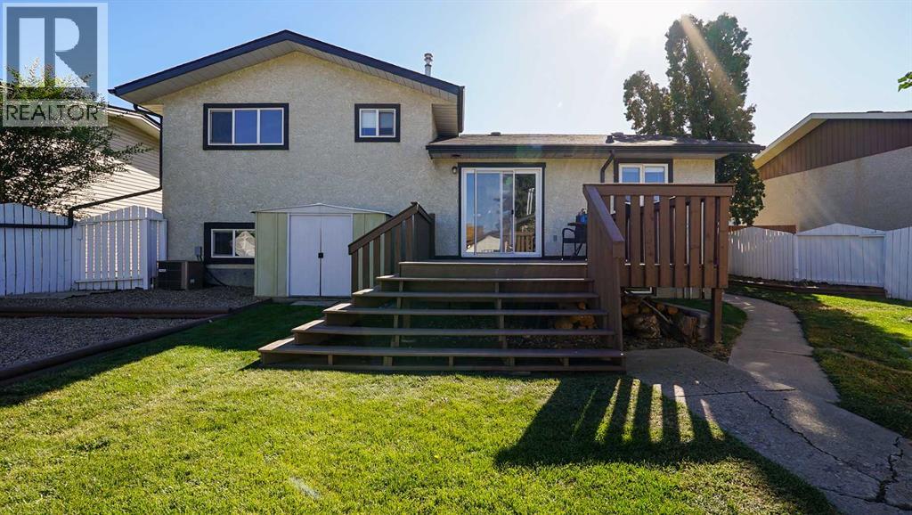 Welcome to this beautifully 4-level split home, perfectly situated in a quiet, family-friendly neighbourhood close to schools, parks, and paths. Offering 5 bedrooms and plenty of space for the whole family. The main floor welcomes you with a bright front living room, dining area, and a kitchen with direct access to the stunning yard and deck. The upper level features a primary bedroom with a 2-piece ensuite, two additional bedrooms, and a full 4-pce bath. The lower level features a cozy family room with an impressive brick fireplace and wet bar for your enjoyment, a fourth bedroom, and an additional 3-piece bathroom. The vinyl windows bring in natural light and efficiency. The basement hosts a wide open games/family area, bedroom, and laundry/utility room. Outside, you’ll find a beautiful, fully fenced yard with a gorgeous deck, a 22x24 heated/insulated double garage, and a shed for convenient storage. The 2-stage high-efficiency furnace (with ECM motor) was installed in 2010, the hot water tank in 2015, and the A/C in 2004-05. The shingles on the house were changed in 2017-18, and the garage in 2020. This home is ready for you to move in and enjoy with your family. Contact your local neighbourhood REALTOR® today! (id:53676)