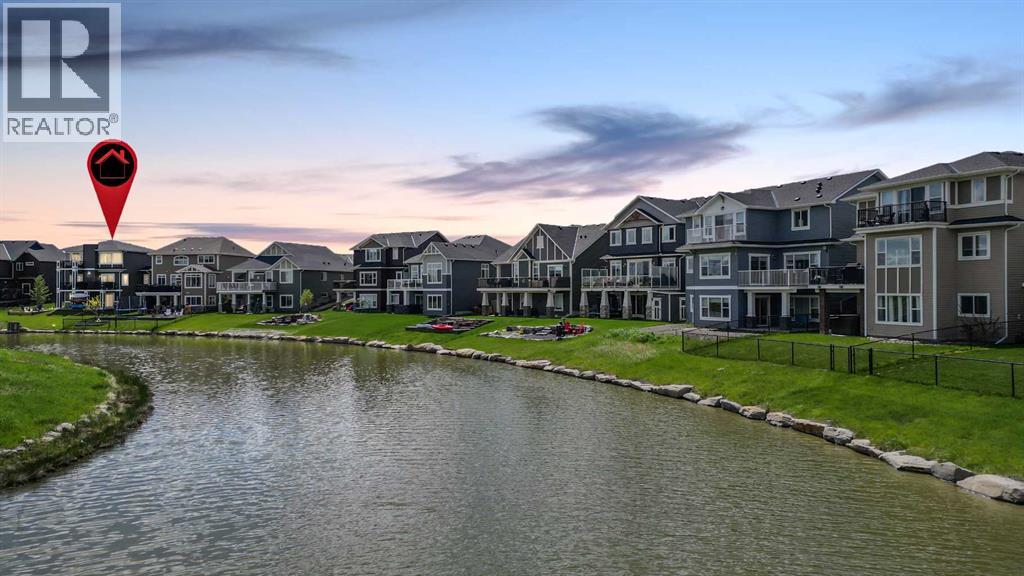 Welcome to this WATERFRONT luxury home on an oversized 7290 sq ft lot in Bayside Estates that offers a lifestyle like no other in Airdrie. With incredible craftsmanship & arguably Airdrie's best location backing onto the Bayside Estates canal with it's own private dock to offer fishing, kayaking, skating & it's a former McKee showhome! The main floor is thoughtfully designed with an open concept layout & hardwood throughout that perfectly complements the large bright windows which fill the room with tons of natural sunlight. The living room hosts a floor to ceiling stone gas fireplace feature, modern built in shelving/cabinetry and this flows seamlessly into the dining room (with a view of the canal) & an upgraded kitchen that rocks white cabinetry, stainless steel appliances (wifi enabled fridge is new!) & beautiful quartz countertops. The main floor also has a large office, a garage entryway with built-in seating/storage, a half bathroom & a large balcony with two sets of sliding doors to step out & enjoy the view because this one is 10/10 if you are searching for waterfront living in Airdrie! The upstairs greets you with a large bonus room with a built-in desk on the side & adjacent you'll be pleased with the spacious primary bedroom retreat overlooking the canal including a private primary bedroom balcony that provides epic sunsets & views of the canal! The spa-like ensuite bathroom with a deep soaker tub, dual sink vanity & a tiled shower includes the walk-in closet with custom built-in closet shelving. The spacious 2nd and 3rd upstairs bedrooms are conveniently located next to the 2nd full bathroom which is adjacent to the upstairs laundry room. The walkout basement with two more sets of sliding doors hosts a large family room with a pool table area & a custom bar with a wine fridge perfect for movie nights, as an exercise space & entertaining. Adjacent you'll find the 4th bedroom that has a unique space finished underneath the stairs that is perfect as a chil dren's playroom & another full bathroom. The mechanical in this home is excellent with a full built in media system including built in speakers throughout the home, Sonos & a boiler system to offer in-floor heat throughout the basement. Since it was a former show home the garage is completely finished with in-floor heat, light fixtures, ceiling texture, built in speakers & a back bay perfect for parking motorcycles, bikes or as a workshop space. Once the sun sets you'll be pleased to enjoy another upgraded feature of this property by turning on the Gemstone Brand architectural outdoor lighting. Location is the most important rule in real estate & this property knocks it out of the park with an extra wide lot backing the water that you will rarely find in Bayside - As a bonus there are also underground sprinklers! This home is the definition of a home that shows 10/10 and it must be viewed to fully appreciate its incredible craftsmanship & the waterfront lifestyle offered. (id:53676)
