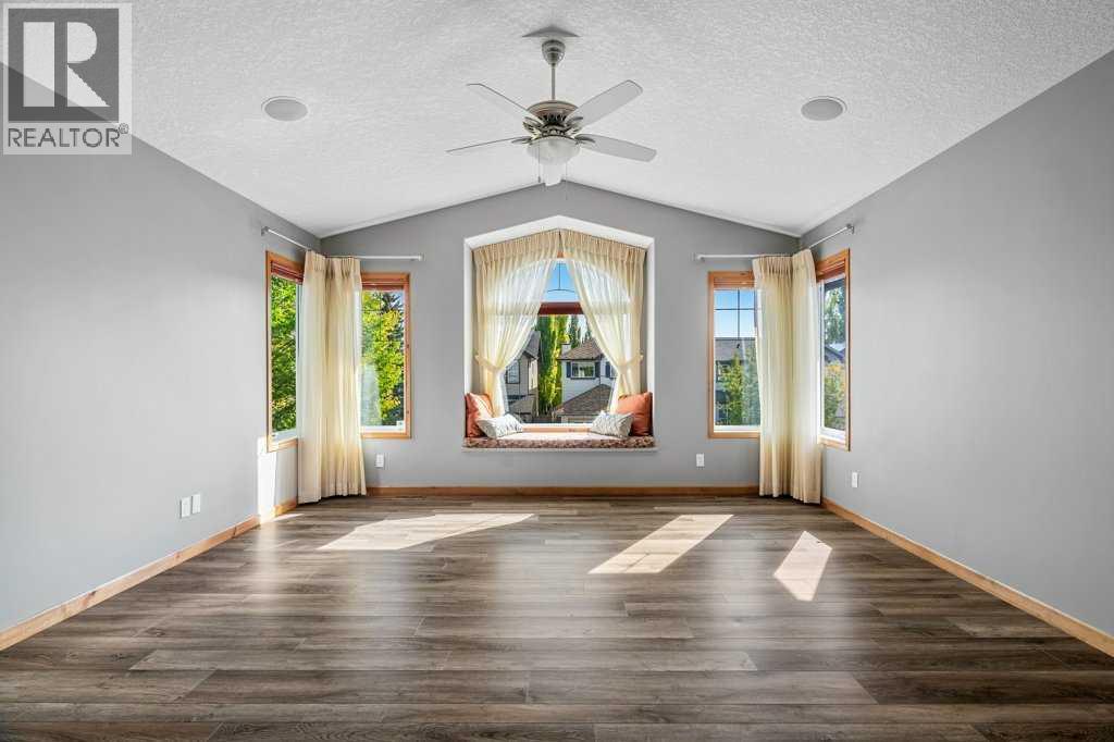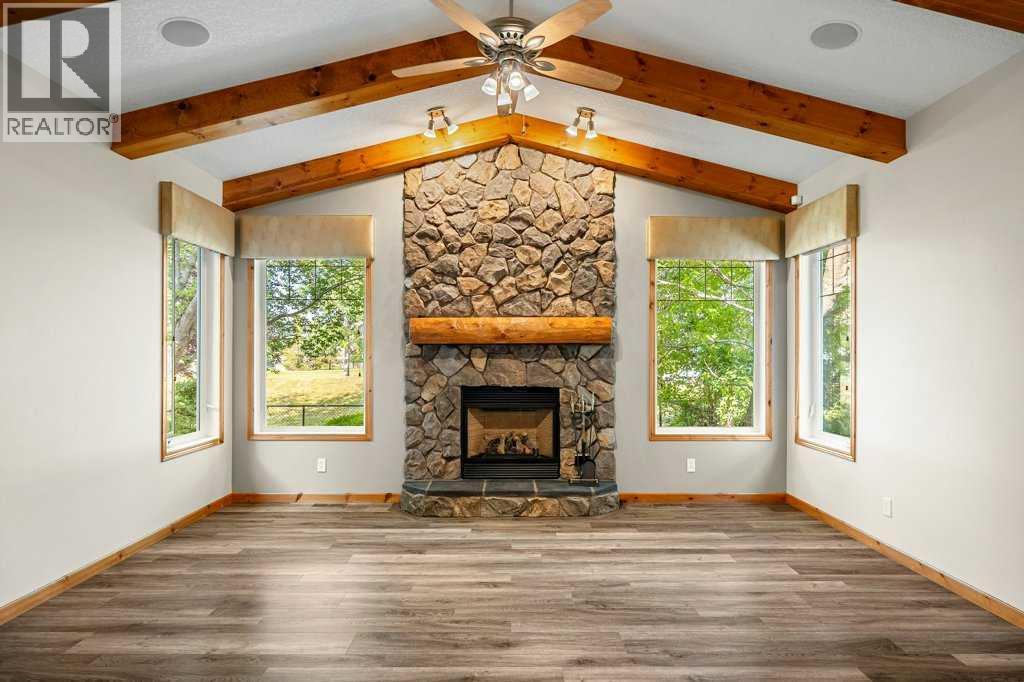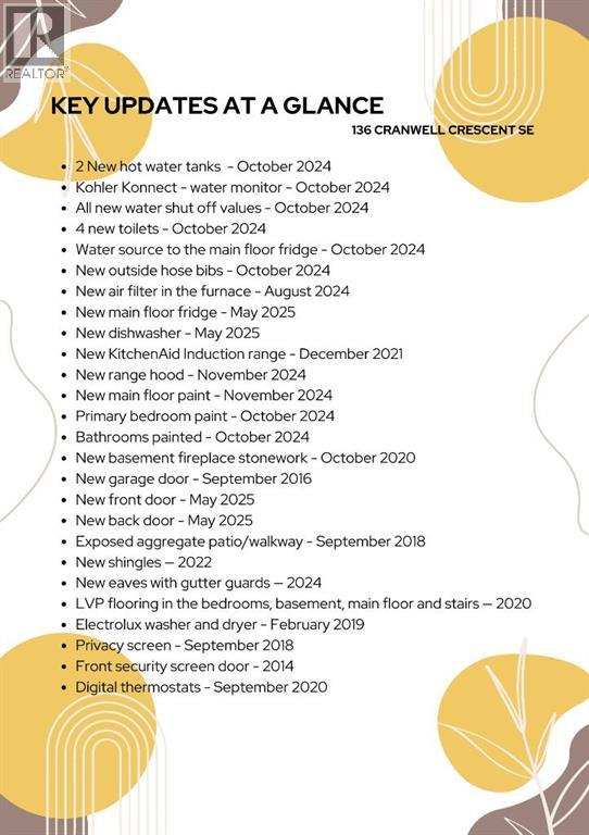 Welcome to this expanded Beatie Homes Alpine 4 modified — a larger, wider-plan home built in 2004 and finished to a very high standard. With just under 3,500 square feet of developed space including the fully developed basement, the layout delivers generous living and entertaining spaces and backs onto green space, a playground and a pathway. The exposed front drive and north-facing backyard provide privacy and easy outdoor access.The main floor showcases Corian counters, above-cabinet lighting, tiled entry and 9' knockdown ceilings. The open kitchen features extended-height cabinetry, a corner pantry, banks of drawers, a center island with storage, tiled backsplash and brand-new appliances including a Samsung refrigerator, KitchenAid slide-in induction cooktop range, Samsung dishwasher, and a new range hood. , r/o water system. The living room includes vaulted ceiling with wood beams, a floor-to-ceiling stone gas fireplace with log mantle, built-in bookshelves, LVP flooring and integrated speakers. Additional main-floor spaces include a front den with LVP (2020), a mudroom with laundry, broom/book storage closets, a 2-piece bath and a double attached garage with a new garage door. Exterior and entry updates include a new front door, new rear door and new shingles (2023); eaves with guards were replaced in 2024.The upper level features extra-wide staircases (renovated 2020) and LVP throughout (2020). The primary suite offers a vaulted ceiling, window bench seating, built-ins, walk-in closet and a tiled 5-piece en-suite with his-and-her sinks, an air tub and jetted and a steam shower. All toilets and shut-off valves were replaced last year. Two additional large bedrooms connect via a Jack-and-Jill bath with separate private sinks and a shared central bath and water closet. Built-ins within the walk-in closets and upstairs linen storage complete the level.The fully finished lower level (builder developed) provides LVP flooring, 9' knockdown ceilings and a large recreation room anchored by a second stone gas fireplace (renovated 2020) with built-in cabinetry, speakers and shelving. The lower level includes a 4th bedroom/office, a tiled 3-piece bath, an enclosed exercise area and a service/storage room that houses two brand-new hot water tanks, Kolher Konnect water monitoring system installed in October 2024 and a recirculating pump as an added feature. Mechanical upgrades include two forced-air furnaces, two A/C units, a water softener and a newly installed built-in vacuum system.Exterior living spaces include an exposed patio, a lower concrete pad with pergola, irrigation, mesh fencing, an exposed sidewalk (2018) and a BBQ gas line with direct access to the adjoining park and playground. Located in the family-friendly community of Cranston, the home is within walking distance to Cranston School and near Dr. George Stanley and Christ the King schools. (id:53676)