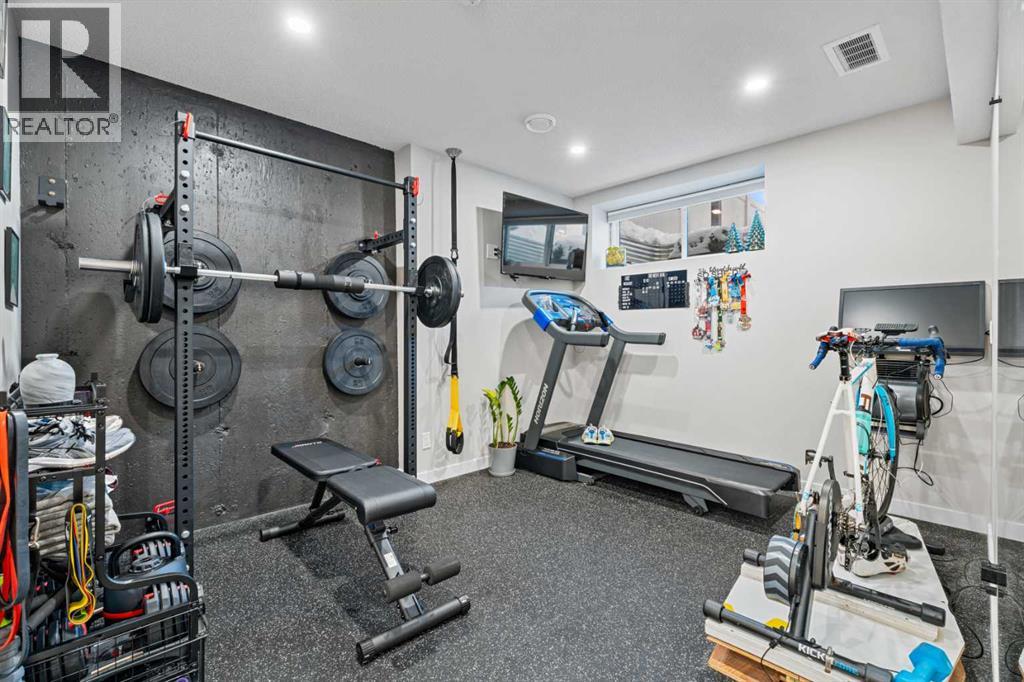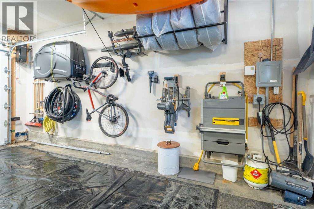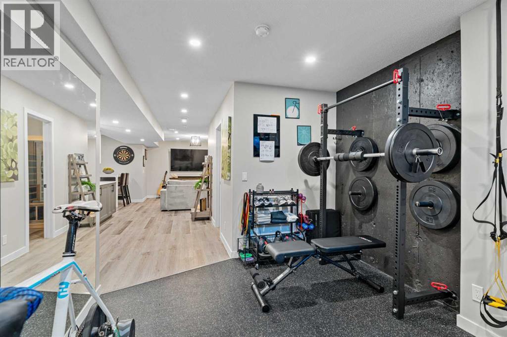 This home truly has it all, offering over 2,200 sq. ft. of beautifully developed living space. Step inside to a bright, open layout that instantly feels welcoming. Wide vinyl plank flooring runs underfoot, drawing your eye to the bio flame fireplace framed by a stylish mantle and slat-wall feature that anchors the room and sets a warm, modern tone for the rest of the house. From the living room, the layout flows naturally into the dining area, perfectly positioned for both everyday meals and weekend gatherings. Just off to the side, a thoughtful main-floor office nook offers a dedicated spot for working from home, kids’ homework, or managing the household calendar. Beyond the dining area, the kitchen feels both polished and practical. Two-tone cabinetry pairs with stainless steel appliances, quartz countertops, and a herringbone tile backsplash for a designer aesthetic, while the centre island with breakfast bar seating keeps everyone connected. A functional mudroom at the back entry, complete with a built-in seat and hooks, keeps coats, boots, and backpacks organized, making daily comings and goings a little more effortless. Upstairs, in the primary bedroom, a calm retreat with a stylish ensuite and a large walk-in closet. It’s thoughtfully set apart from the two additional bedrooms, giving everyone a bit of extra privacy. The secondary bedrooms are generous in size and ready to adapt as kids’ rooms, guest space, or a second home office. Descend to the lower level to discover a cozy rec room that’s ideal for movie marathons or game nights, a wet bar to set up for snacks, and a dedicated gym space so you can skip the commute to the fitness centre and work out at home instead. Outside, the backyard offers a composite deck on a steel frame, perfect for BBQs, as well as zero maintenance landscaping, a vinyl fence for privacy and leads to an exceptional 22’ x 20’ detached double garage with 10’ ceilings, insulation and drywall, attic trusses with an access hatch and lad der for extra storage, a 16’ x 8’ garage door, 60A electrical service with EV charging, a 4 kW fan heater, and a side mount garage door opener, it’s perfectly set up for cars, or hobbies. All of this is tucked into Dawson’s Landing in Chestermere, a vibrant, family-focused community where life meets nature. Here you’re moments from nearly 30 acres of planned protected wetlands and a 22-acre environmental reserve with scenic trails and a unique EcoPark, plus year-round recreation at nearby Chestermere Lake for swimming, boating, skating, and lakeside walks. With convenient access to schools, parks, shopping, and an easy commute into Calgary, this property offers a polished home in a community designed for everyday living and weekend play. Sellers are downsizing and some items may be negotiable. (id:53676)