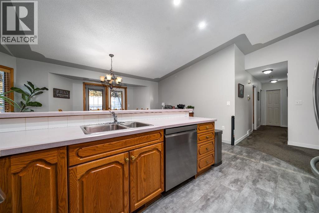 Welcome to this spacious 5 bedroom, 1,572 sqft bi-level located in the highly desirable Parkview neighbourhood. Known for its peaceful atmosphere and easy access to nature, this is a location that’s hard to beat. Just minutes from the Medicine Hat Golf Course, the scenic walking paths of Police Point Park, and with a park and playground just around the corner, endless opportunities to enjoy the outdoors is right out your front door. From the spacious entryway, you’re welcomed into a sunken front living room with vaulted ceilings that add to the sense of openness and light. The open dining and kitchen area features ample cabinet and counter space, as well as newer appliances, making this layout ideal for both everyday living and entertaining. The main floor offers a generous primary bedroom complete with an ensuite, along with two additional bedrooms and a full 4 pc bathroom. Downstairs, the basement is equally impressive with brand new carpet, two large bedrooms, a spacious family room, a huge laundry room, and an extra-large storage room currently used as an awesome craft space. Outside, enjoy a private, fully landscaped tiered backyard. Underground sprinklers make maintenance easy, while the partially covered deck just off the kitchen is perfect for BBQing in any weather, with plenty of shade for those hot summer days. The double attached garage adds everyday convenience, and is heated with the home's upgraded hot water on demand. This is a fantastic family home offering space, updates, and an amazing location in one of Medicine Hat’s most sought-after neighbourhoods. (id:53676)