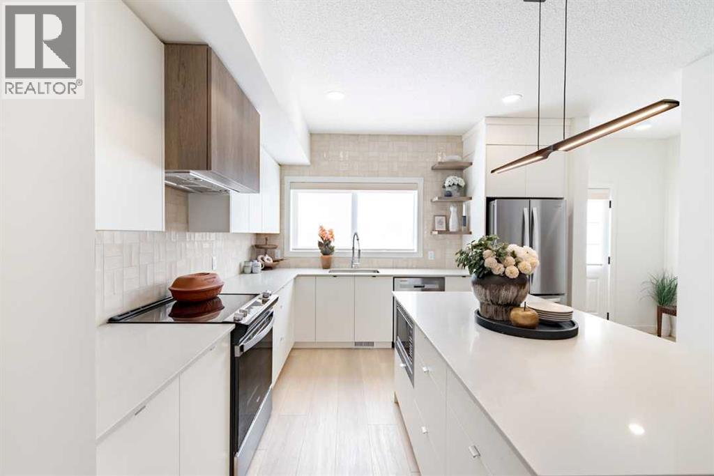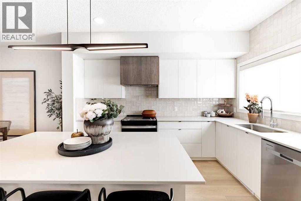 Tentative Late May / Early June Possession - Welcome to the Cascade, a thoughtfully designed duplex built by Shane Homes in the NW community of Esker Park. Currently under construction, this home features 3 bedrooms and 2.5 bathrooms with a functional layout designed for modern living. The open-concept main floor includes a spacious kitchen with a walk-in pantry and central island, flowing into the dining and living areas, ideal for everyday use and entertaining. A side entry and basement rough-ins provide flexibility for potential future development. Upstairs offers three well-sized bedrooms, a primary bedroom with walk-in closet and full ensuite, convenient upper-floor laundry, and a flex room that adds valuable additional living space. Photos are representative and are for illustrative purposes only. (id:53676)