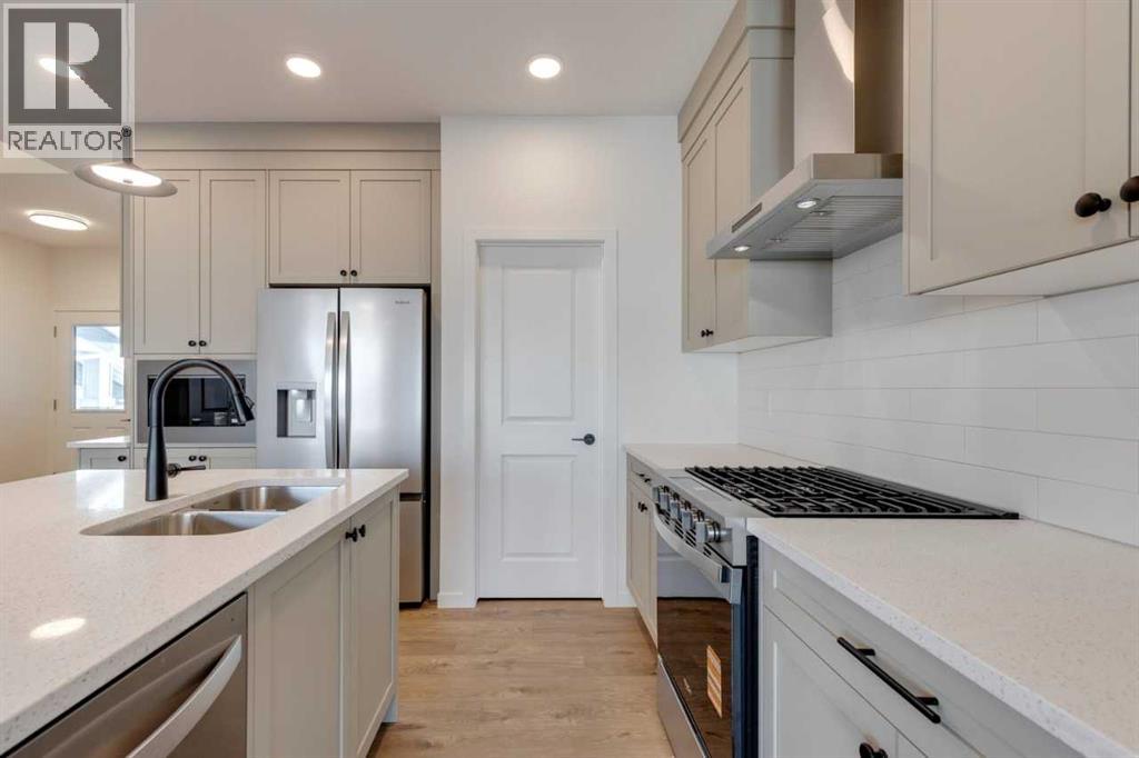 Welcome to The Edan by Calbridge Homes, an elegant and thoughtfully designed 1,686 sq ft single-family pre-sale home offering comfort and flexibility for a wide range of lifestyles. This 3-bedroom, 2.5-bathroom layout features a functional main level with an inviting living area and a well-planned kitchen and dining space ideal for everyday living. The upper level includes three spacious bedrooms, including a private primary bedroom, along with a full bathroom and convenient laundry. With a farmhouse-inspired elevation and a double garage. The Edan blends timeless curb appeal with modern functionality. Optional lower-level development provides potential future flexibility to suit your needs. Located in the desirable Bayview community of Airdrie, residents enjoy access to parks, pathways, schools, and nearby amenities, along with easy connections to Calgary. A well-balanced home designed for comfort, style, and long-term value. Photos are representative. (id:53676)