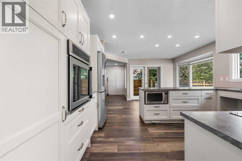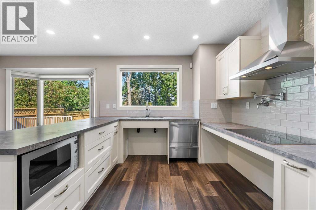 This rare and fully accessible two-storey home offers a unique combination of thoughtful design, modern updates, and an incredible location backing directly onto a beautiful green space. With its private residential elevator, accessible kitchen, and bright open layout, this home is a one-of-a-kind opportunity for multi-generational living or for those seeking a long-term, barrier-free property in a sought-after Calgary community.The main floor welcomes you with large, bright windows that flood the space with natural light and showcase the treed views. The open-concept design features a spacious living room, recessed lighting, and a beautiful stone-faced fireplace that serves as a warm and inviting focal point. The seamless flow into the kitchen and dining areas makes this home as functional as it is inviting.The kitchen is both stylish and highly functional, offering white cabinetry, generous storage, a subway tile backsplash, and a full suite of stainless steel appliances. An upgraded induction cooktop with pot filler, wall oven, and large French-door refrigerator provide all the conveniences of a chef’s kitchen, while the built-in microwave, breakfast bar, and dedicated casual dining space make it perfect for everyday living. Large picture windows frame views of the backyard and green space beyond, creating a bright and welcoming environment for cooking, dining, or gathering with friends and family.Accessibility is front and center in this home’s design. The elevator provides easy access between levels, connecting the main living areas with upstairs bedrooms, the garage, and the basement. Whether for mobility needs, aging in place, or multi-generational living, this thoughtful addition adds peace of mind and long-term value.Upstairs, generously sized bedrooms and bright secondary spaces allow for flexible living. The primary bedroom features a Juliet balcony, a large accessible ensuite with a curbless shower and an accessible sink with a large walk-in closet. A second well-sized bedroom, 4-piece bathroom and elevator access complete this floor. The outdoor living space is just as impressive as the interior. A massive composite deck provides ample space for entertaining or relaxing, while the lower patio offers additional options for outdoor living. The backyard is complete with a storage shed and a dedicated dog area, all overlooking the private green space directly behind the property. With no rear neighbours and mature trees framing the yard, you’ll enjoy both privacy and a direct connection to nature.Additional highlights include rear-in-ground sprinklers, an oversized double attached garage, fresh contemporary finishes, and modern flooring that ties the entire home together. If you’ve been looking for a fully accessible home without compromising on style, location, or functionality, this property is the one. Combining thoughtful upgrades, bright open spaces, and an unbeatable setting backing onto parkland, it delivers on every level. (id:53676)