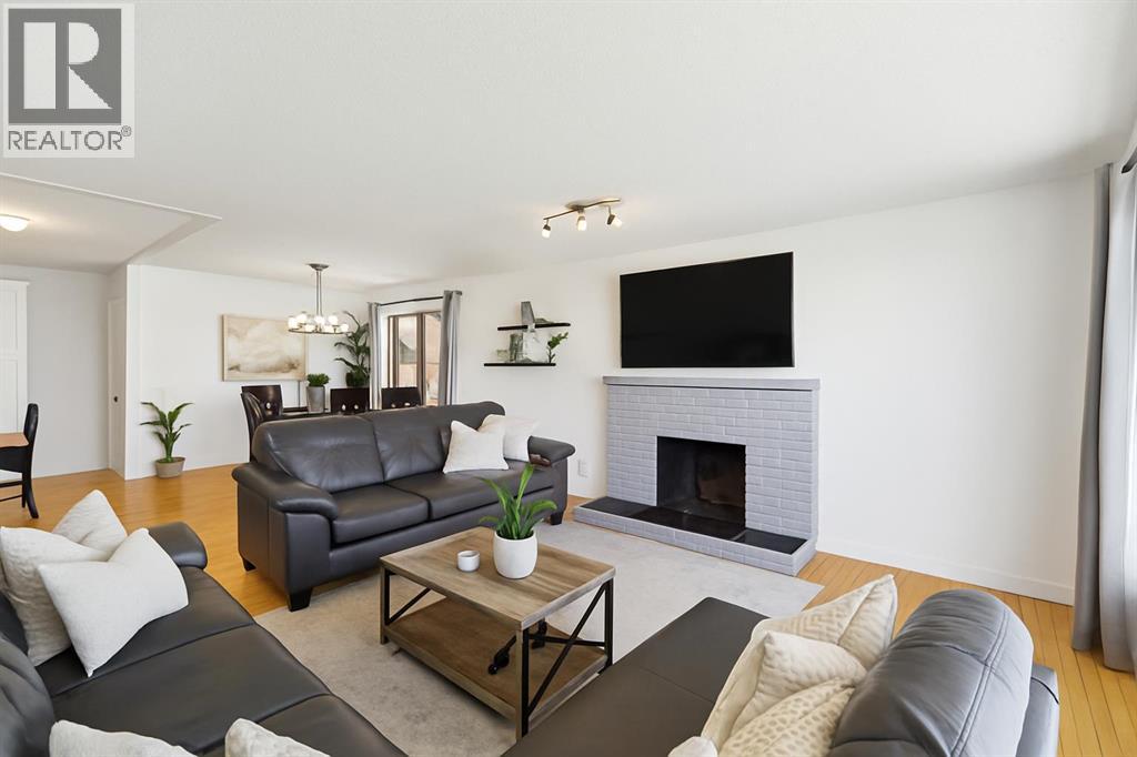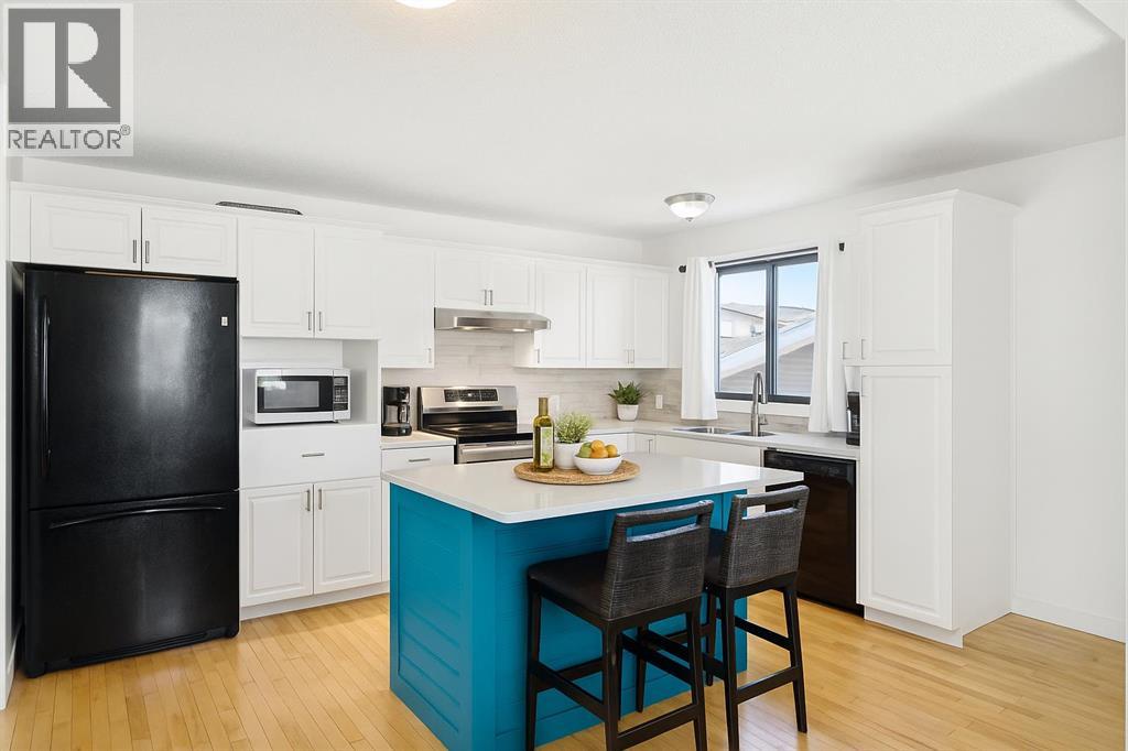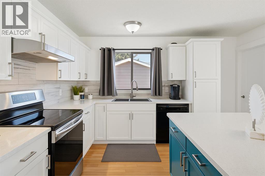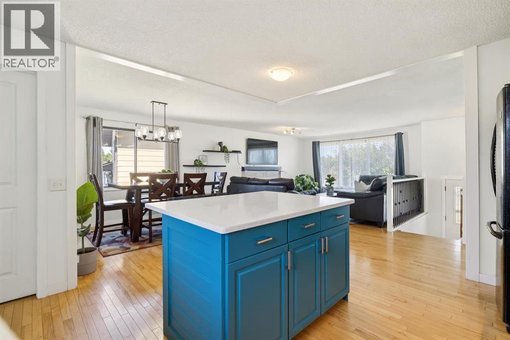 Step into comfort and style with this charming and well-maintained bi-level home, ideally located in the desirable community of Glenbow. Thoughtfully updated with modern finishes and designed for functionality, this property is perfect for families seeking space, convenience, and timeless appeal.Upstairs, you'll find a bright and welcoming WHITE KITCHEN complete with QUARTZ COUNTERTOPS and a handy SPICE DRAWER—ideal for everyday cooking. The spacious living room features a cozy WOOD-BURNING FIREPLACE, creating a perfect spot to relax, while CENTRAL AIR CONDITIONING ensures year-round comfort.The main level offers three bedrooms, including a generous primary suite with its own 3-piece ENSUITE featuring a stylish TILED SHOWER. Major updates such as a NEW ROOF, HOT WATER TANK, and FURNACE add extra value and peace of mind.Downstairs, the FULLY FINISHED SUNSHINE BASEMENT is flooded with natural light and offers versatile living space, including a large REC ROOM, fourth bedroom, 3-piece bathroom, laundry room, storage area, and a handy COLD ROOM—great for families or guests.Enjoy outdoor living in the landscaped backyard, complete with a DECK, PAVING STONE PATIO, and BUILT-IN STORAGE BENCHES—ideal for entertaining or relaxing. An OVERSIZED DOUBLE DETACHED GARAGE with LANE ACCESS provides ample parking and room for projects or storage.Located just minutes from schools, parks, shopping, and Cochrane’s scenic pathway system, this move-in-ready home combines location, lifestyle, and livability. Don’t miss your chance to make it yours! (id:53676)