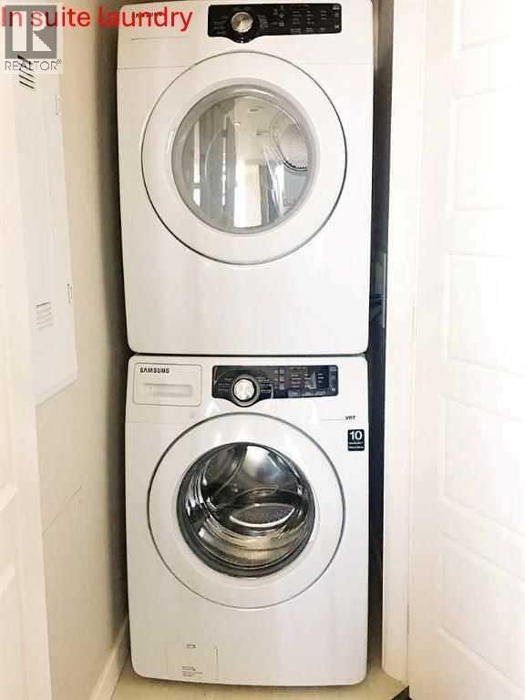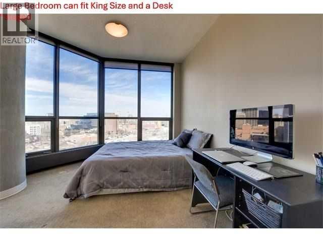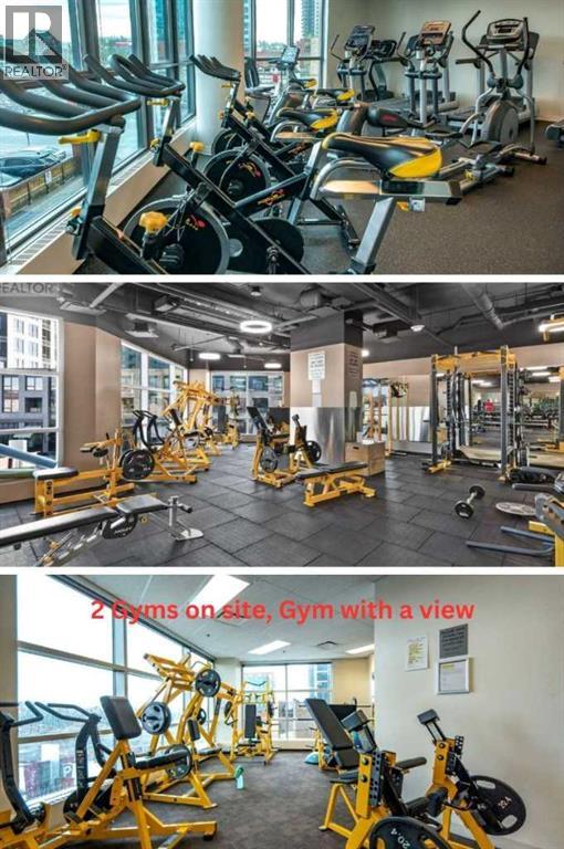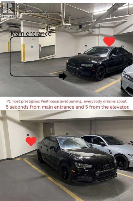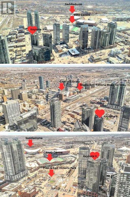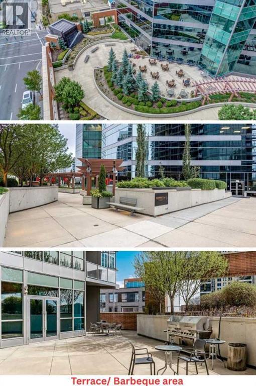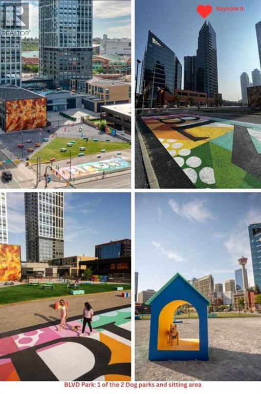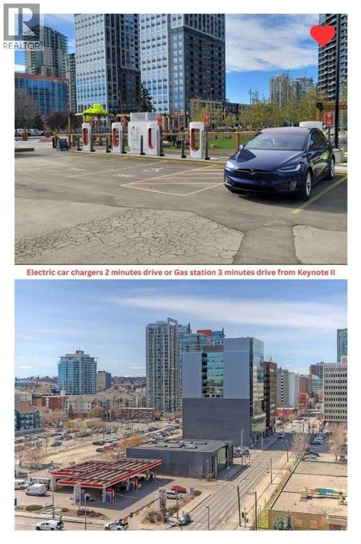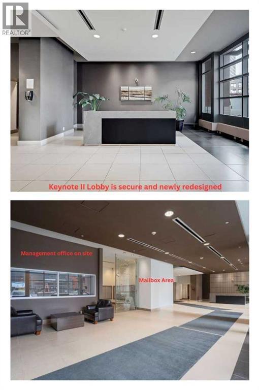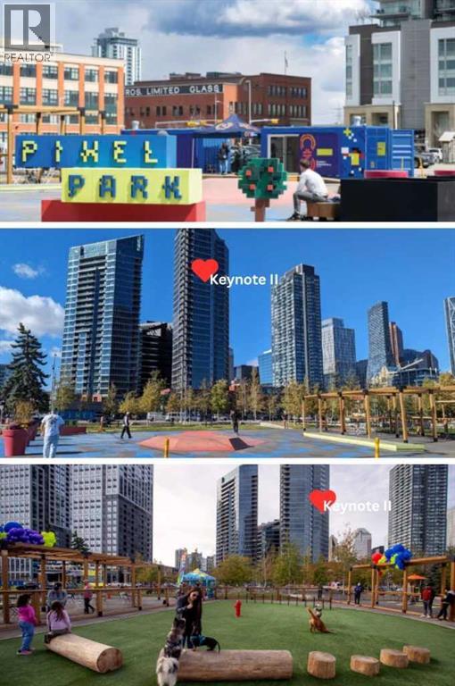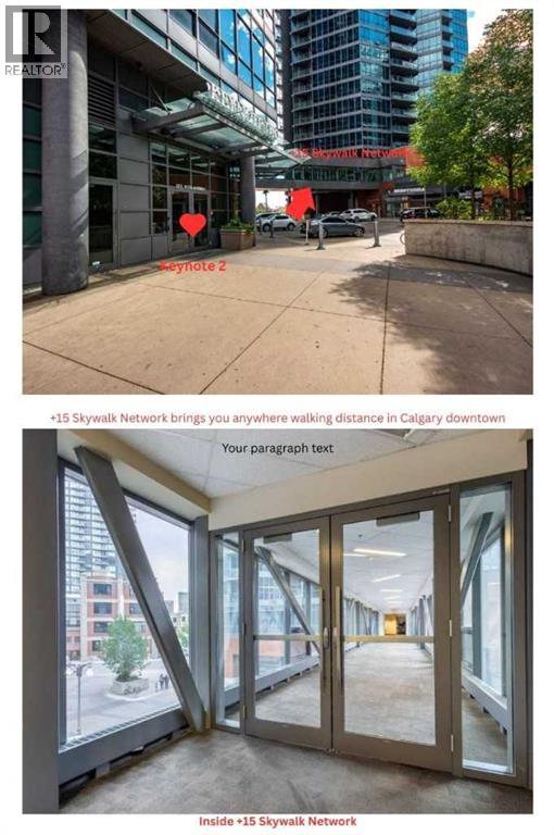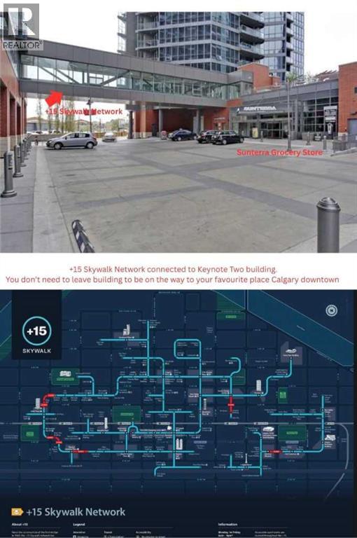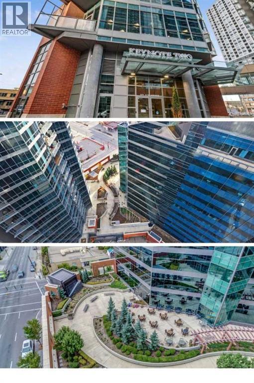 Click brochure link for more details. CALGARY TOWER VIEW, PENTHOUSE LEVEL PARKING, HIGH END, UPGRADED, GLASS FLOOR TO CEILING WRAP AROUD WINDOWS, CORNER unit (this not a typical 1 bedroom) in prestigious KEYNOTE 2 premier apartment residences, situated in the highly sought after downtown location of VICTORIA PARK and within the walk-zone to Calgary core amenities. This executive upgraded unit has the best PARKING on P1 level which will save 20-30 minutes every day to get to/from parkade while saving your car longevity not going over the parkade speed bumps and same level titled oversized storage. Unit offers exceptional privacy and tranquility compared to other buildings in downtown thanks to its ALL-CONCRETE construction, including shared walls. Its unique ALL-GLASS EXTERIOR sets it apart, making it a standout building in Calgary's skyline. The OPEN-CONCEPT LAYOUT is designed for comfort and style, this unit boasts 9' ceiling with WRAP AROUND FULL FLOOR TO CEILING WINDOWS with BLINDS at your fingertip to close/open at your convenience and enjoy spectacular views of Calgary Tower. It is well planned one bedroom walk-in/walk through closet, entrance/exit from both bedroom and bathroom, not like any other layouts and one full bath, ceiling-height kitchen with European cabinetry, GRANITE counter-tops, center island, engineered hardwood floors and “Samsung” stainless appliances. Enjoy the ease of in-suite laundry and the comfort of central AIR CONDITIONING, ensuring a perfect indoor climate year-round.This unit like no others has UPGRADES: P1/Level1 Parking right at the entrance of the parkade, oversized titled storage, “VOVO” smart toilet, smart touchless faucets in the kitchen and bathroom, rain shower, large, matte black sink in the bathroom, new modern lighting fixtures in the kitchen, living room and bathroom, “InSinkErator” Garbage Disposal, countertop soap dispenser, has professionally drilled hole in the countertop to install water filtration like Reverse Osmosis and a new “Samsung” Glass Touch LED microwave. The adjoining living room can accommodate full-size furniture and leads to the balcony where you can enjoy your morning coffee while watching the sun rise or sipping glass of wine watching lights of Calgary Tower in the evening.This air-conditioned complex has keyless main entry and a newly installed high security system. Keynote 2 boasts an array of exceptional amenities that cater to an active and social lifestyle. Stay fit in one of the 2 the state-of-the-art fitness centers or unwind in the owner's lounge complete with a large TV, pool table, kitchen and wet bar. Furnished guest suites, 24-hour security with surveillance cameras, and secured elevator access. The building also features a Plus-15 rooftop patio with outdoor space and BBQs, perfect for summer gatherings and relaxing with friends. Residents enjoy the convenience of full-time onsite management, secured elevator access, a guest room for visiting friends and family, two bike rooms. (id:53676)