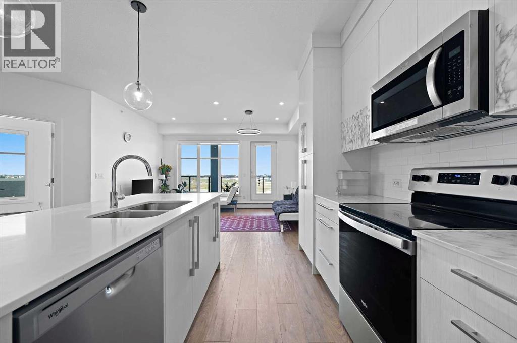 Welcome to #1401, 681 Savanna Boulevard NE – a stylish and modern 2-bedroom, 2-bathroom condo in the vibrant community of Savanna! Perfect for first-time buyers, down-sizers, or investors alike!This bright and open corner unit offers an inviting floor plan designed for comfort and convenience. The contemporary kitchen features sleek cabinetry, quartz countertops, stainless steel appliances, and a spacious island perfect for casual dining or entertaining. The generous living and dining area flows seamlessly onto a private balcony, ideal for morning coffee or evening relaxation. The primary bedroom boasts a walk-through closet and a full ensuite bathroom, while the second bedroom and full bath provide flexibility for family, guests, or a home office. Additional highlights include in-suite laundry, titled parking, and ample storage space. The building offers modern design, secure entry, and is pet-friendly. Located steps from shops, restaurants, schools, and transit, and just minutes from major routes, this home combines lifestyle and convenience in one of Calgary’s most sought-after NE communities. (id:53676)
