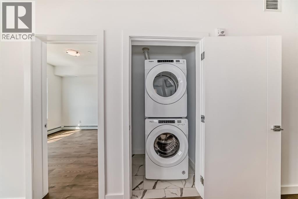 Skyview North by TRUMAN introduces an exceptional fourth-floor unit offering a bright and airy 2-Bedroom, 2-Bathroom layout in the well-established Skyview Ranch community, complete with one titled underground parking stall. Experience elevated living with luxury vinyl plank flooring and a designer lighting package throughout. The custom, chef-inspired kitchen features stainless steel appliances, soft-close cabinetry, and elegant quartz countertops. The primary bedroom boasts a spacious walk-in closet and 3-piece ensuite. Further conveniences include an additional Bedroom, 4-piece bathroom, in-suite washer and dryer, and window coverings. Skyview North is ideally situated near amenities like shopping at Sky Point Landing, green spaces, and extensive playgrounds. With easy access to Stoney and Deerfoot Trails, commuting is a breeze. Schedule your showing today to experience exceptional living at Skyview North! *Photo Gallery of a similar unit* (id:53676)