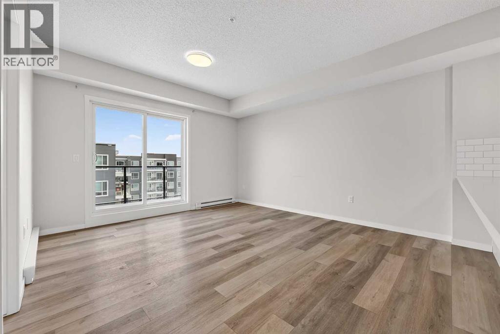 Welcome to this modern fourth-floor condo in the growing community of Carrington, built by Cedarglen in 2024. This bright and thoughtfully designed 2 bedroom, 2 bathroom unit offers approximately 780 sqft of well-used living space, ideal for first-time buyers, downsizers, or anyone looking for a low-maintenance lifestyle in a newer building. The open-concept layout features a stylish kitchen with quartz countertops, stainless steel appliances, ample cabinetry, and a large island that flows seamlessly into the living area. Large windows bring in plenty of natural light and lead out to an east-facing balcony, perfect for enjoying morning sun and fresh air with a bit more privacy and elevation than lower-level units. The primary bedroom includes a full ensuite and generous closet space, while the second bedroom is well-sized and conveniently located near the second full bathroom, making it ideal for guests, a home office, or roommates. Neutral finishes throughout make the space feel clean, modern, and easy to personalize. Located in a well-planned new community with easy access to parks, pathways, shopping, and major routes, this unit offers a great balance of comfort, convenience, and value in northwest Calgary. (id:53676)