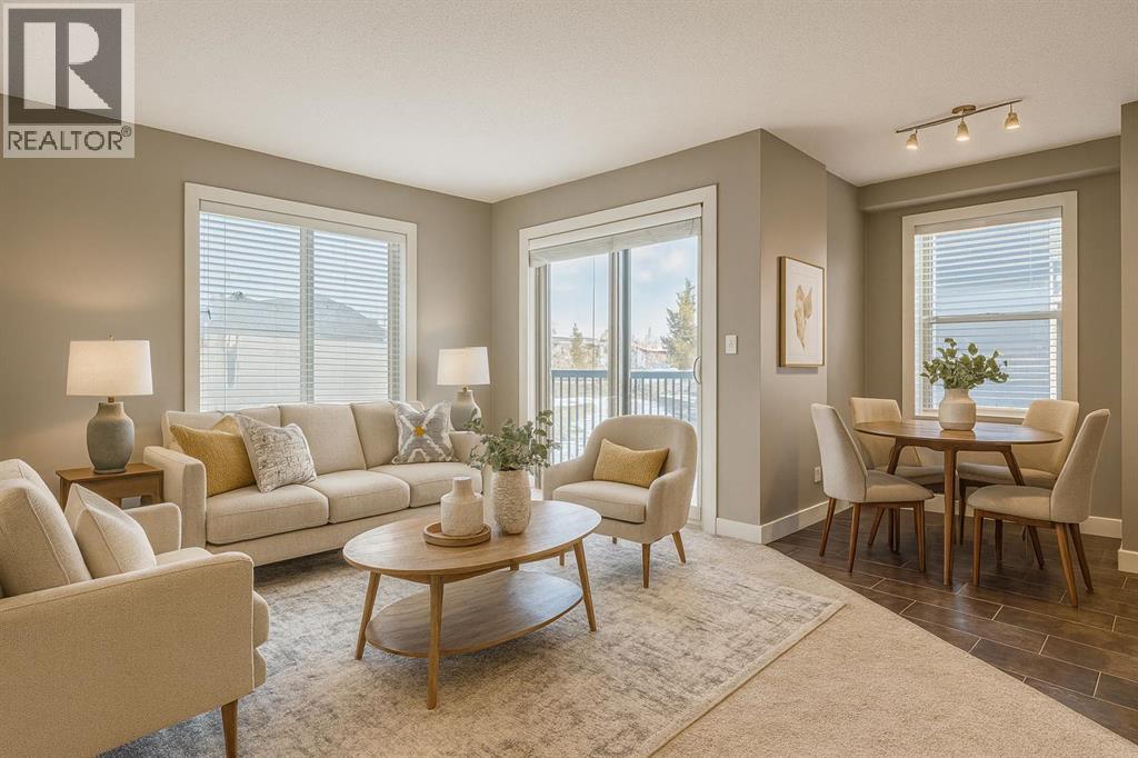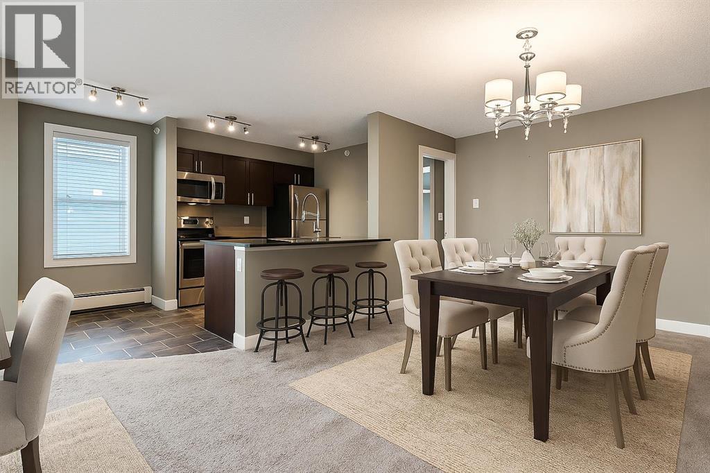 A rare opportunity to own a beautifully appointed CORNER, TOP-FLOOR home filled with warmth, sunshine, and endless natural light. This gorgeous 2-bedroom, 2-bathroom residence with a bonus flex space offers an exceptional layout, underground parking, and a vibrant location that places you minutes from downtown and every amenity imaginable.From the moment you walk in, the sense of openness is undeniable. The expansive front foyer feels more like an extension of your living space than an entryway—offering the perfect spot for a cozy coffee nook, a reading corner, extra storage, or even a small workspace. It’s a welcoming introduction to a home that feels both spacious and inviting.The building itself is undergoing a fresh transformation with new flooring and paint, giving the common areas a clean, contemporary look. Your underground parking stall is truly one of the best in the complex: oversized, extremely convenient, and located right outside the basement access door for effortless everyday living.Inside the unit, the thoughtful design places both bedrooms on opposite ends, creating ideal separation whether you’re hosting guests, sharing with a roommate, or simply wanting privacy. The Primary Suite is bright and comfortable, featuring a large walk-through closet and a private 3-piece ensuite. The second bedroom is generously sized and easily accommodates a queen bed.The heart of the home is the stunning open-concept kitchen and dining area, beautifully lit by natural light pouring through the corner windows. The kitchen offers excellent storage, great counter space, and room for either a small café-style table or an additional moveable island—perfect for those who love to cook or entertain. The dining area flows smoothly into the spacious living room, where large windows and the top-floor vantage point create a bright, uplifting atmosphere all day long.From the living room, step onto the sun-soaked corner balcony, an inviting outdoor retreat ideal for morn ing coffee, evening wine, container gardening, or enjoying the warmth of the afternoon sun. With its open exposure and extra space, it truly extends your living area outdoors.Complete with in-suite laundry, pet-friendly bylaws, low condo fees, and unbeatable access to Deerfoot Trail, transit, shops, parks, and Calgary’s downtown core, this home offers the perfect blend of convenience, comfort, and style. With possession available before Christmas, this top-floor sanctuary is ready to welcome its next owner to a lifestyle of ease and sunshine. (DISCLOSURE the unit is vacant and is virtually staged with options)CONDO FEES $509.95 per month! (id:53676)