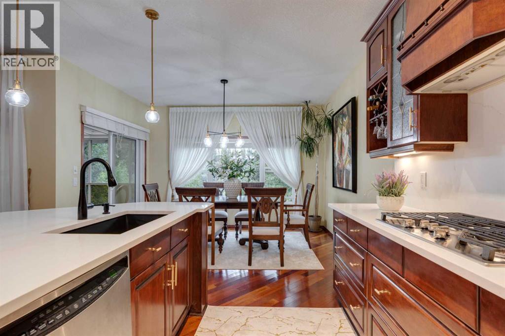 Backing onto a park and tranquil natural reserve that connects to Griffith Woods Park, this immaculate two-storey home blends European-inspired craftsmanship, timeless elegance, and a thoughtful family-friendly layout. A custom mahogany front door with artisan-crafted glass sets the stage for the quality within, opening into a grand sunlit foyer framed by Brazilian cherry hardwood and soaring 9’ ceilings. From the spacious living room, where a stone gas fireplace makes a bold statement, the layout flows into an elegant dining room that connects to a screened three-season room with awning, creating year-round opportunities for effortless indoor/outdoor living. The chef-inspired kitchen is designed for connection and function and features a gas cooktop, stone counters, a large island with seating, and a walk-in pantry, while the mud and laundry room with direct access to the garage ensures practical family functionality and everyday convenience. Expansive windows frame sweeping views of the private backyard and lush green space, flooding the home with natural light. Upstairs, the primary suite is its own retreat and boasts a large walk-in closet and spotless ensuite complete with dual vanities and a corner soaker tub. Two additional bedrooms, along with a four-piece bathroom and a bright bonus room, make for an ideal family layout. The walk-out lower level enhances the home’s versatility, offering in-floor heating, a cozy family room anchored by a second gas fireplace and wood built-ins, a kitchenette, a fourth bedroom, and a full bathroom with steam shower, perfect for older children, long-term guests, or a caregiver. Outside, the south-facing backyard is a private oasis with mature landscaping, a covered patio, and direct access to a recreational field with a skating rink, tennis courts, soccer fields, and pathways that wind along the Elbow River. The oversized 27’ wide garage provides ample space for vehicles and storage. Surrounded by extensive pathways and abunda nt wildlife, Discovery Ridge offers the closest thing to mountain living within city limits while still being minutes to Stoney Trail, Signal Hill Shopping Centre, and premier golf at Elbow Springs and Pinebrook. Additional features include central air conditioning, central vac, a water softener, an irrigation system, and the assurance of quality construction by Homes by AVI. Blending timeless craftsmanship with family-friendly design, this residence offers the perfect backdrop for cherished memories and everyday joy. Don’t miss the chance to make Discovery Ridge your home! (id:53676)