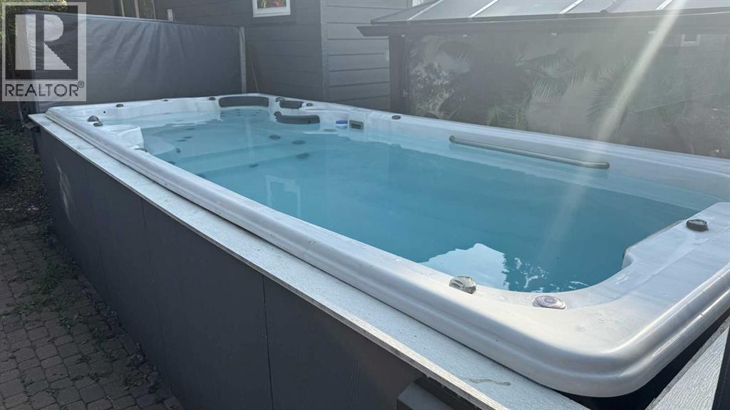 Entertainers dream home, completely renovated down to the studs, inclusive of smart lighting and radiant heating on the entire main floor with individual room controls. Dual zone multi head shower with digital display, heated towel rack, jetted tub with light control, dual sinks, high end appliances, gas stove with smoker, high velocity hood fan, wine fridge, theatre room, golf simulator, heated floor in basement bathroom, stretch ceilings in basement with star lighting, on demand hot water heater, central vacuum, water softener, new windows, basement laundry hookups, heated garage, heated pergola, heated sidewalks and back step, 19ft x 6ft swim spa, A/C, irrigation, outdoor island with Viking BBQ and sink. RV parking pad with power outlet, shed with electricity (id:53676)