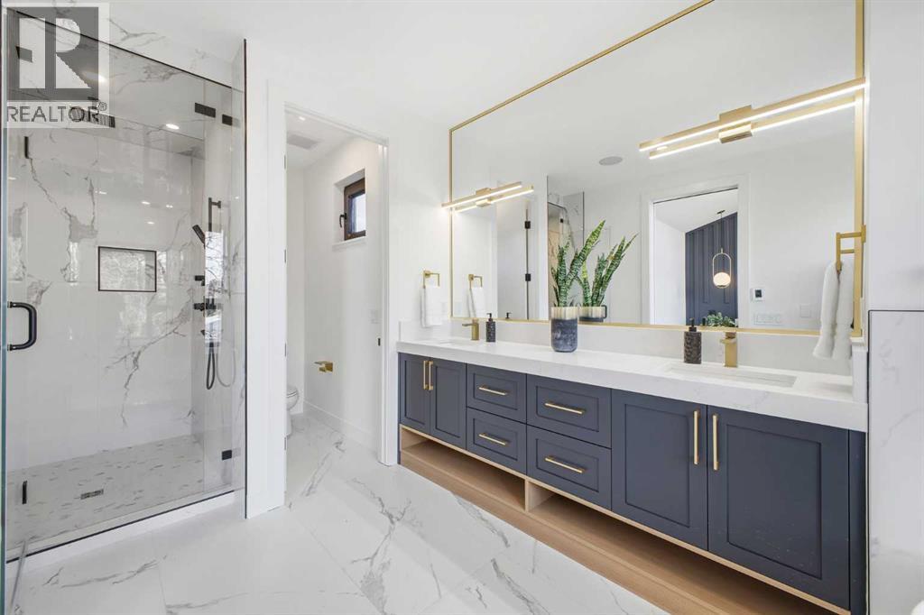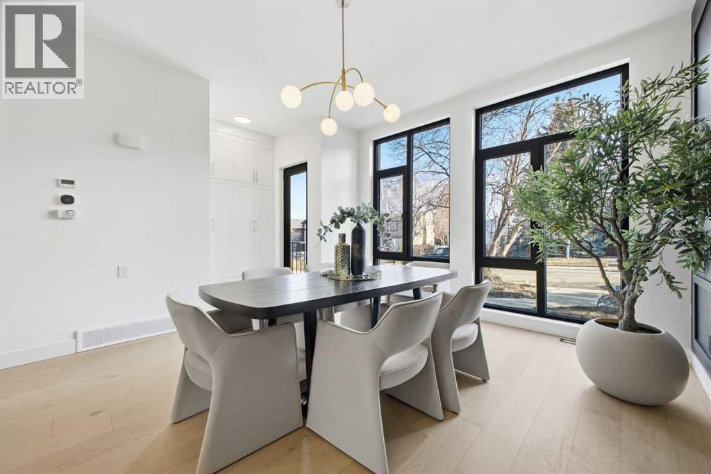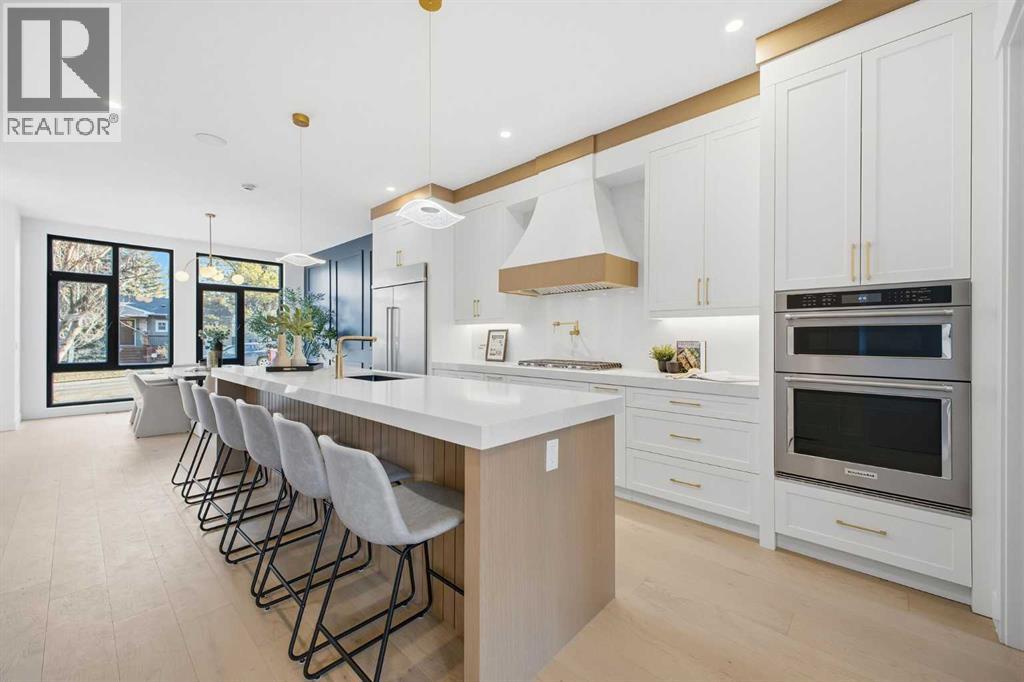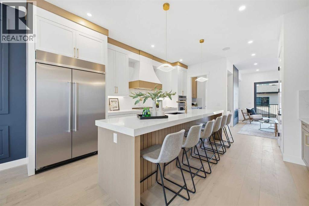 BRICK EXTERIOR | BUTLER'S PANTRY | MUDROOM | BONUS ROOM/OFFICE | STEPS TO TRANSIT | LEGAL BASEMENT SUITE | Welcome to 1427 26A Street SW, a beautifully crafted semi-detached infill located in the heart of Shaganappi. This brand new 2-storey home offers 2,969 square feet of developed living space and blends luxury, functionality, and inner-city convenience. With three bedrooms plus a dedicated office, this home is perfect for families, professionals, or anyone seeking contemporary design with premium finishes. On top of that it offers a two bedroom legal basement suite.The main floor impresses with soaring 10-foot ceilings, wide-plank engineered hardwood flooring, and 8-foot doors. The gourmet kitchen features quartz countertops, a gas stove, built-in microwave, hood fan, custom cabinetry, a walk-in pantry, and a large island with breakfast bar seating. A formal dining area and a cozy living room with gas fireplace and built-in millwork complete this elegant open-concept space. A stylish powder room with designer lighting and custom vanity adds to the home's appeal.Upstairs, you'll find 9-foot ceilings throughout, an expansive primary bedroom with large windows and 13.5 foot vaulted ceilings, a walk-in closet with custom built-ins, and a luxurious 5-piece ensuite with in-floor heating, dual sinks, quartz counters, freestanding soaker tub, and a tiled glass shower. Two additional bedrooms offer generous space and light, while the main bathroom includes double sinks and full-height tile tub surround. The upper floor also features a spacious laundry room with built-in cabinetry and a linen closet.The basement is a two bedroom legal basement suite with a separate entrance, offering a nicely sized living and kitchen area, engineered hardwood flooring, and a 4-piece bathroom. Additional highlights include central air rough-in, smart thermostat, HRV, high-efficiency furnace, 100 AMP panel in the home, and a sump pump. The exterior is finished with a combination of Hardie board, brick, and stucco, paired with dual-pane black vinyl windows. Enjoy outdoor living with exposed aggregate walkways, a rear deck, full landscaping, and a BBQ gas line.Backed by a comprehensive builder warranty and the Alberta New Home Warranty Program, this home provides peace of mind along with exceptional value. Located minutes from downtown, transit, schools, parks, and shopping, this is a rare opportunity to own a brand-new home in one of Calgary’s most desirable inner-city communities. (id:53676)