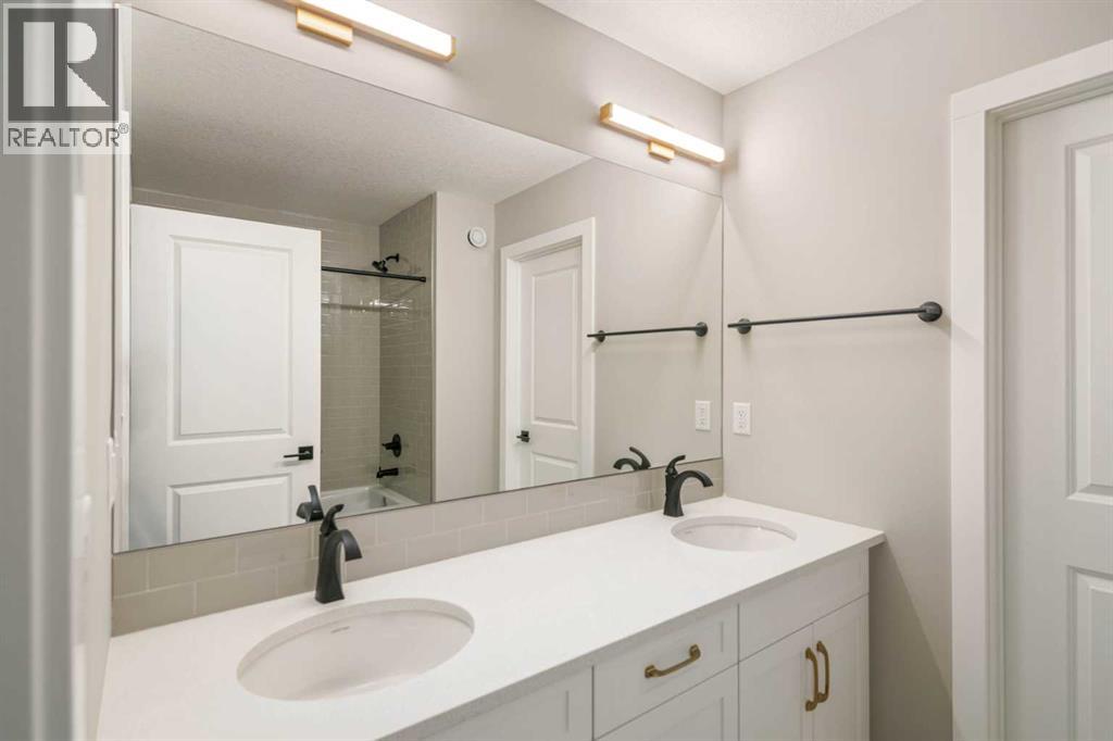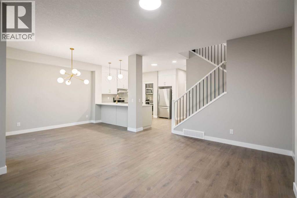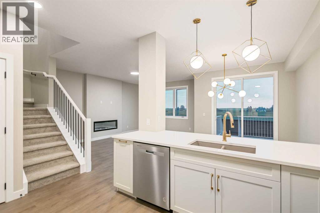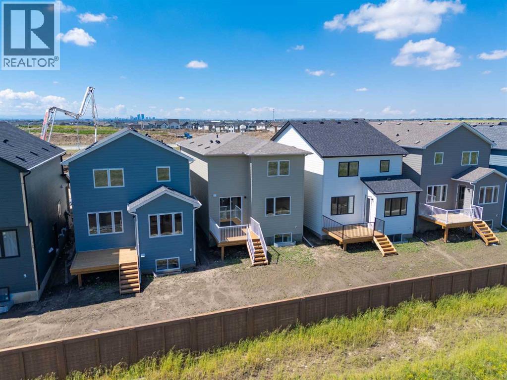 IMMEDIATE POSSESSION | 1,994 SQ.FT. | 4-BED | 2.5-BATH | SPICE KITCHEN | SEPARATE ENTRANCE | HARDIE BOARD SIDING | HREAR DECK | FRONT LANDSCAPING | This move-in-ready home by Crystal Creek Homes BACKS ONTO GREENSPACE and offers a bright, open-concept main floor with a great room and FIREPLACE. The gourmet kitchen includes full-height cabinetry, quartz countertops, a large island, and a SPICE KITCHEN complete with gas range and sink to keep aromatic cooking contained. The dining room opens to a rear deck, ideal for barbecues or morning coffee overlooking the greenspace. Upstairs are FOUR BEDROOMS, including a spacious primary suite with a spa-inspired ensuite, plus a bonus room and convenient laundry. The 9' BASEMENT with separate SIDE ENTRANCE offers future legal suite potential (subject to City approval and permitting). Front landscaping is included, and every finish has been professionally selected for a polished look. Belvedere provides quick access to Stoney Trail, East Hills shopping, and future parks and schools. This home includes a NEW HOME WARRANTY for peace of mind — book your showing today. (id:53676)
