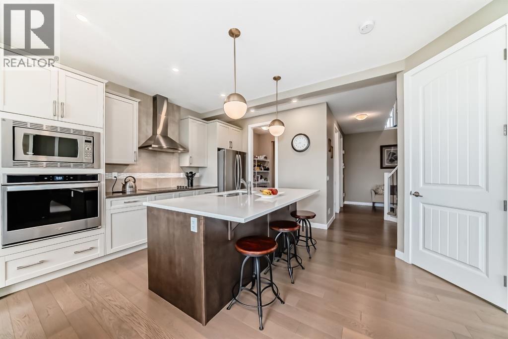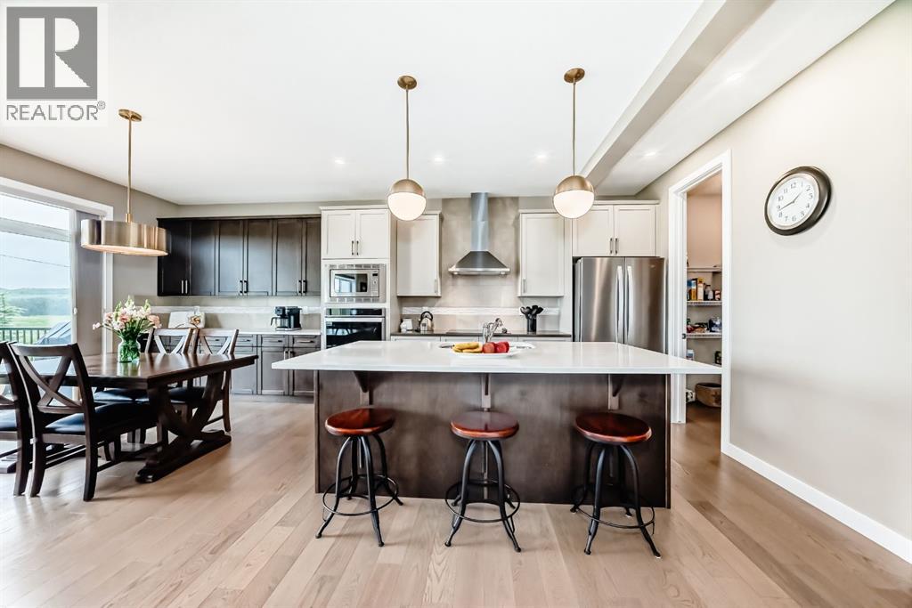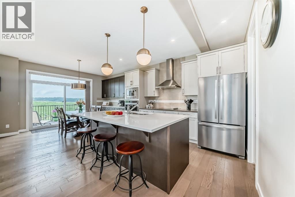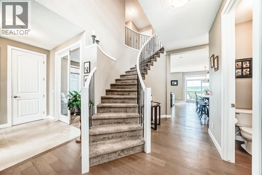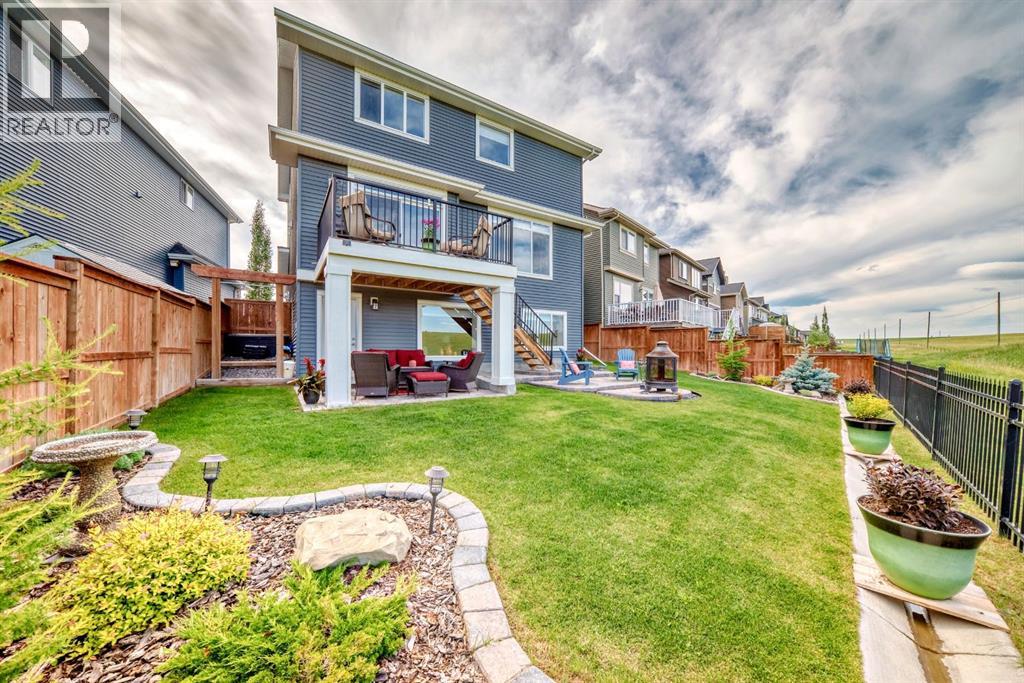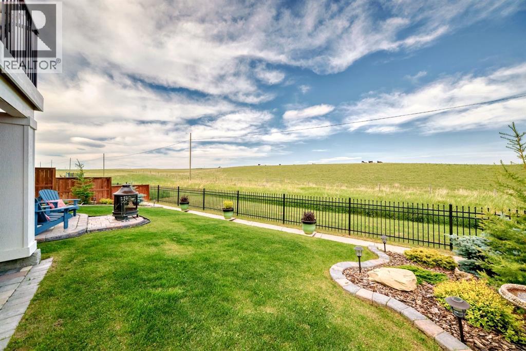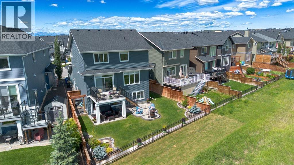 Welcome to your dream home in one of the most sought-after communities, ideally located close to schools, parks, scenic walking trails, and shopping. This beautifully designed, fully finished two-storey home offers the perfect blend of luxury, comfort, and privacy.Set on a large, meticulously landscaped lot with no back neighbours and backing onto a tranquil open field, you'll enjoy peaceful views and unbeatable outdoor living. The irrigated yard is perfect for entertaining or relaxing, with stairs from the upper deck providing easy access to the backyard.Step inside to discover high-end finishes throughout, including 8' interior doors, quartz countertops in the kitchen and bathrooms, and a show-stopping curved staircase that makes a grand first impression. The spacious and beautifully appointed kitchen features a large island, quartz surfaces, and a walkthrough pantry that flows directly into the mudroom and garage – the ultimate in functionality.Enjoy year-round comfort with central air conditioning, and cozy up in the main living area around the gas fireplace, complete with a custom feature wall that adds character and warmth.The main floor office provides the perfect work-from-home setup, while upstairs, the primary suite offers a luxurious retreat with a walkthrough closet leading to the convenient laundry room.Downstairs, the fully finished walkout basement extends your living space with endless possibilities for entertaining, relaxing, or accommodating guests.This home truly has it all – thoughtful design, premium upgrades, and an unbeatable location. Don't miss your chance to own this exceptional property! (id:53676)