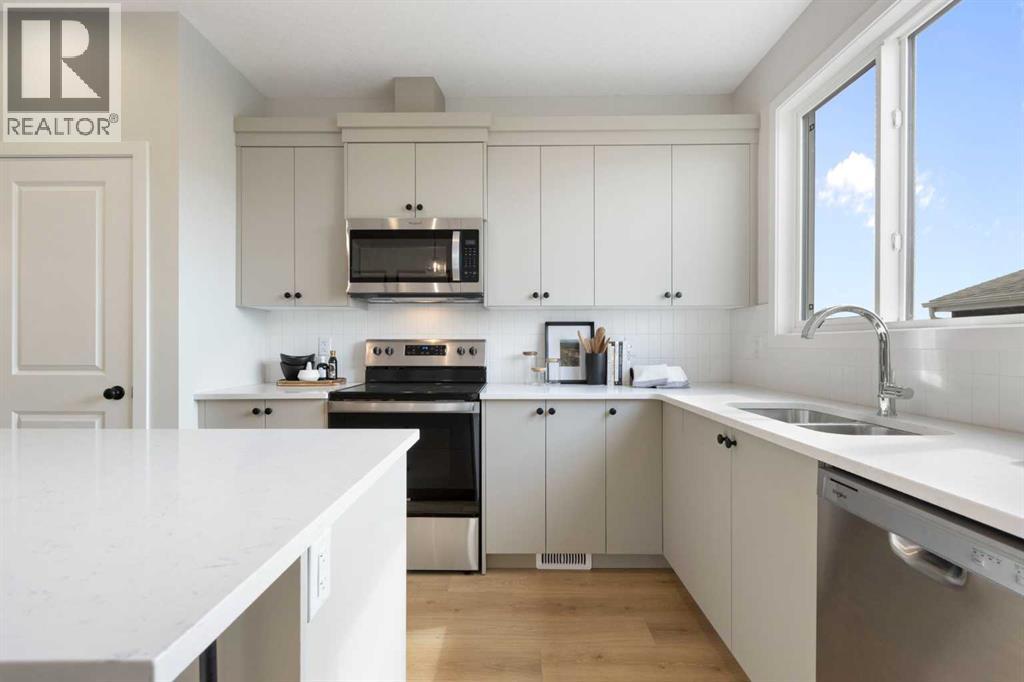 **Open House - Oct 18, 1:00PM-4:00PM (visit us at 1441 Rangeview Drive SE) Welcome to this thoughtfully crafted attached farmhouse-style home nestled in Rangeview, Calgary’s first garden-to-table community. Designed with timeless charm & modern functionality, this home combines character, comfort, & versatility in a way that just feels right. From the moment you pull up, the home’s classic farmhouse exterior, complete with smartboard detailing and front landscaping, makes a memorable first impression. Inside, the main floor unfolds in a bright, open-concept layout with large windows that bathe the space in natural light and elevate the overall warmth & livability of the home. At the front, the inviting living room offers the perfect place to relax or host guests, framed by soft neutral tones & high-quality finishes. The central dining area is open & spacious—easily accommodating everything from weekday meals to larger holiday gatherings. At the back of the home, the chef-inspired kitchen takes center stage. It’s designed for real life—with plenty of prep space, full-height cabinetry, & modern hardware—all tied together by sleek countertops & a functional layout that keeps everything within reach. Whether you're cooking for one or a crowd, this kitchen is built to perform & impress. Just off the kitchen, the rear mudroom adds practical elegance with built-in storage and direct access to your private backyard & double detached garage—ideal for Calgary’s changing seasons and everyday convenience. Upstairs, the primary suite offers a peaceful retreat, featuring a spa-like ensuite with tasteful finishes, a walk-in shower, & space to truly unwind. Two additional bedrooms provide flexibility for kids, guests, or a home office, & the upper-level laundry adds convenience without sacrificing space. The home also includes a separate side entrance, creating an excellent opportunity to develop a future basement suite (A secondary suite would be subject to approval and permitting by the city/municipality) —perfect for multi-generational living or added income potential. Built with energy-efficient triple-pane windows, this home delivers year-round comfort & long-term savings without compromising on design. But why Rangeview? More than just a neighbourhood, Rangeview is a lifestyle centered around food, connection, & community. As Calgary’s first agri-urban community, it’s designed to inspire & connect—offering everything from community gardens & edible landscaping to seasonal food festivals, markets, & workshops. It’s a place where neighbours become friends & the simple act of growing, cooking, & sharing food brings people together. Stroll along walkable streetscapes, unwind in scenic parks, & discover a vibrant calendar of community events designed to enrich your everyday life. With stunning architecture, thoughtful urban planning, & a warm, welcoming spirit, Rangeview is a place to plant roots. (id:53676)