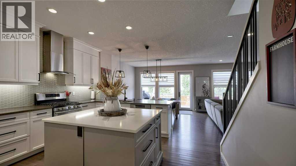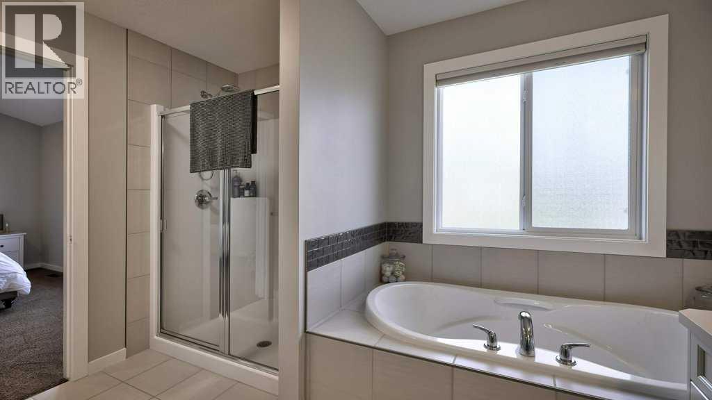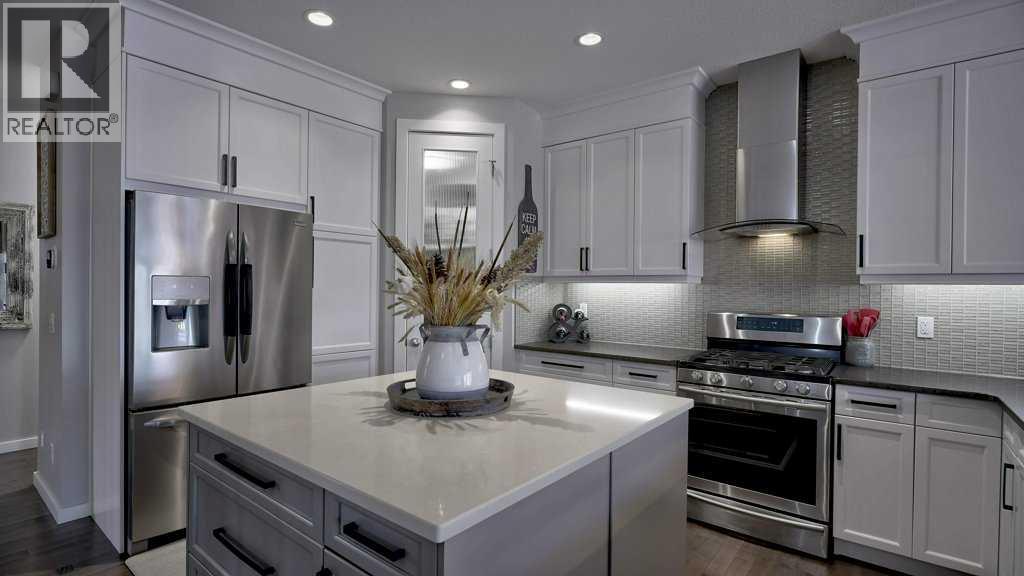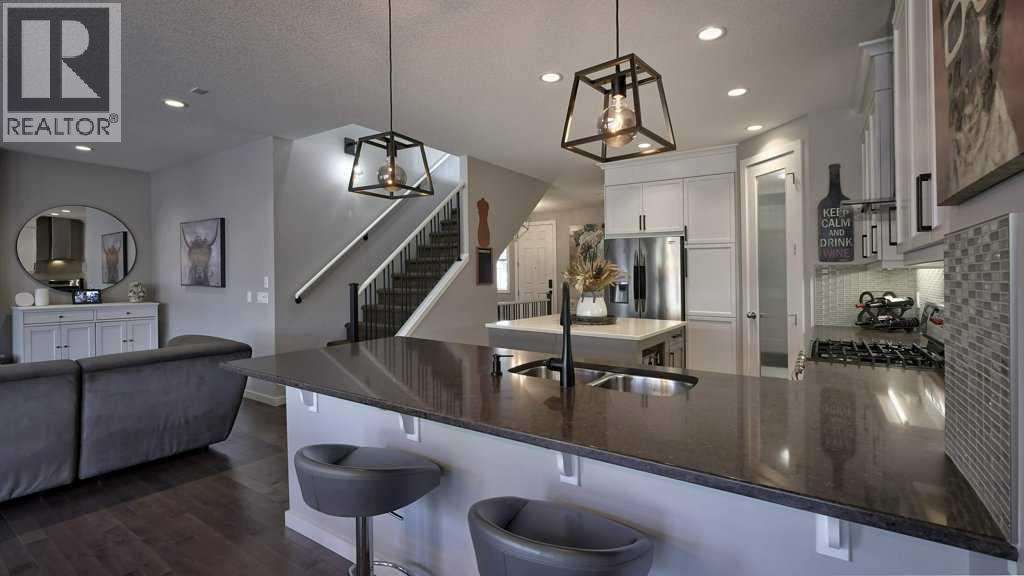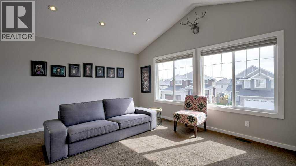 A Home That Truly Must Be Seen as No Detail Overlooked! Step into exceptional living with this meticulous home featuring 9’ ceilings on the main floor with floor-to-ceiling doors. The welcoming front porch leads into a bright, naturally lit foyer w/ home office—perfect for remote work or a quiet retreat. The spacious foyer offers not one but two closets, providing ample storage and organization space right at the entrance. A stylish 2-piece powder room on the main floor features a full-height mirror for an added touch of elegance. Just off the garage, the mudroom connects seamlessly to your convenient walk-through pantry. This chef’s kitchen is a dream with quartz countertops, a large central island packed with extra storage, a built-in microwave, and a brand-new dishwasher. Crisp white cabinetry stretches to the ceiling and is accented by modern black hardware. The living room invites relaxation with massive windows that flood the space with natural light and a cozy fireplace framed by shiplap. A new back door ($5,000 value with transferable warranty) offers privacy—you can see out, but no one can see in. Step outside to your maintenance-free west facing deck complete with a pergola for shade, perfect for outdoor entertaining. The fully fenced and landscaped yard includes a fire pit built to city safety specifications. Upstairs, the vaulted bonus room features large windows and a comfortable, airy ambiance. Two generous secondary bedrooms, a massive 4-piece bathroom, and a large linen closet complete the upper floor. Retreat to your primary suite, boasting vaulted ceilings and loads room for a king-sized bed. The spa-like ensuite includes a stand-up shower, water closet, double sinks, and a corner soaker tub. A huge walk-in closet with two separate wardrobe areas leads directly into the laundry room, right beside the main bathroom—an incredibly smart and functional layout. The garage is insulated and drywalled, ready for all seasons. The basement features large sun shine windows with 9 ft ceiling and is ready for your personal finishing touches. This home combines thoughtful design, premium finishes, and everyday functionality—book your private showing today! (id:53676)