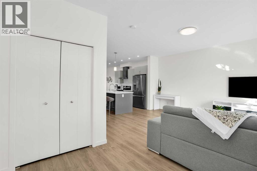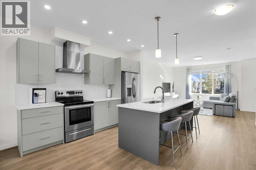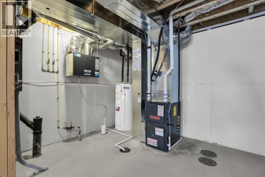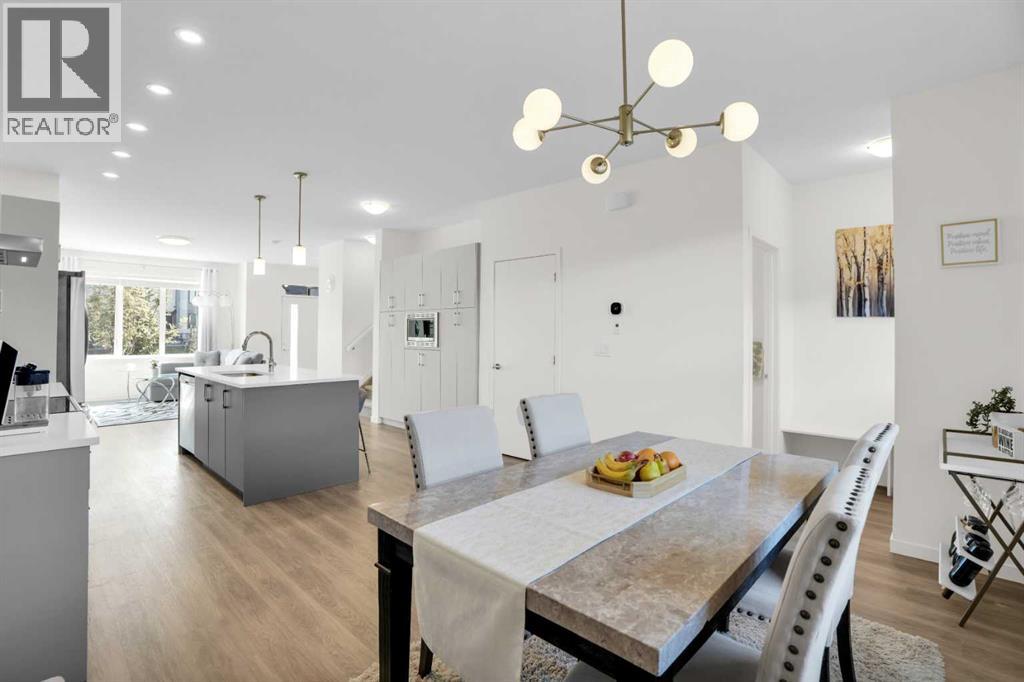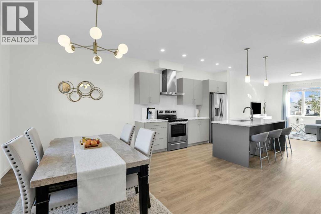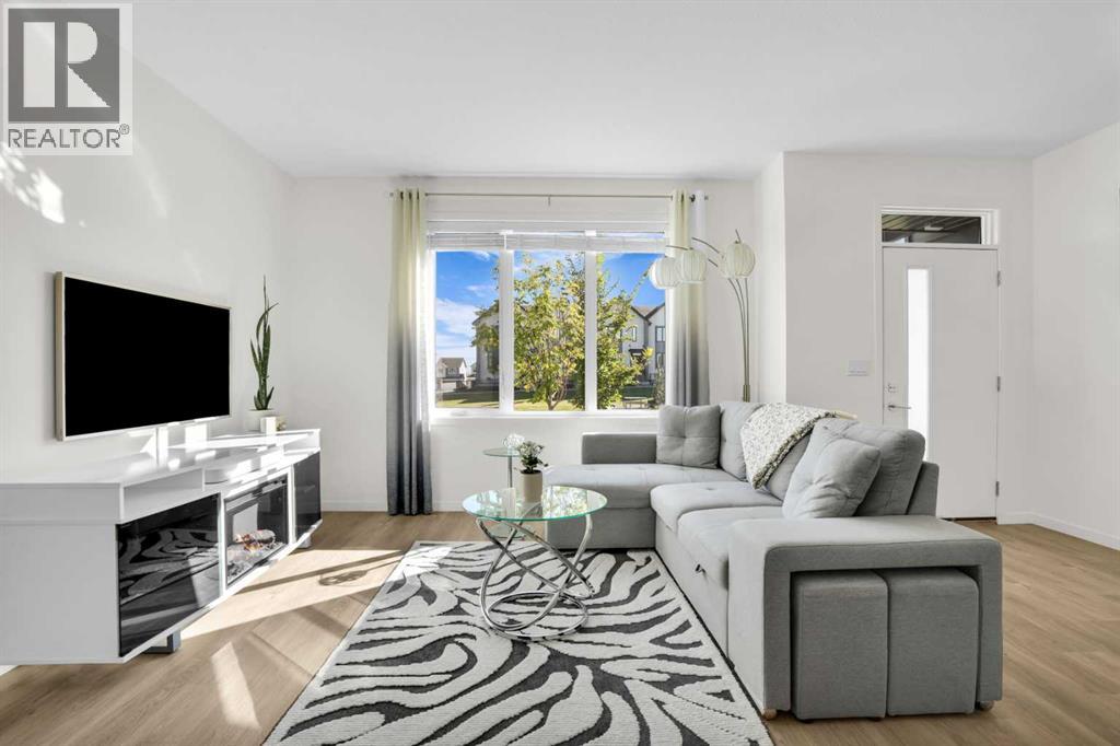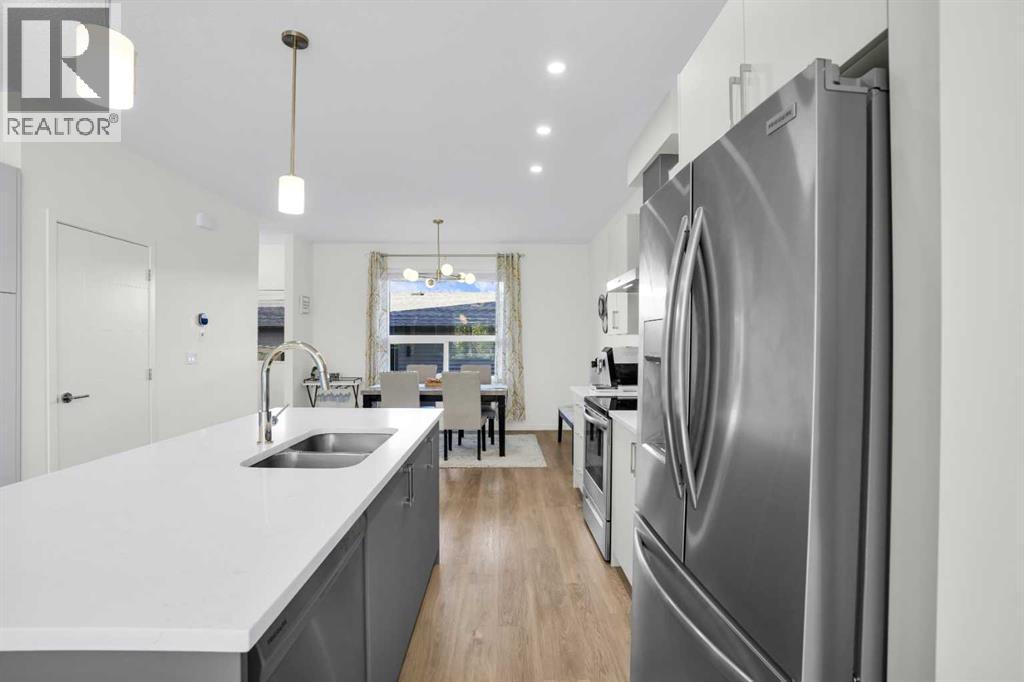 Welcome home to park-side living in Southpoint — with NO CONDO FEES.This bright and beautifully maintained 1,665 sq ft rowhome is ideally located directly across from a green space in the sought-after community of Southpoint, Airdrie, offering an exceptional blend of lifestyle, convenience, and value. The open-concept main floor features quartz countertops, stainless steel appliances, ample storage and an upgraded French-door refrigerator, creating a warm and functional space perfect for everyday living and entertaining. Upstairs, you’ll find 3 bedrooms plus a dedicated office, including a spacious primary bedroom overlooking the park, complete with a walk-in closet and dual-sink ensuite. This home truly stands out with central air conditioning, a landscaped yard, stone-paved pathway, and full wooden fencing for added privacy — upgrades not commonly found in neighboring units. A smart thermostat ensures easy, year round climate control. A double detached garage plus a double parking pad for guests, provides excellent everyday convenience. The unfinished basement is clean and ready for future development. Enjoy close proximity to schools, walking paths, green spaces, and a dog park, with quick access to Coopers Promenade and Deerfoot Trail just 3 minutes away, making commuting to Calgary fast and convenient. (id:53676)