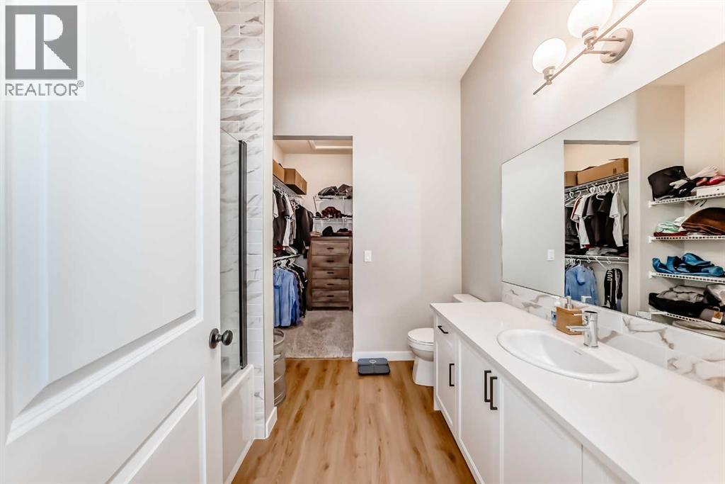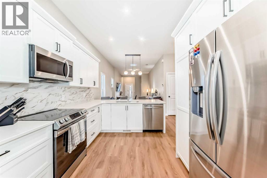 Welcome to this recently built (2022) and meticulously maintained 2 bed/2 full bath, AIR CONDITIONED bungalow; nestled in the community of Lanark Landing. The OPEN CONCEPT FLOOR plan and 10-FEET HIGH CEILINGS add to the spacious feel of this gorgeous home. LUXURY VINYL PLANK can be found throughout kitchen, living room and hallways. The Beautiful kitchen features QUARTZ counter tops, white shaker cabinetry, CROWN MOLDING, plenty of storage drawers, large PANTRY and WIFI enabled STAINLESS STEEL appliances. Living room boasts natural light thanks to a SUN-TUNNEL that leads into a large dining area perfect for entertaining. The primary bedroom features a MASSIVE WALK-IN CLOSET and Ensuite accented with QUARTZ counters and CUSTOM GLASS shower enclosure. The main floor is finished off with a MUDROOM w/bench, large secondary bedroom, laundry closet and 4 piece-bathroom also accented with QUARTZ counters. Do you want to add your personal touches to this home? Over 800sq.ft of undeveloped basement space awaits your imagination, complete with rough in’s and 3 large windows. This LOW MAINTENENCE property has thoughtful design elements including a FRONT VERANDA, CONCRETE PAD for the private patio or potential RV PARKING, a FULLY INSULATED and DRYWALL detached single garage equipped with WIFI OPENER, rock landscape garden out front for curb appeal and full VINYL FENCE and sodded backyard for those summer barbeques. Location is perfect, walking distance to walking paths, skating rinks, basketball courts, parks, schools and Kingsview Market. Easy access to Calgary with the new 40th Avenue overpass. The best value property of it's kind in Airdrie - Do not miss this opportunity! (id:53676)