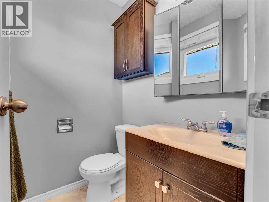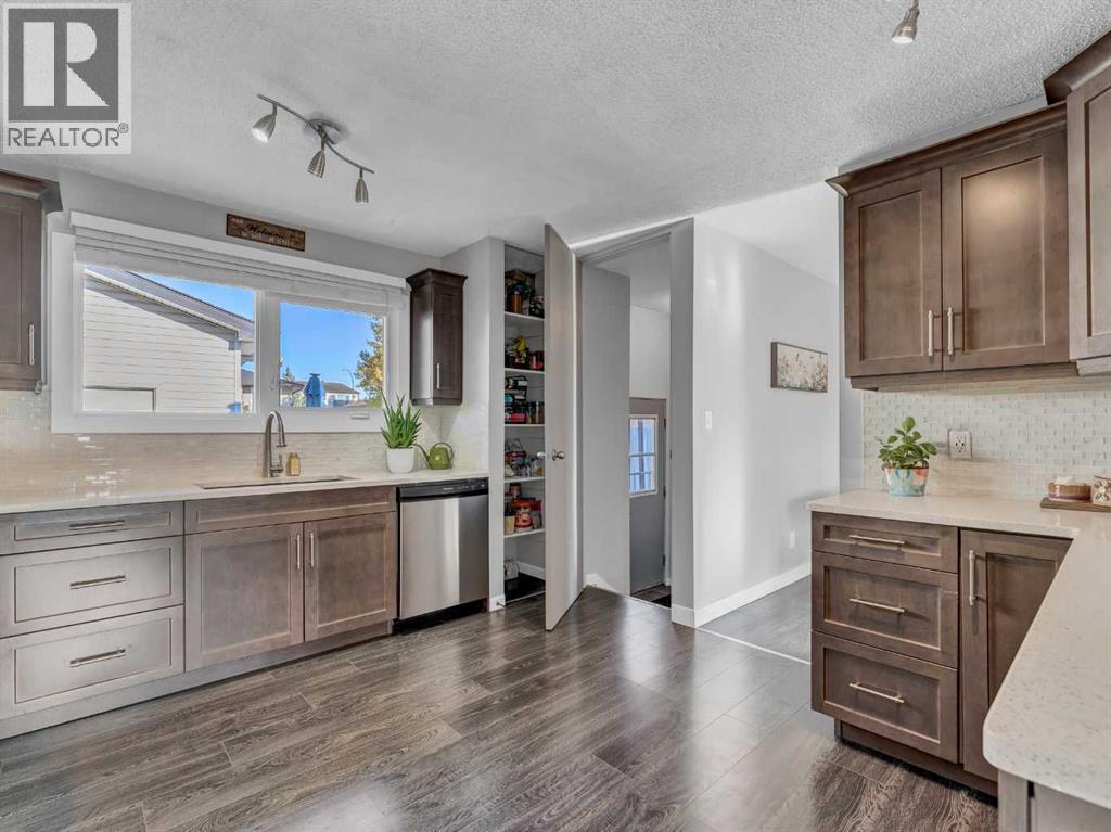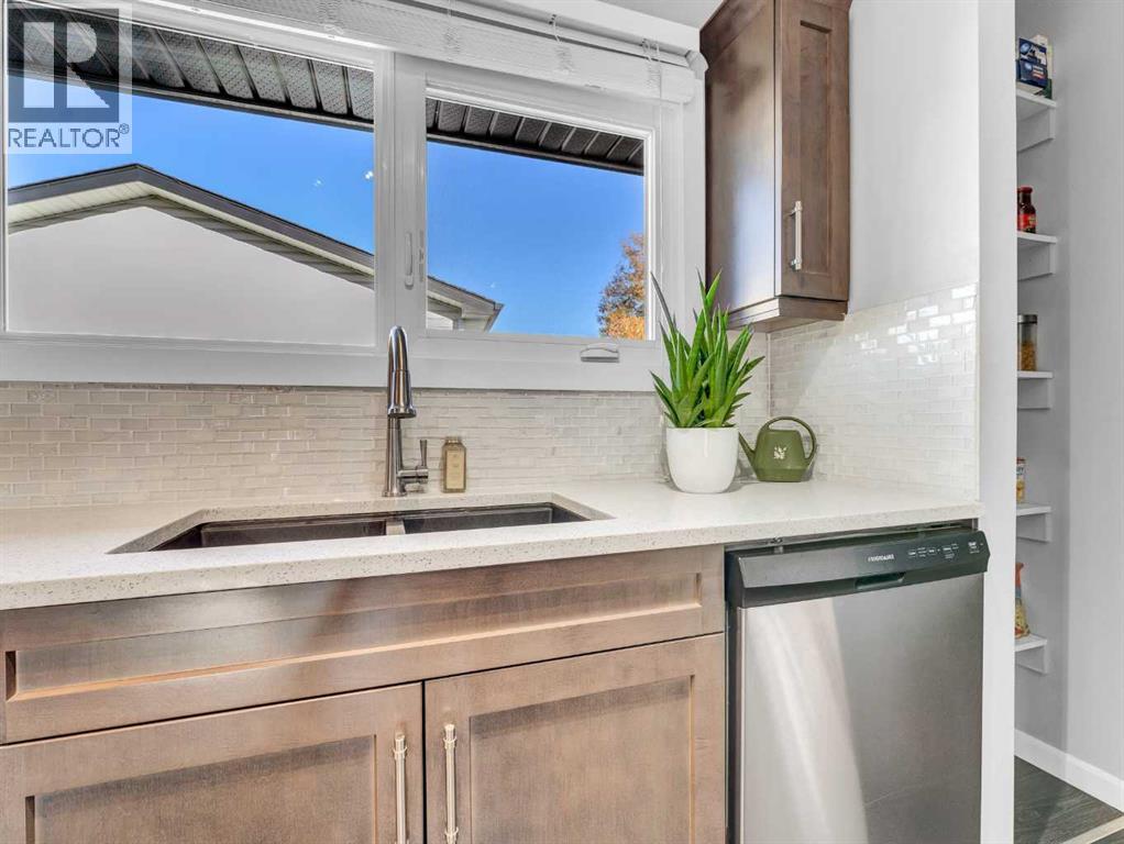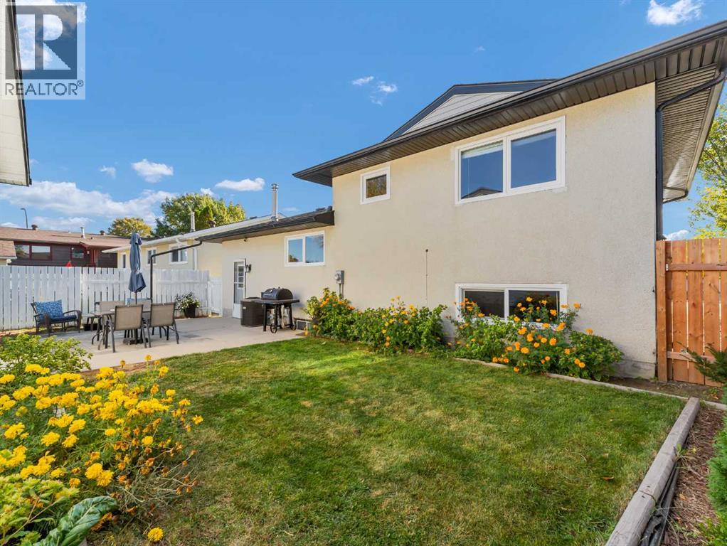 Welcome to this beautifully 4-level split home, perfectly situated in a family-friendly neighbourhood close to schools, parks, and walking/biking paths. Offering 3+1 bedrooms and plenty of space for the whole family. The main floor welcomes you with a bright front living room, dining area, and a stylish kitchen showcasing custom cabinets, quartz countertops, and laminate flooring. The upper level features a primary bedroom with a 2-piece ensuite, two additional bedrooms, and a refreshed full bath. The lower level includes a cozy family room, a fourth bedroom, and an additional 2-pce bathroom, while the basement hosts a wide open space for storage, future living space, and laundry. The furnace, hot water tank, and A/C were conveniently done in 2013. Throughout the home, vinyl windows bring in natural light and efficiency. Outside, you’ll find a beautiful, comfortable yard with patio, a large 24x28 heated/insulated double garage (10 ft ceiling), and two additional parking stalls/RV Parking. With updated siding, kitchen, windows, flooring, and shingles, this home is ready for you to move in and enjoy with your family. Contact your local neighbourhood REALTOR® today! (id:53676)