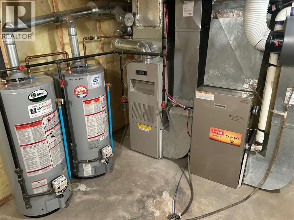 Big Bungalow backing onto a Green Strip! Located in a quiet cul-de-sac with a gorgeous greenspace right behind you this sprawling bungalow offers you privacy, and main level living at it's finest. Ample room on the top floor boasting a vaulted and open living/dining area looking out front, and a spacious kitchen/great room area looking out back. An actual main floor laundry room adds to the convenience. Step out onto the elevated covered deck overlooking that gorgeous green strip knowing that you'll be shaded from the hot summer sun, or sheltered from inclement weather. The basement is fully finished and actually has a separate entrance from the back yard AND a separate entrance up to the garage...which could cater nicely to your "suite" ideas. By the way that garage is finished inside, is heated, and has great storage capacity. 2 furnaces (1 is high efficiency)and 2 hot water tanks help keep up with the demand of a big household. Being well maintained over the years, and with the shingles having been replaced in 2023 this home is ready for your modern touches! (id:53676)