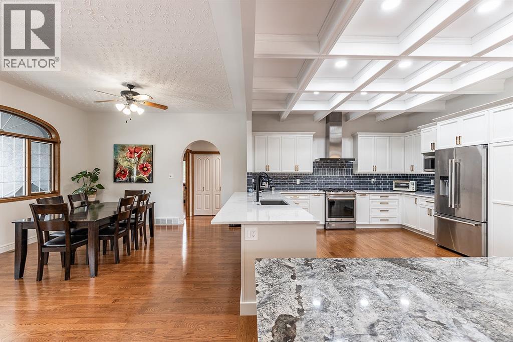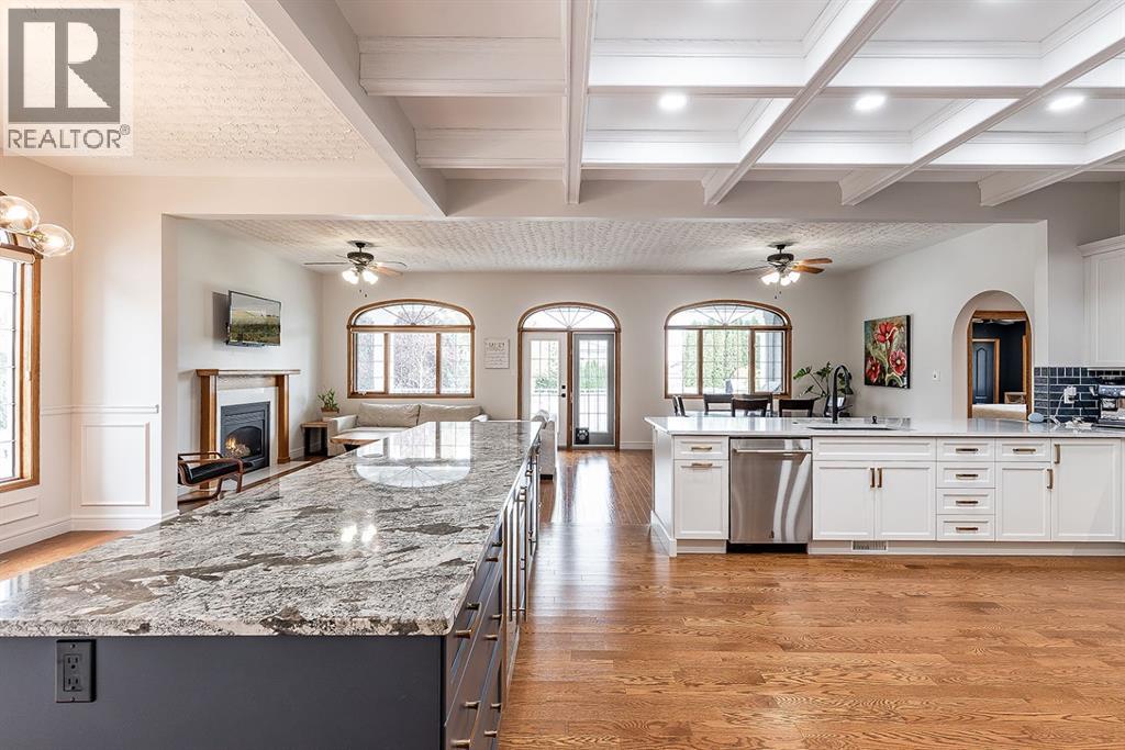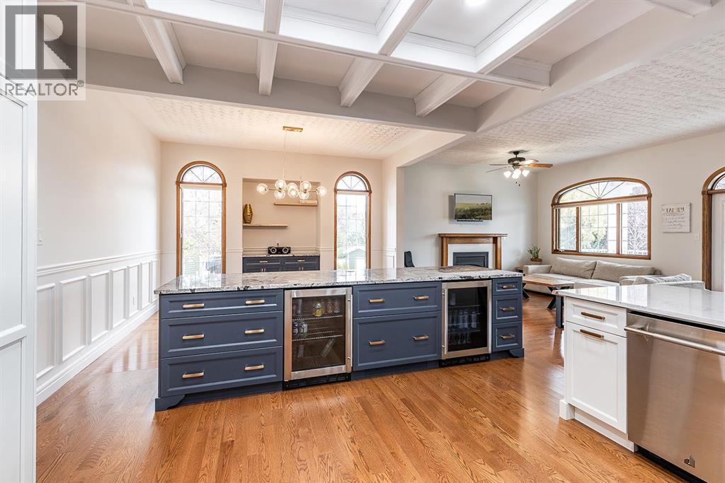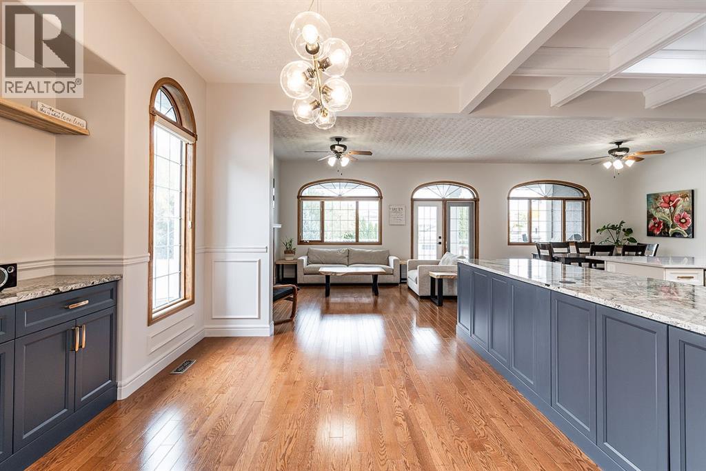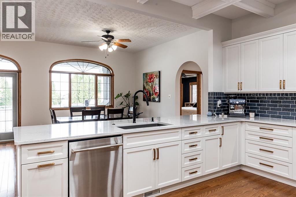 This executive-style walkout bungalow sits on an impressive 12,000 sq ft lot in a quiet court, offering both luxury and comfort inside and out. Beautifully renovated throughout, the home features a chef’s dream kitchen with Jenn-Air appliances, an expansive island complete with bar and wine fridges, and an open-concept main floor that flows effortlessly through the living room, flex space, and large dining area—ideal for entertaining or everyday living.The primary suite offers double closets and a full ensuite, while two additional bedrooms and a spacious foyer complete the main level. Downstairs, the walkout basement is roughed in for a wet bar and offers space for two more bedrooms and a cozy family room, with direct access to a covered patio and the stunning backyard.Outdoors, the fully fenced yard is a private retreat featuring underground sprinklers, a fire pit area, and ample room for a pool or second garage. There’s also RV parking and an oversized double attached garage for all your vehicles and toys.Meticulously cared for, this home shows true pride of ownership and includes numerous updates: A/C (2016), fascia, eaves, and downspouts (2016), roof (2016), upstairs furnace (2017), nine Low-E argon window inserts (2016), and the CHIC advanced exterior coating system completed in 2024 with a 20-year warranty.Conveniently located near schools, playgrounds, and green space, this exceptional property blends executive finishes with the warmth of home—ready to impress the most discerning buyer. (id:53676)