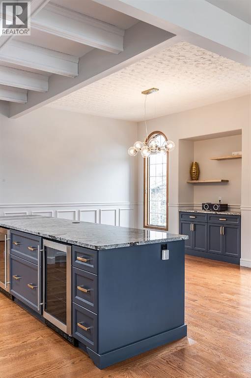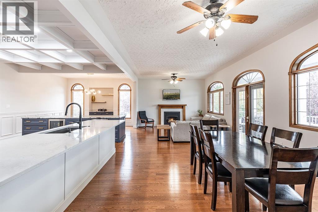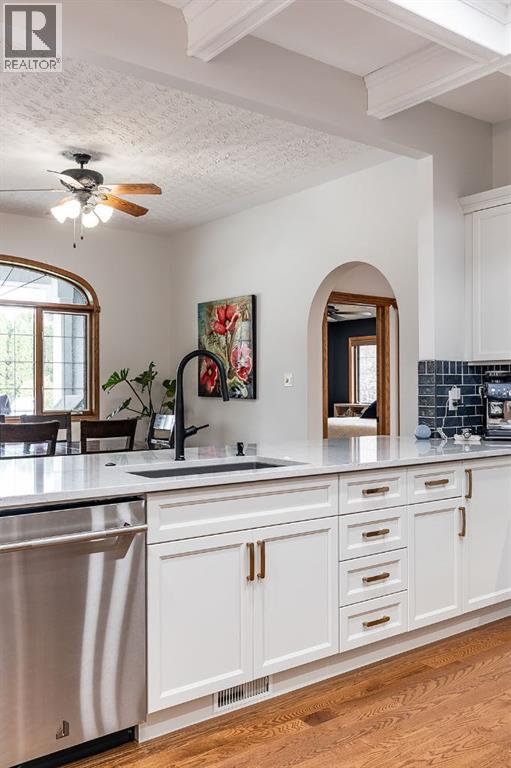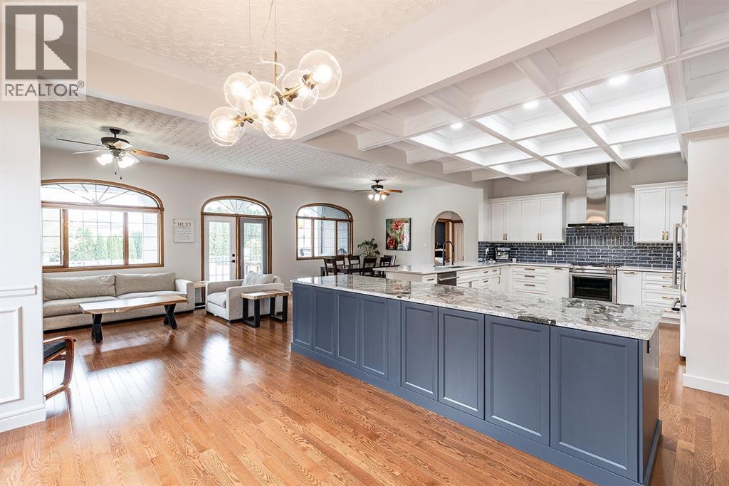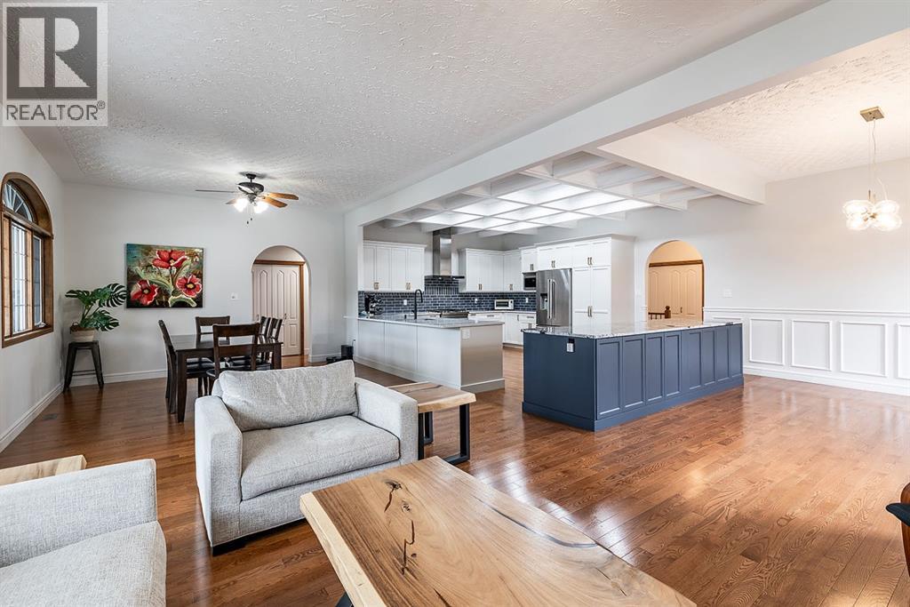 This executive-style walkout bungalow sits on an impressive 12,000 sq ft lot in a quiet court, offering both luxury and comfort inside and out. Beautifully renovated throughout, the home features a chef’s dream kitchen with Jenn-Air appliances, an expansive island complete with bar and wine fridges, and an open-concept main floor that flows effortlessly through the living room, flex space, and large dining area—ideal for entertaining or everyday living.The primary suite offers double closets and a full ensuite, while two additional bedrooms and a spacious foyer complete the main level. Downstairs, the walkout basement is roughed in for a wet bar and offers space for two more bedrooms and a cozy family room, with direct access to a covered patio and the stunning backyard.Outdoors, the fully fenced yard is a private retreat featuring underground sprinklers, a fire pit area, and ample room for a pool or second garage. There’s also RV parking and an oversized double attached garage for all your vehicles and toys.Meticulously cared for, this home shows true pride of ownership and includes numerous updates: A/C (2016), fascia, eaves, and downspouts (2016), roof (2016), upstairs furnace (2017), nine Low-E argon window inserts (2016), and the CHIC advanced exterior coating system completed in 2024 with a 20-year warranty.Conveniently located near schools, playgrounds, and green space, this exceptional property blends executive finishes with the warmth of home—ready to impress the most discerning buyer. (id:53676)