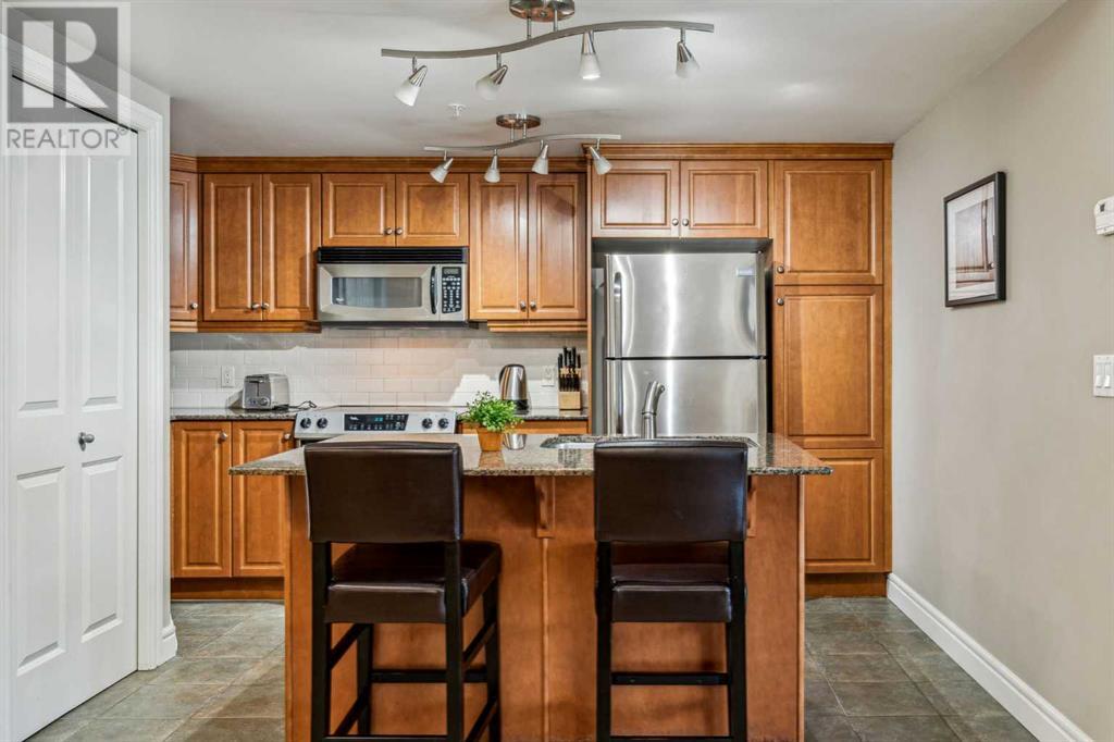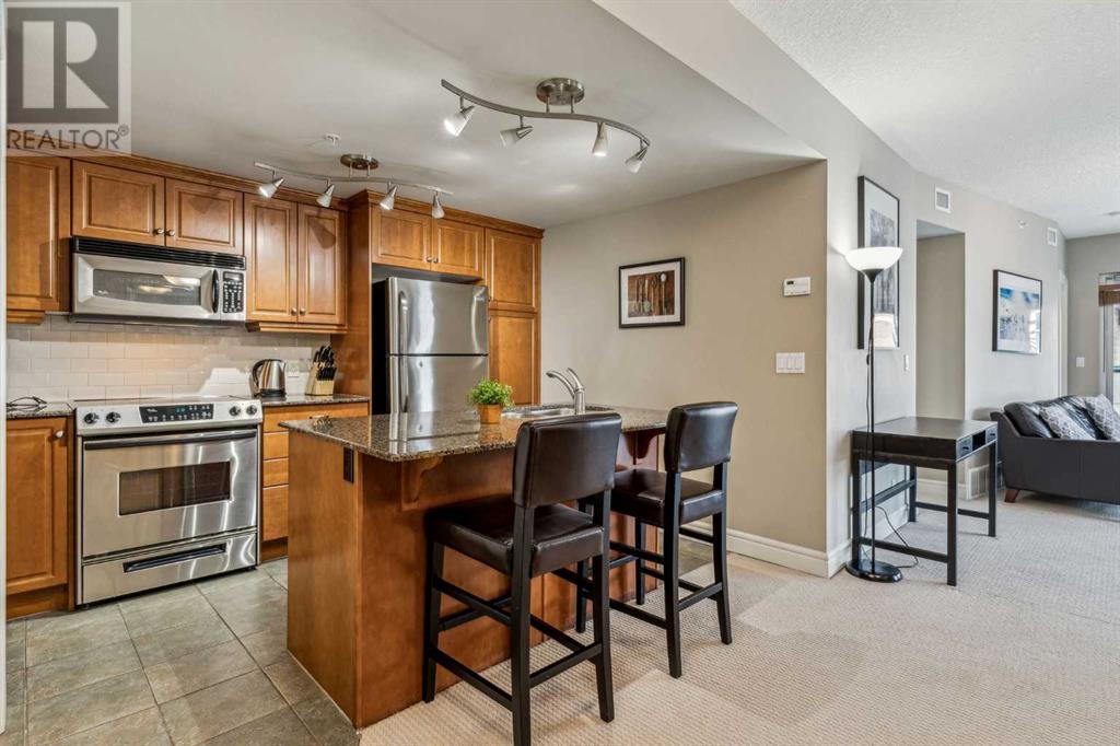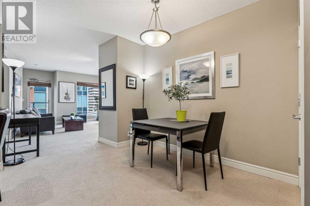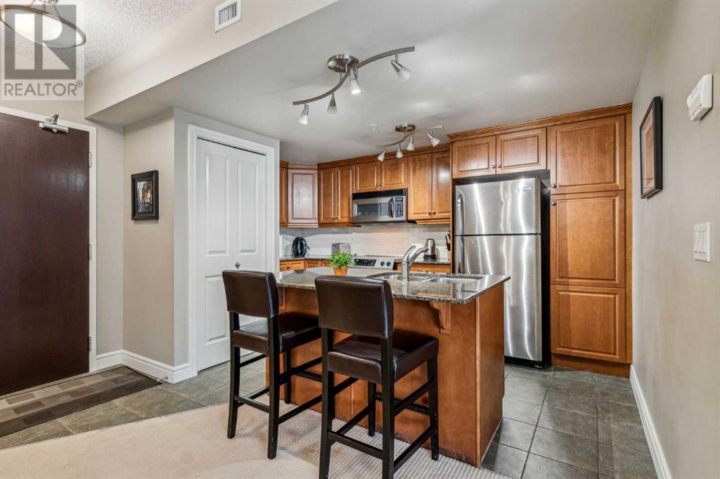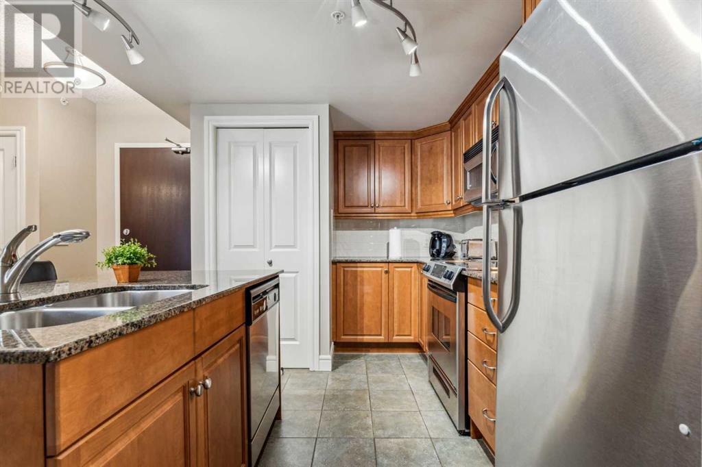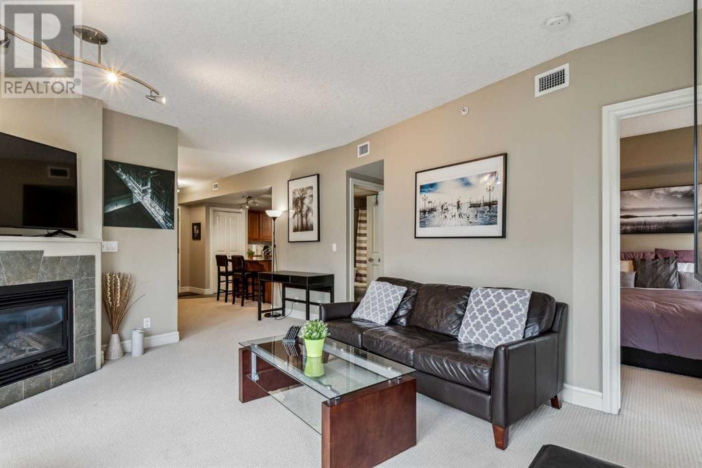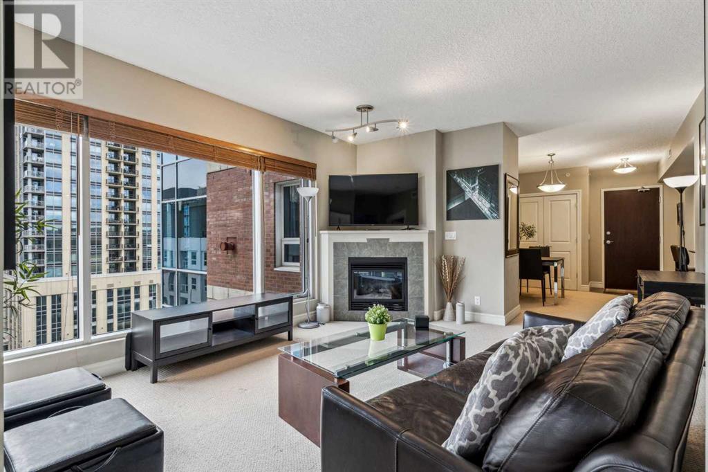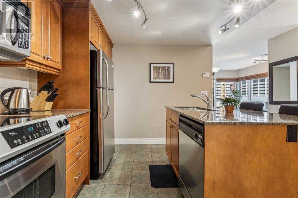 Welcome to Five West! From the moment you step into this building, you'll feel the quality of its finishing and construction. This well cared for 1 bed + 1 bath fully furnished unit is perfect for downtown living. Enjoy great coffee shops, restaurants, shopping, transit, LRT, Kensington, the Bow River pathway, Eau Claire, and so much more, all within walking distance! The spacious floor plan is well designed so all the living spaces feel roomy and comfortable. The kitchen features rich maple cabinetry, granite countertops, sleek stainless steel appliances, and a great island with seating at the overhang. The living room gets plenty of natural light through the large windows, and has a cozy, tiled fireplace. Enjoy the private balcony with bbq and downtown/river views! The bedroom has ample closet space and convenient access to the 4-piece bathroom. Also included: in-suite laundry, 1 titled underground parking spot, and a storage locker. With fantastic building amenities like concierge service, bike storage, central air conditioning, rec room, car wash, and a beautiful rooftop terrace showcasing amazing views, there's so much value here! Book a showing and come see for yourself!Directions: (id:53676)
