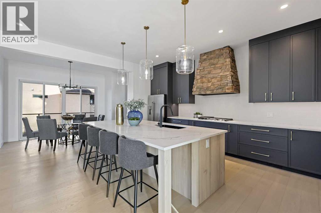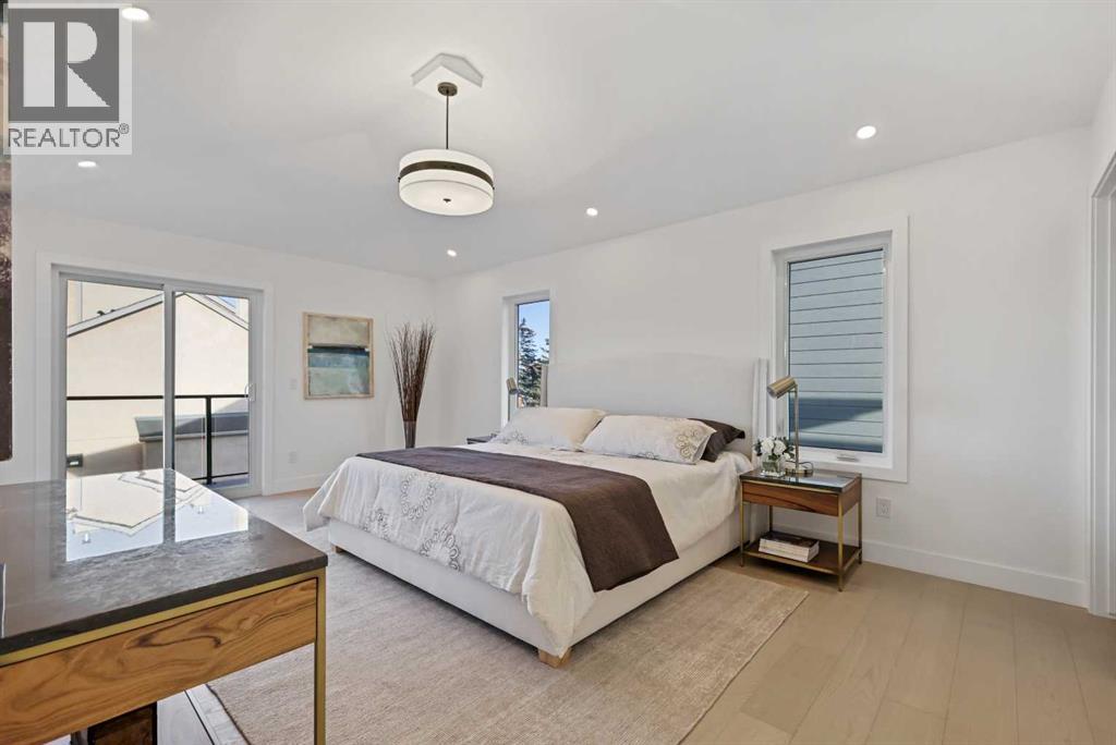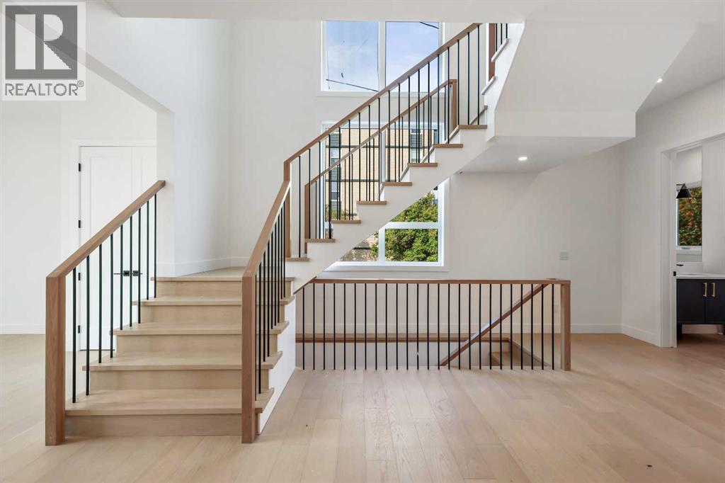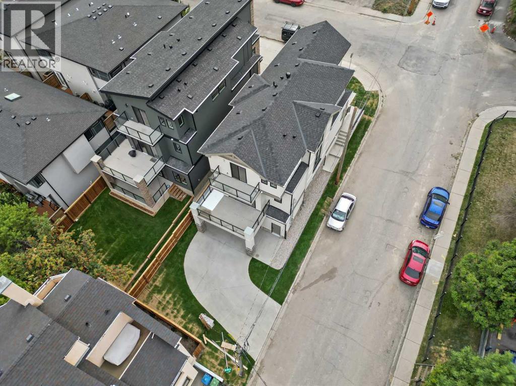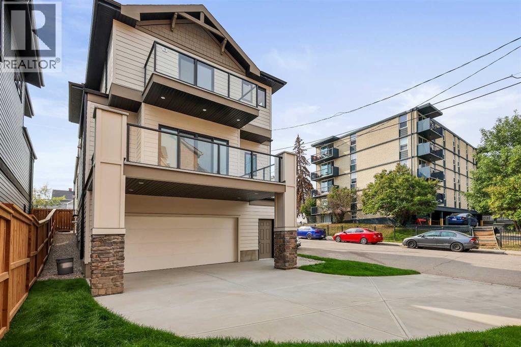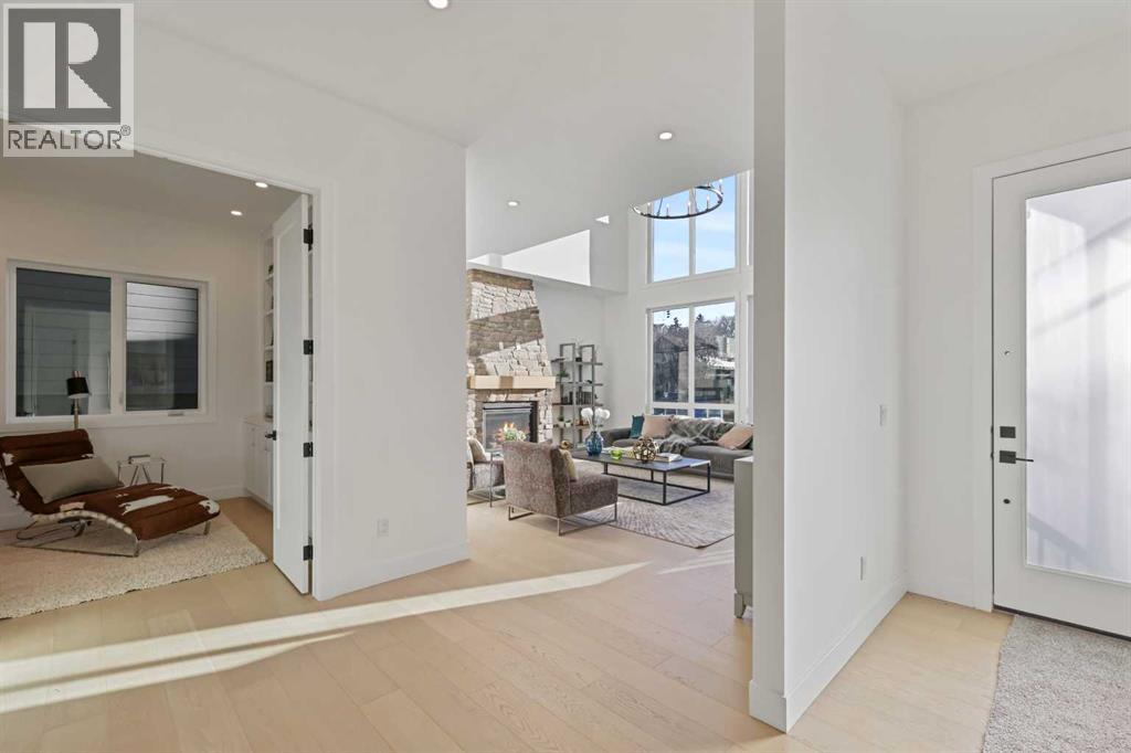 Welcome to 1516 22 Ave SW — a brand-new, luxurious infill offering panoramic Downtown views in the heart of Calgary’s highly sought-after Bankview neighborhood. With 3,465 square feet of meticulously crafted living space, this modern masterpiece boasts 4 spacious bedrooms, 4 designer bathrooms, and a stunning fusion of comfort, style, and sophistication. Step inside to soaring vaulted ceilings accented with rich wood tones, creating a warm and inviting atmosphere. The sun-drenched living room features custom built-ins, a dramatic stone gas fireplace, and expansive bay windows that frame the skyline. A versatile den or home office adds functional flexibility. The chef-inspired kitchen is a standout, equipped with premium GE Café appliances including a wall oven, gas cooktop, and microwave. Elegant quartz countertops, chic blue cabinetry, a generous island, and a handcrafted stone range hood are complemented by a crisp white tile backsplash. A dedicated wine cellar adds a touch of indulgence. The adjacent dining room is ideal for everyday meals or elegant entertaining. Upstairs, the serene primary suite offers a walk-in closet with custom built-ins and a luxurious 5-piece ensuite with a soaker tub, dual sinks, and a glass steam shower. Two additional bedrooms, each with their own walk-in closets, share a stylish 4-piece bathroom. Enjoy sweeping Downtown views from the private second-floor deck. The upper-level laundry room includes a washer, dryer, sink, and ample storage for added convenience. The fully developed walk-out basement is perfect for entertaining or relaxing, featuring a large family room, wet bar, guest bedroom, 3-piece bath, and generous storage. The oversized lot enhances the home’s spacious feel and natural flow. Perfectly positioned near 17th Avenue’s vibrant shops and restaurants, Marda Loop, Mount Royal University, and with easy access to Downtown, this extraordinary residence is more than a home — it’s a statement of modern luxury living. (id:53676)