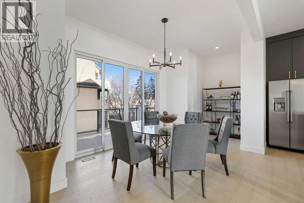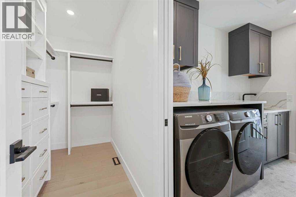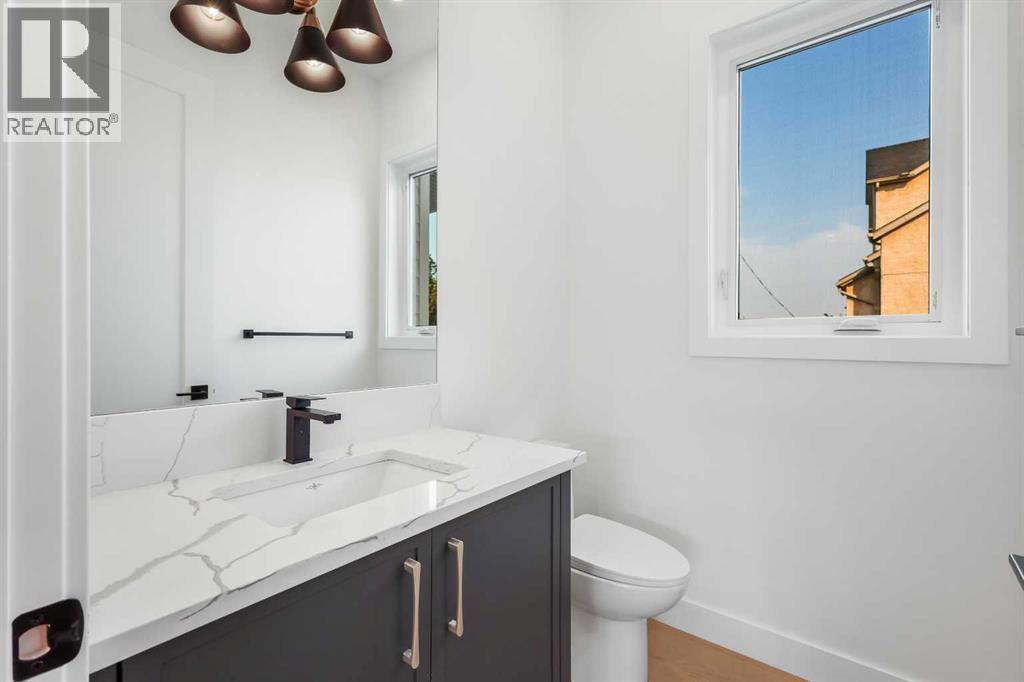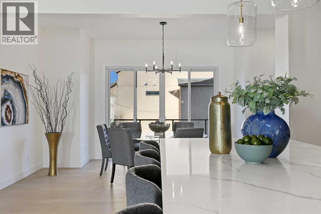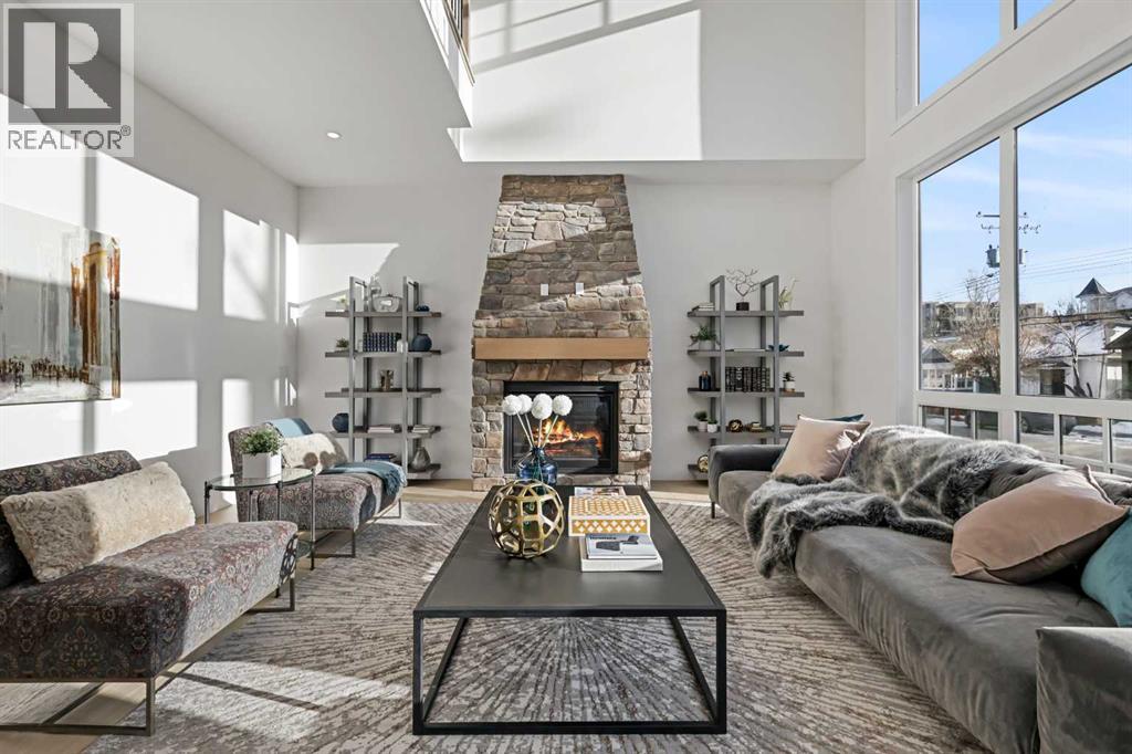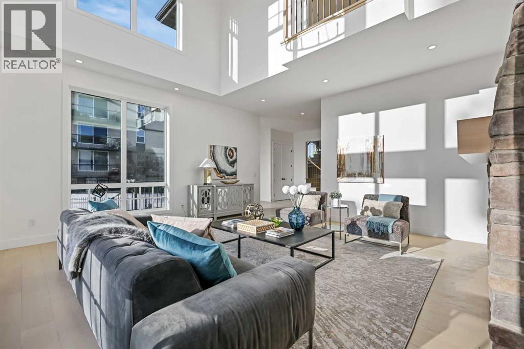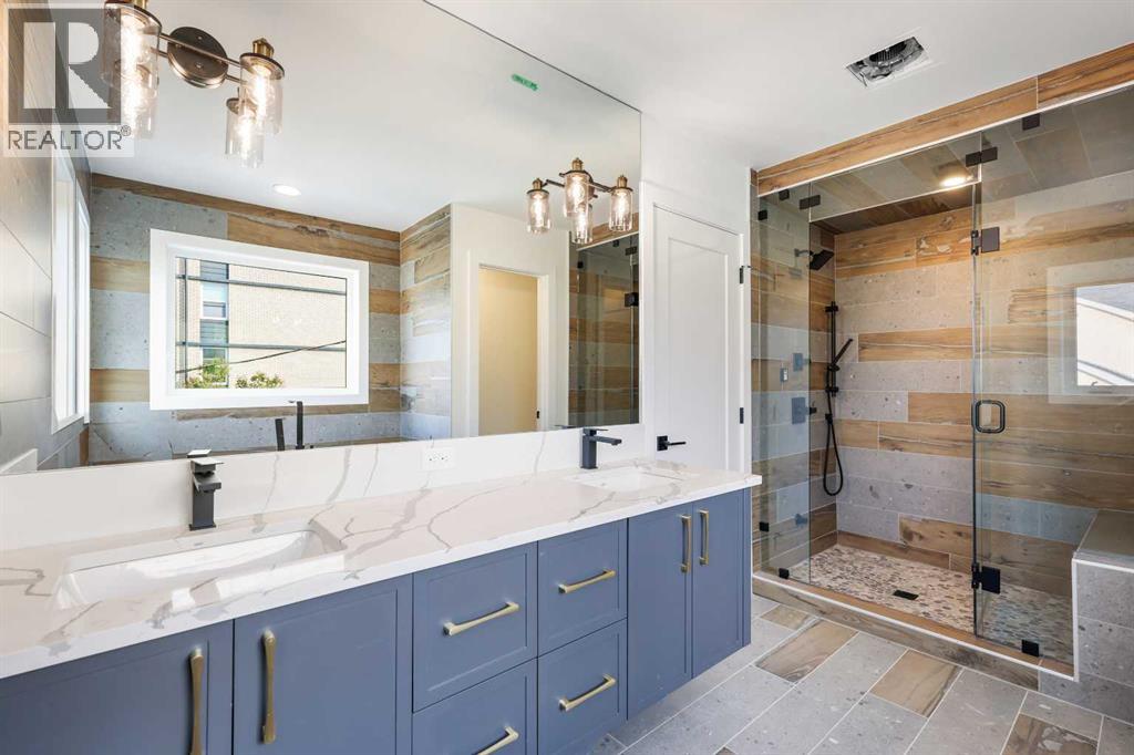 Welcome to 1516 22 Ave SW — a brand-new, luxurious infill offering panoramic Downtown views in the heart of Calgary’s highly sought-after Bankview neighborhood. With 3,465 square feet of meticulously crafted living space, this modern masterpiece boasts 4 spacious bedrooms, 4 designer bathrooms, and a stunning fusion of comfort, style, and sophistication. Step inside to soaring vaulted ceilings accented with rich wood tones, creating a warm and inviting atmosphere. The sun-drenched living room features custom built-ins, a dramatic stone gas fireplace, and expansive bay windows that frame the skyline. A versatile den or home office adds functional flexibility. The chef-inspired kitchen is a standout, equipped with premium GE Café appliances including a wall oven, gas cooktop, and microwave. Elegant quartz countertops, chic blue cabinetry, a generous island, and a handcrafted stone range hood are complemented by a crisp white tile backsplash. A dedicated wine cellar adds a touch of indulgence. The adjacent dining room is ideal for everyday meals or elegant entertaining. Upstairs, the serene primary suite offers a walk-in closet with custom built-ins and a luxurious 5-piece ensuite with a soaker tub, dual sinks, and a glass steam shower. Two additional bedrooms, each with their own walk-in closets, share a stylish 4-piece bathroom. Enjoy sweeping Downtown views from the private second-floor deck. The upper-level laundry room includes a washer, dryer, sink, and ample storage for added convenience. The fully developed walk-out basement is perfect for entertaining or relaxing, featuring a large family room, wet bar, guest bedroom, 3-piece bath, and generous storage. The oversized lot enhances the home’s spacious feel and natural flow. Perfectly positioned near 17th Avenue’s vibrant shops and restaurants, Marda Loop, Mount Royal University, and with easy access to Downtown, this extraordinary residence is more than a home — it’s a statement of modern luxury living. (id:53676)
