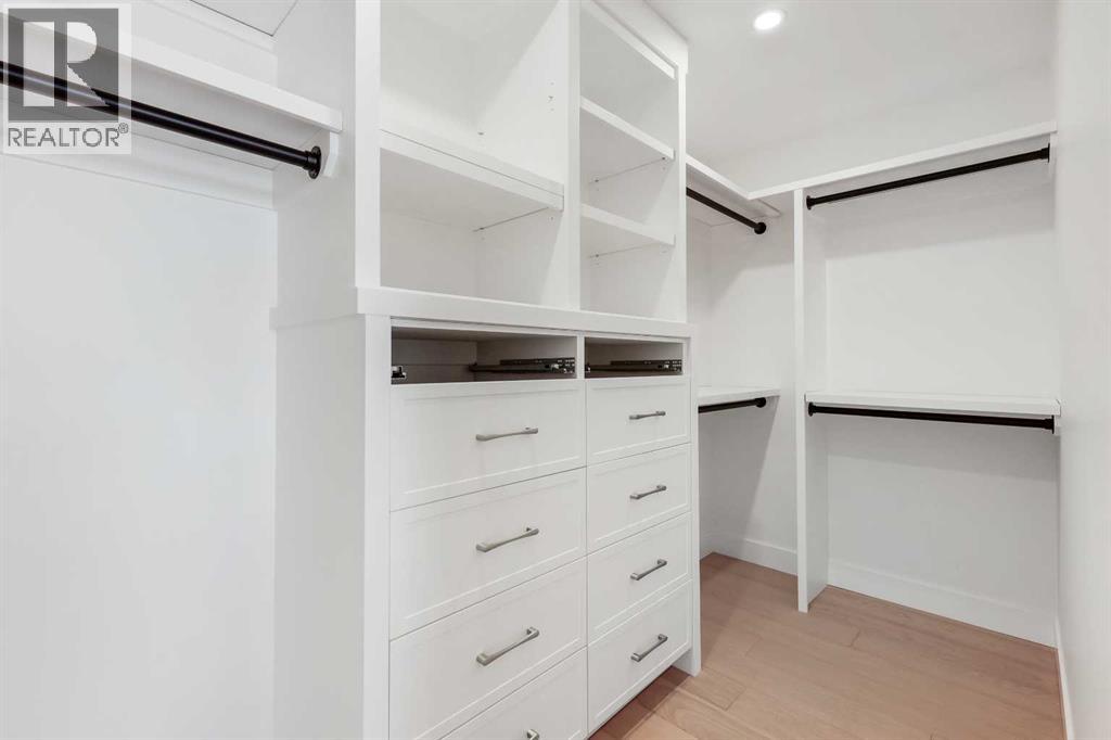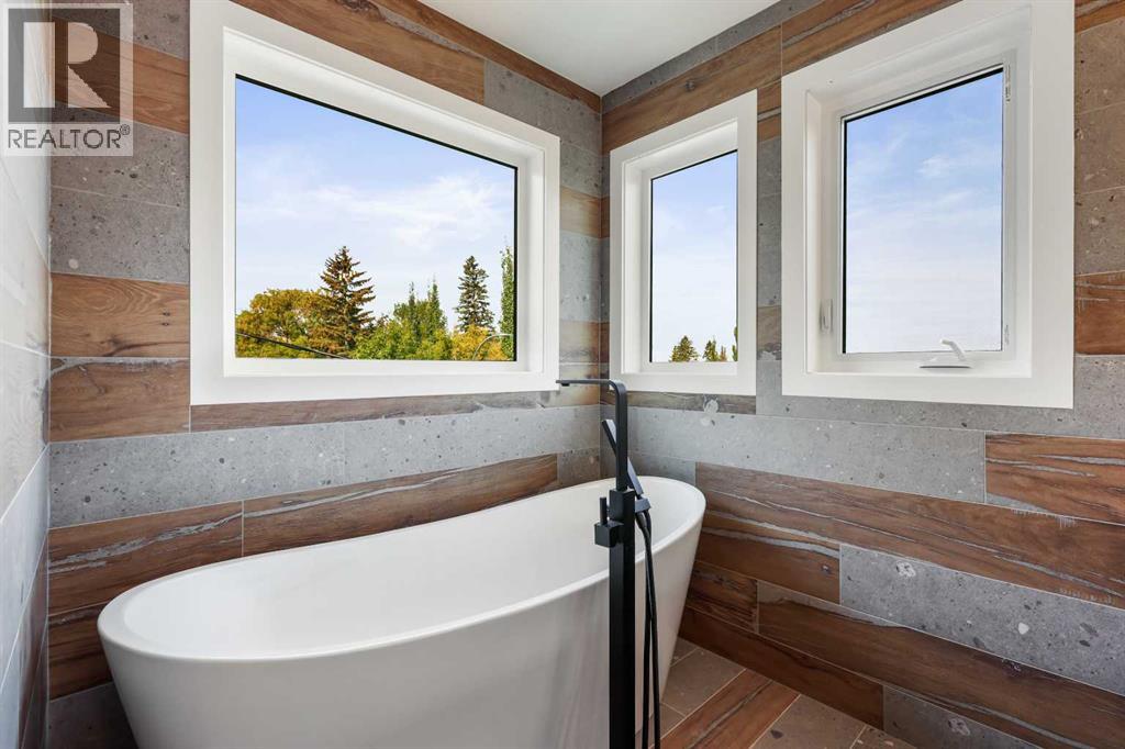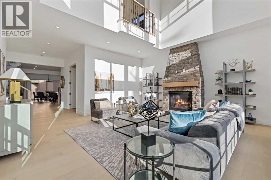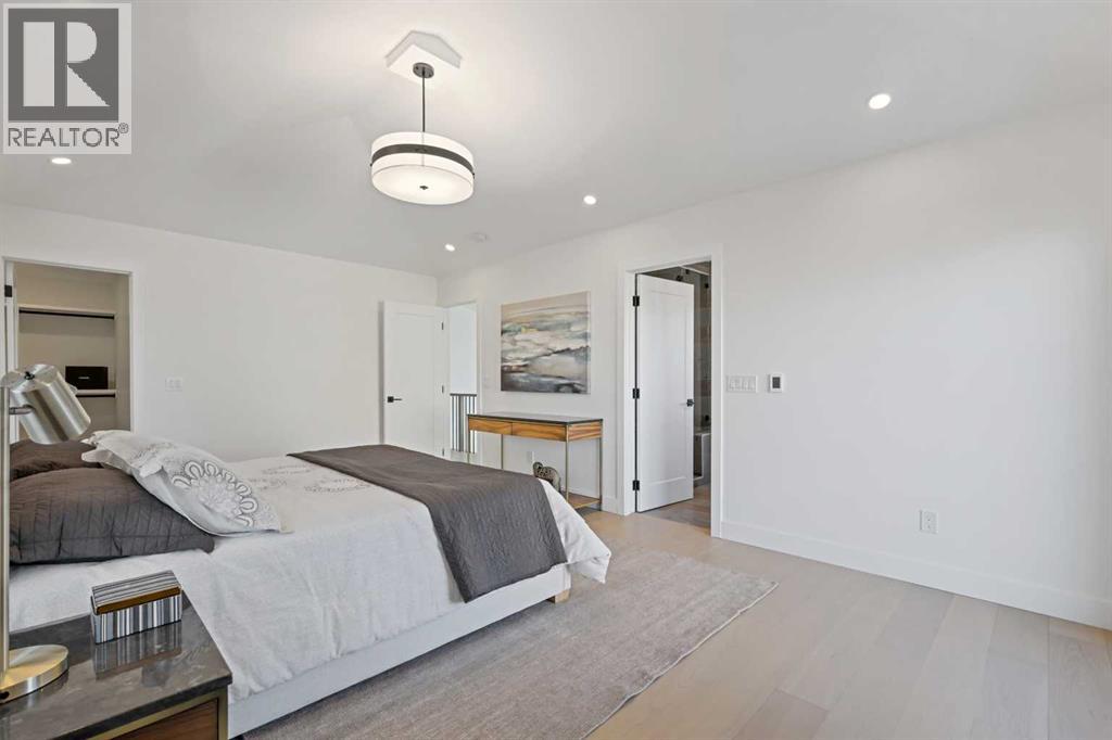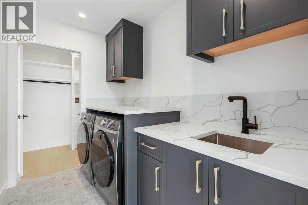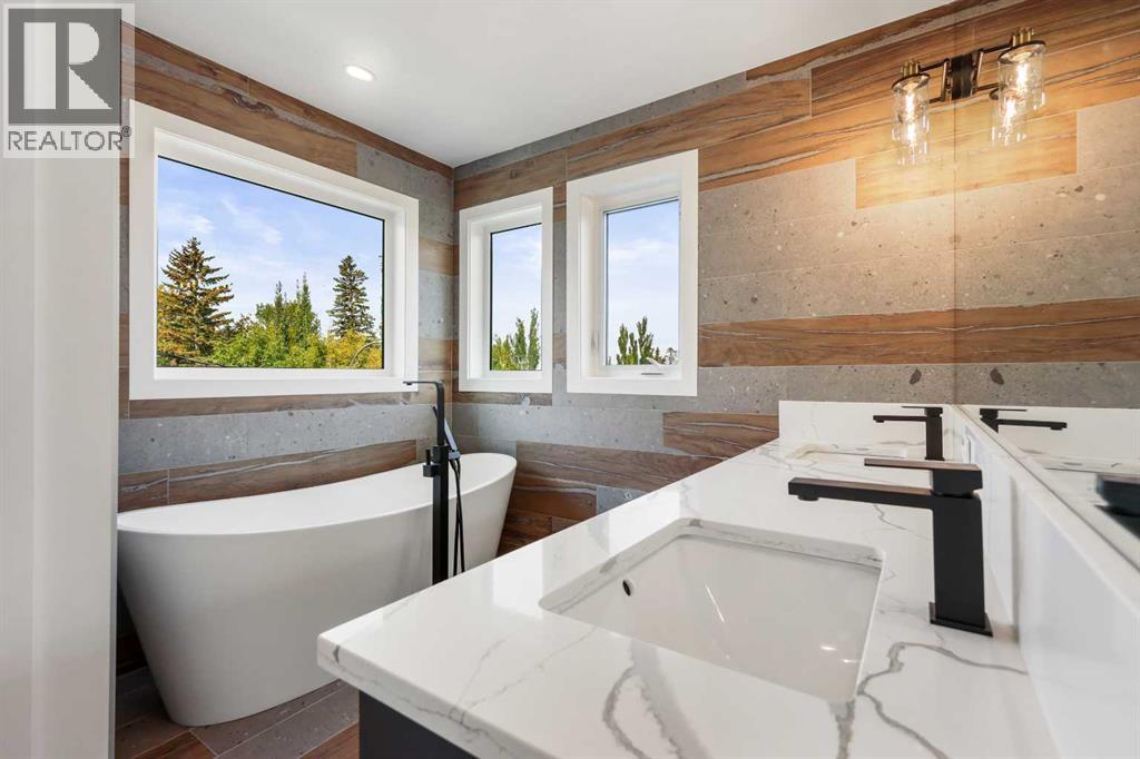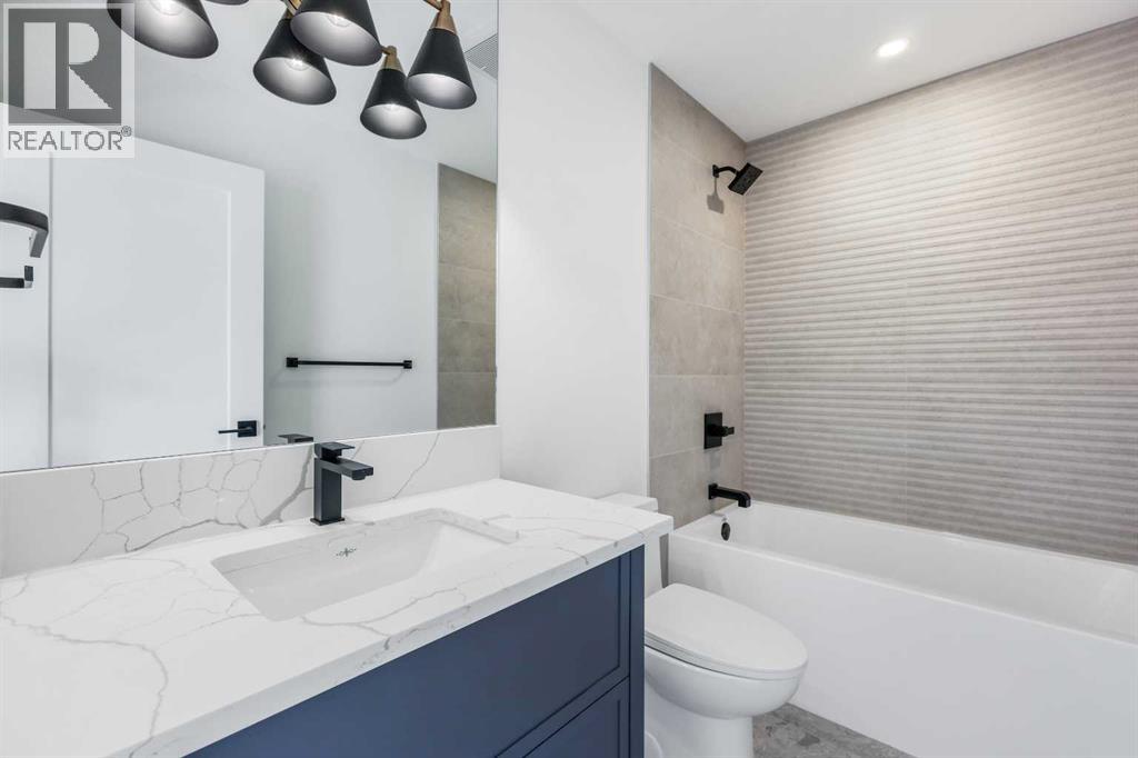 Welcome to 1516 22 Ave SW — a brand-new, luxurious infill offering panoramic Downtown views in the heart of Calgary’s highly sought-after Bankview neighborhood. With 3,465 square feet of meticulously crafted living space, this modern masterpiece boasts 4 spacious bedrooms, 4 designer bathrooms, and a stunning fusion of comfort, style, and sophistication. Step inside to soaring vaulted ceilings accented with rich wood tones, creating a warm and inviting atmosphere. The sun-drenched living room features custom built-ins, a dramatic stone gas fireplace, and expansive bay windows that frame the skyline. A versatile den or home office adds functional flexibility. The chef-inspired kitchen is a standout, equipped with premium GE Café appliances including a wall oven, gas cooktop, and microwave. Elegant quartz countertops, chic blue cabinetry, a generous island, and a handcrafted stone range hood are complemented by a crisp white tile backsplash. A dedicated wine cellar adds a touch of indulgence. The adjacent dining room is ideal for everyday meals or elegant entertaining. Upstairs, the serene primary suite offers a walk-in closet with custom built-ins and a luxurious 5-piece ensuite with a soaker tub, dual sinks, and a glass steam shower. Two additional bedrooms, each with their own walk-in closets, share a stylish 4-piece bathroom. Enjoy sweeping Downtown views from the private second-floor deck. The upper-level laundry room includes a washer, dryer, sink, and ample storage for added convenience. The fully developed walk-out basement is perfect for entertaining or relaxing, featuring a large family room, wet bar, guest bedroom, 3-piece bath, and generous storage. The oversized lot enhances the home’s spacious feel and natural flow. Perfectly positioned near 17th Avenue’s vibrant shops and restaurants, Marda Loop, Mount Royal University, and with easy access to Downtown, this extraordinary residence is more than a home — it’s a statement of modern luxury living. (id:53676)