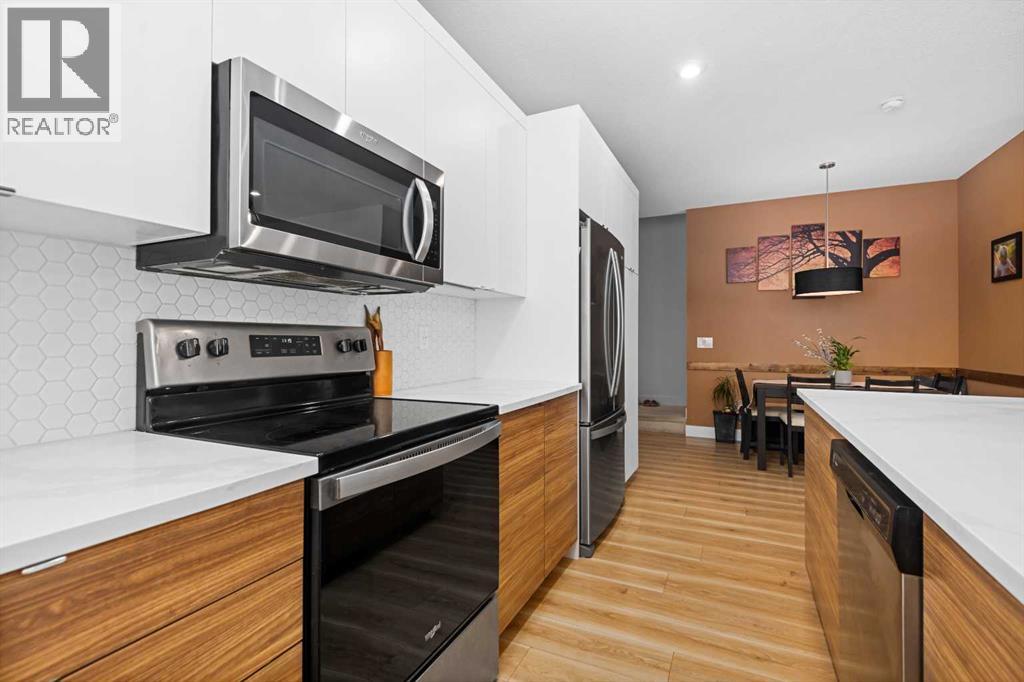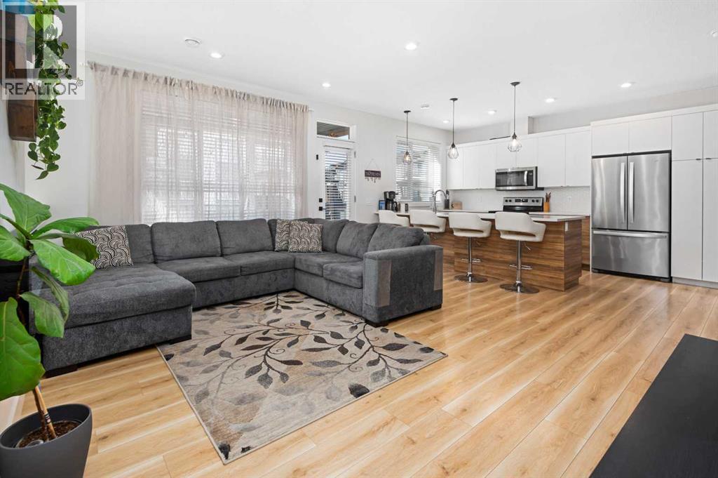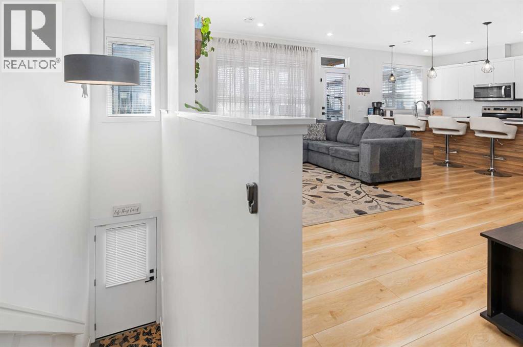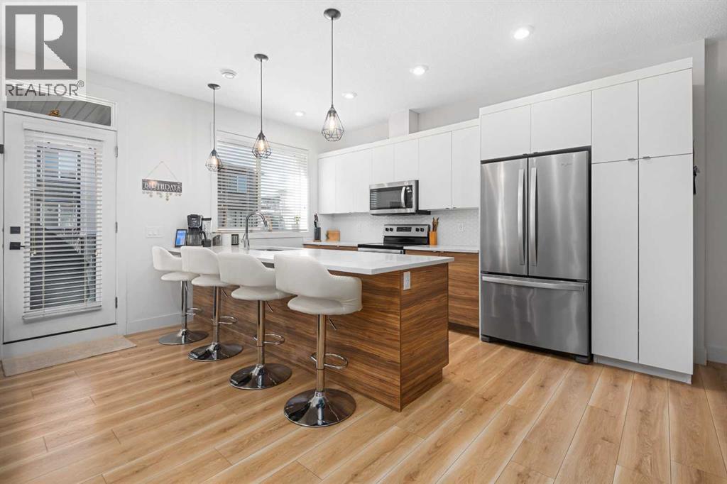 Welcome to your new home in the vibrant community of Saddle Ridge! This beautiful townhouse offers 3 spacious bedrooms, 2.5 bathrooms, and a bright, open-concept layout perfect for modern living.The main floor features a sizable living room that seamlessly flows into the kitchen and dining area — ideal for entertaining. The kitchen is equipped with sleek stainless steel appliances, a long kitchen island with elegant quartz countertops, and a cozy dining nook tucked comfortably in the corner.Upstairs, you'll find three well-sized bedrooms, including a primary suite complete with a walk-in closet and private en-suite bathroom. The additional two bedrooms are generous in size and share a full bathroom. For added convenience, the laundry room is also located upstairs, making laundry days easier and more efficient.Additional features include a single attached garage for your convenience. This home is perfectly situated just a 5-minute drive to the LRT station and major shopping centers, with restaurants just a short 5-minute walk away. Families will appreciate the nearby schools, and nature lovers will enjoy scenic walks around the nearby ponds.Don't miss the opportunity to own this wonderful home in a well-connected, family-friendly neighborhood! (id:53676)