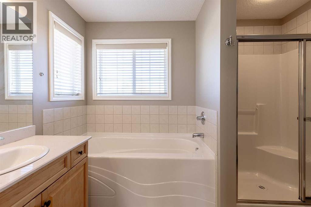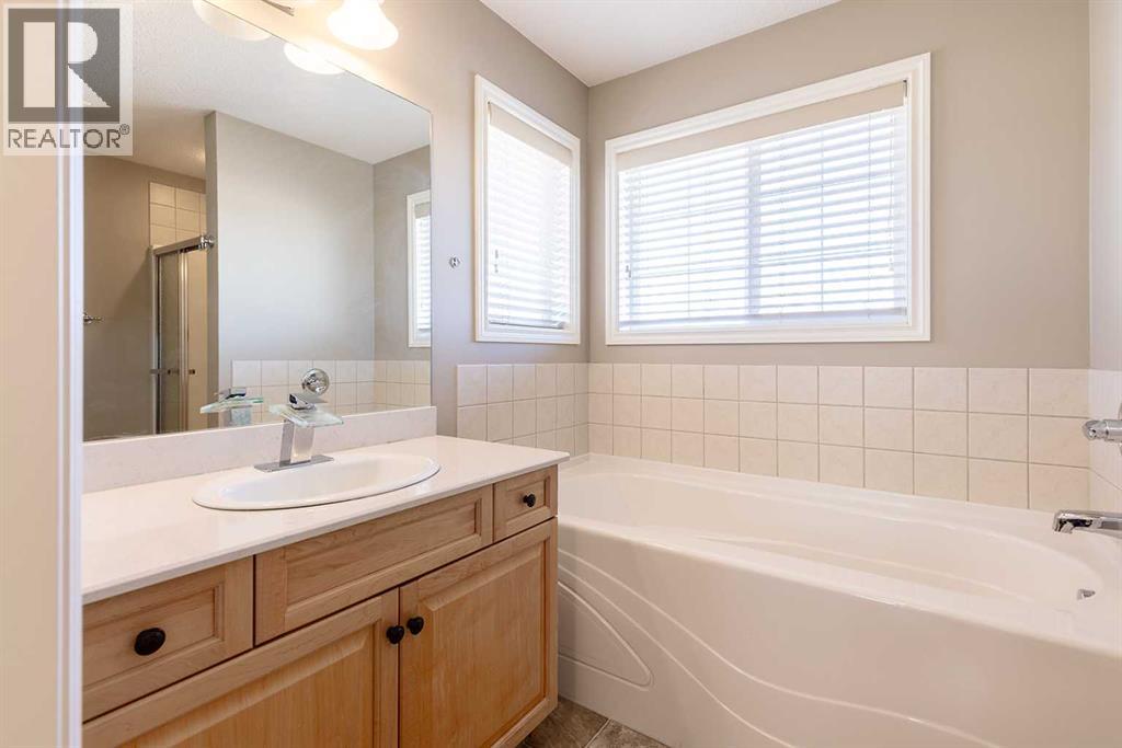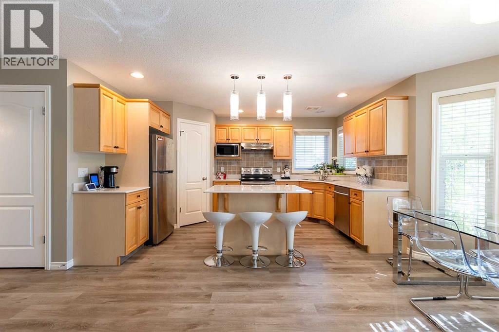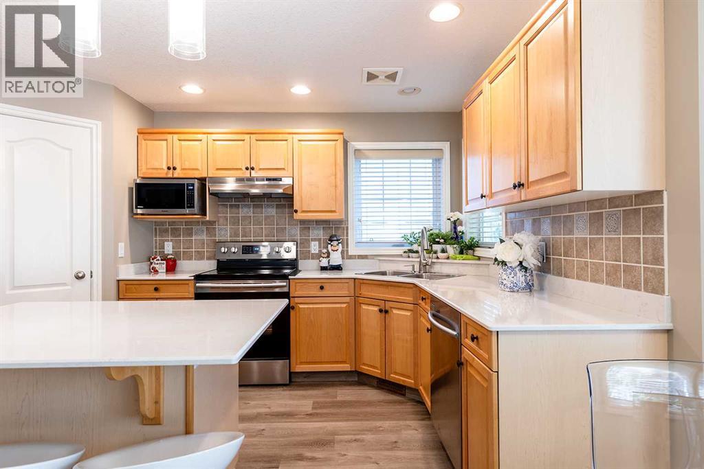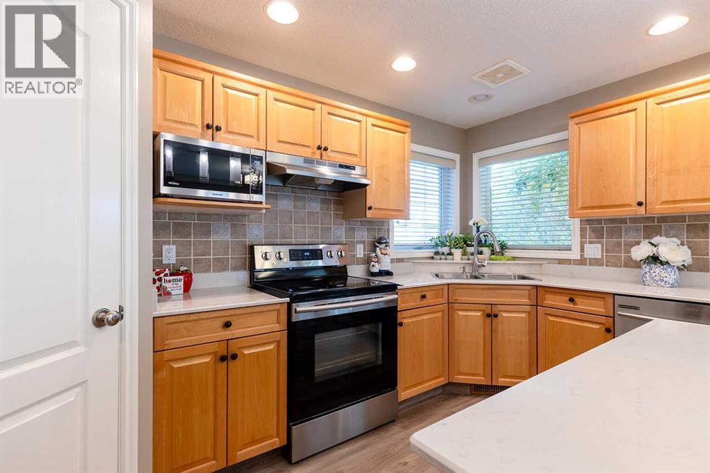 Welcome home to this beautifully updated two-story retreat, perfectly positioned on a quiet street across from a peaceful natural green space. With no neighbours behind — just open acreage views — you’ll love the sense of space, privacy, and connection to nature this property offers in a newer neighbourhood; walkable to a number of schools, pathways and shopping! Step inside and feel immediately at home. Thoughtful updates throughout bring a fresh, modern feel — including quartz countertops (March 2020), appliances updated in 2020 and backsplash in the kitchen and upper baths, new paint, updated flooring, lighting, and more. Every detail has been carefully chosen to create a welcoming modern, move-in-ready home that blends comfort and style. The upper level features three spacious bedrooms, including a spacious primary suite, while the fully developed lower level adds a fourth bedroom and additional living space — perfect for guests, teens, or a home office. With 3.5 bathrooms and a heated attached garage, convenience meets comfort at every turn. Outside, the established yard offers mature trees, shrubs, and landscaping complete with underground sprinklers— ready for your green thumb to make it your own. Shingles replace in 2022. Whether you’re relaxing in the backyard under the covered porch or watching the kids ride their bikes out front, this home invites you to slow down and enjoy the beauty that surrounds you!! (id:53676)