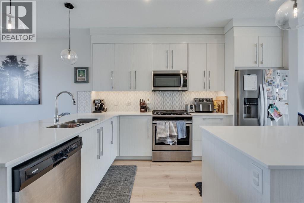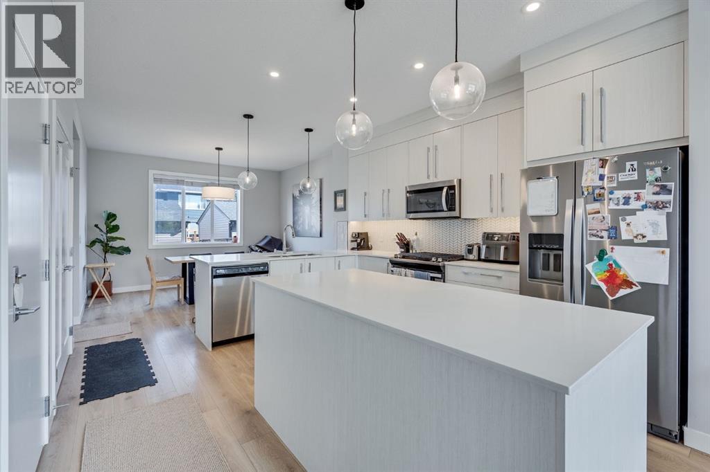 This semi-detached home is purpose-built for strong rental potential in one of Calgary’s fastest-growing SW communities. With a legal secondary suite and double detached garage, it’s a turnkey opportunity to generate dual income streams from Day 1.The main suite offers 3 bedrooms, 2.5 baths, and bright open-concept living with 9’ ceilings, wide-plank vinyl flooring, and quartz countertops. Durable finishes, stainless steel appliances, and a gas stove make it tenant-friendly while still feeling modern and attractive. Upstairs includes a loft, laundry, and private primary ensuite—ideal for long-term family tenants.The lower level is a fully self-contained legal one-bedroom suite with its own side entrance, full kitchen with quartz counters, 4-piece bath, and in-suite laundry. High ceilings and oversized windows make the space feel bright and open, increasing rental appeal.Creekstone is one of Calgarys newest communities with close proximity to schools, shopping, South Calgary Health Campus (Calgary’s newest hospital), and major roadways all nearby—ensuring strong tenant demand.With two rentable units, a fenced yard, and low-maintenance finishes throughout, this property is a smart addition to any portfolio. (id:53676)