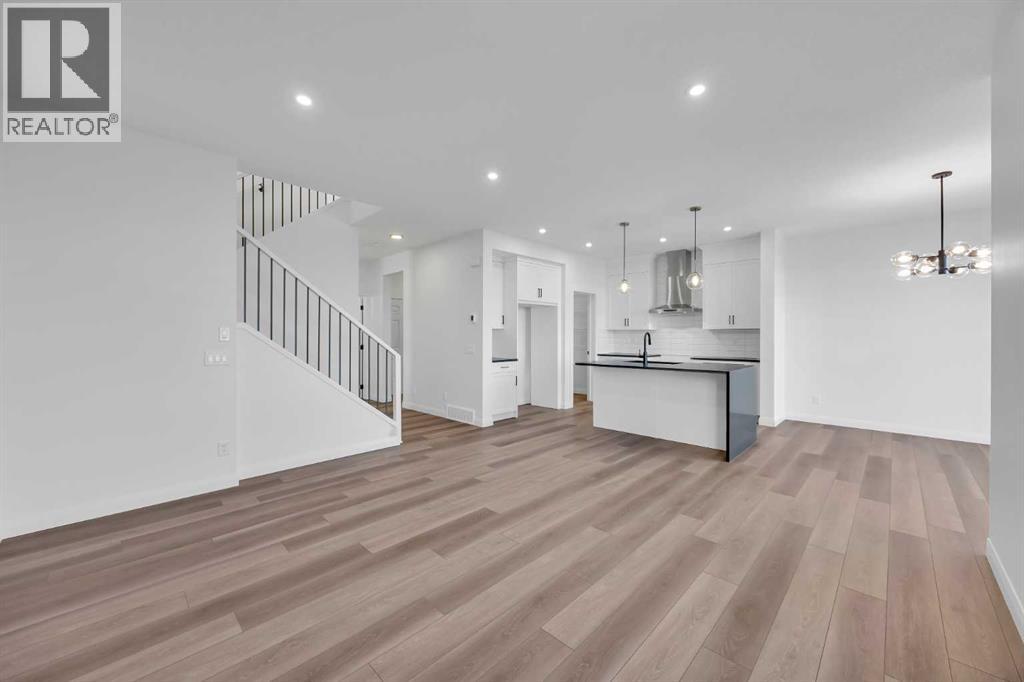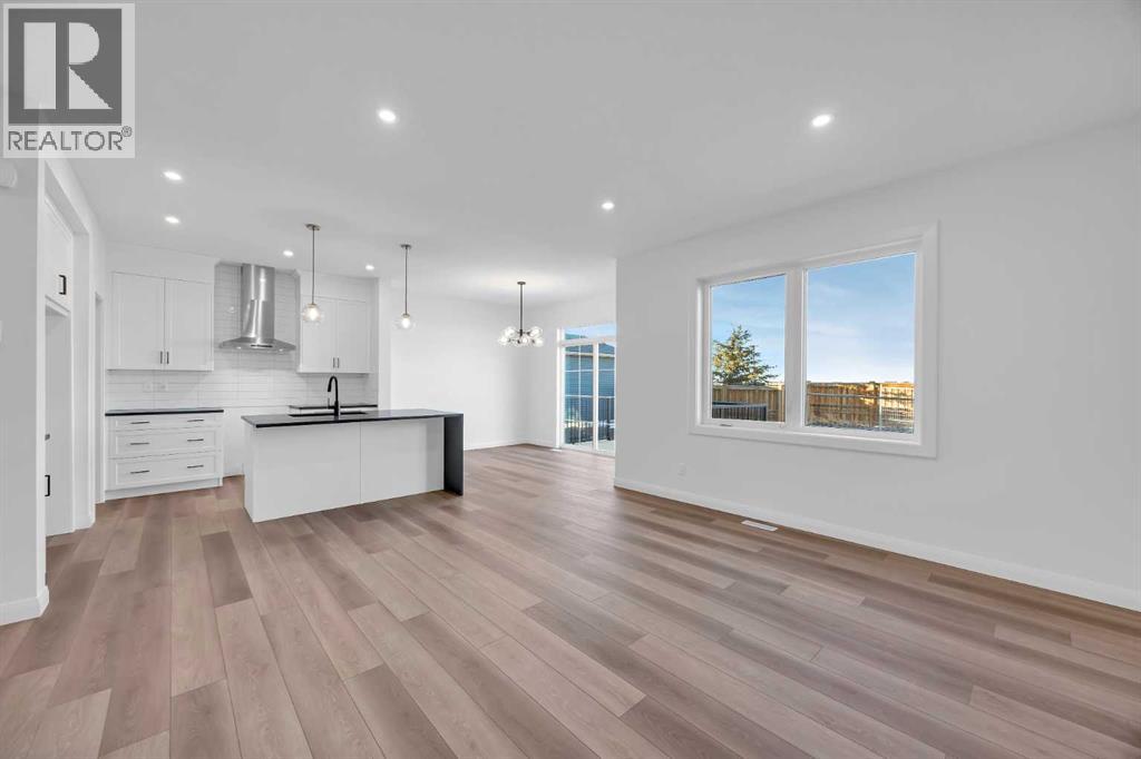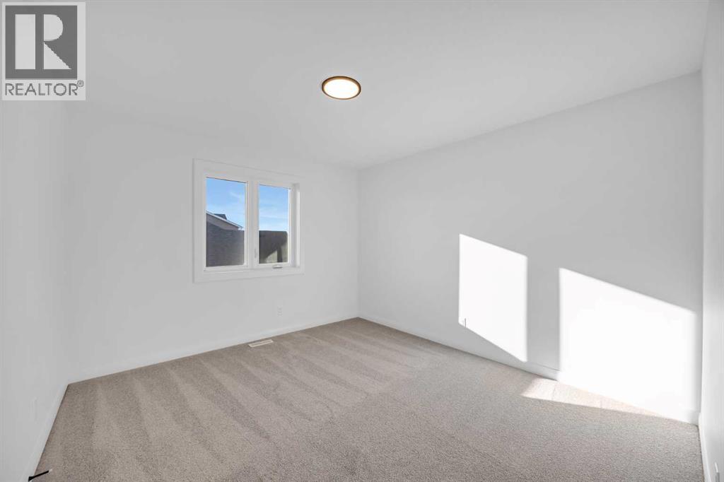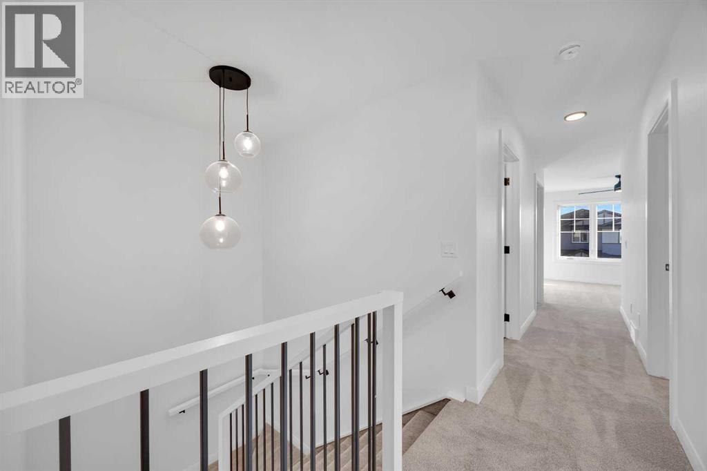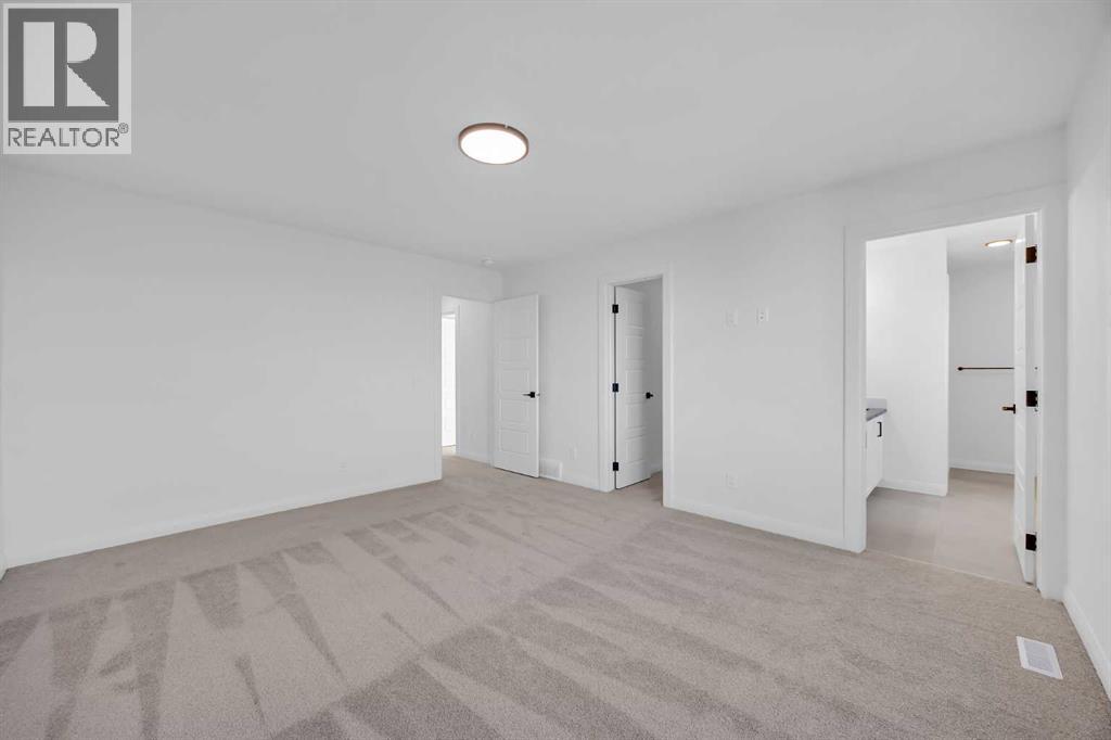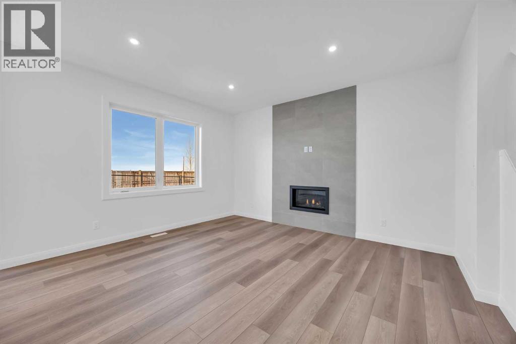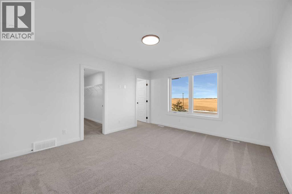 Welcome to the Merritt II by Broadview Homes in Painted Sky, Langdon, offering a well designed layout with 3 bedrooms, a spacious front bonus room, and a rare triple attached garage. This brand new home features a bright open concept main floor and modern finishes throughout, creating a comfortable and functional space with the added benefit of exceptional garage capacity for vehicles, storage, or hobby use. The main level is centered around the open kitchen, dining nook, and great room. The kitchen features an island with a waterfall countertop and a stainless steel appliance package including a gas range, dishwasher, fridge, hood fan, and built in microwave. A walk through pantry connects the kitchen directly to the mudroom, creating a practical transition from the garage and additional storage space. The mudroom itself is designed with everyday convenience in mind and includes two closets to help keep the space organized. The great room is anchored by a gas fireplace finished with floor to ceiling tile, creating a strong architectural focal point and adding warmth to the living space. Large rear windows bring natural light into the home while the open layout allows the kitchen, dining area, and living space to flow comfortably together. Railing details are featured along the stairway and on the main floor, adding a clean and modern design element. Upstairs, the primary bedroom is positioned at the back of the home and features a spacious walk in closet and a well appointed 5 piece ensuite with double vanities, a soaker tub, and a fully tiled walk in shower. Two additional bedrooms are located on the upper level along with a large front bonus room that offers flexible space for a media area, lounge, or home workspace. A spacious laundry room with linen shelving provides added storage and everyday convenience. The unfinished basement offers excellent potential for future development, allowing the new owners to expand the living space to suit their needs. Located in Painted Sky, residents enjoy access to parks, pathways, playgrounds, and walking distance to Langdon School and Horseshoe Crossing High School. Just 20 minutes east of Calgary and 15 minutes to Chestermere, this community offers small town living with convenient commuter access. (id:53676)