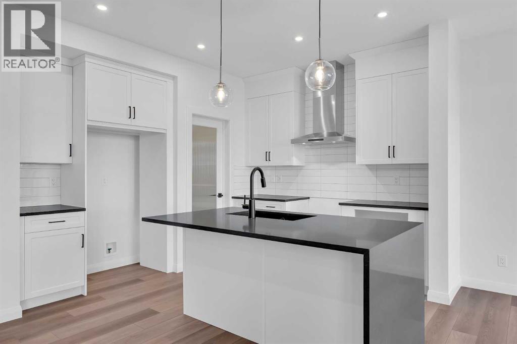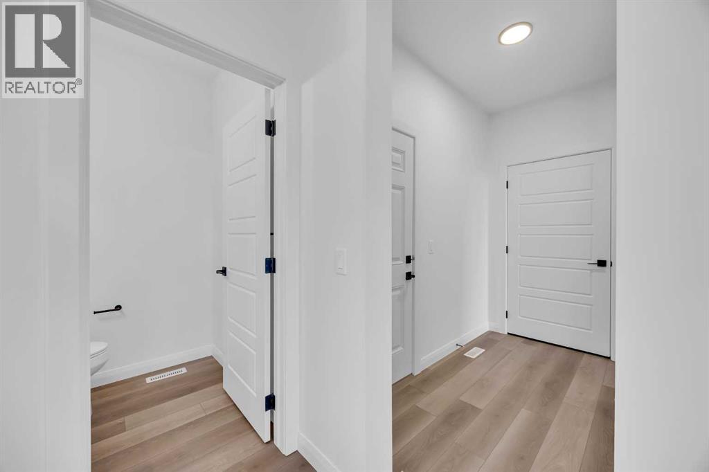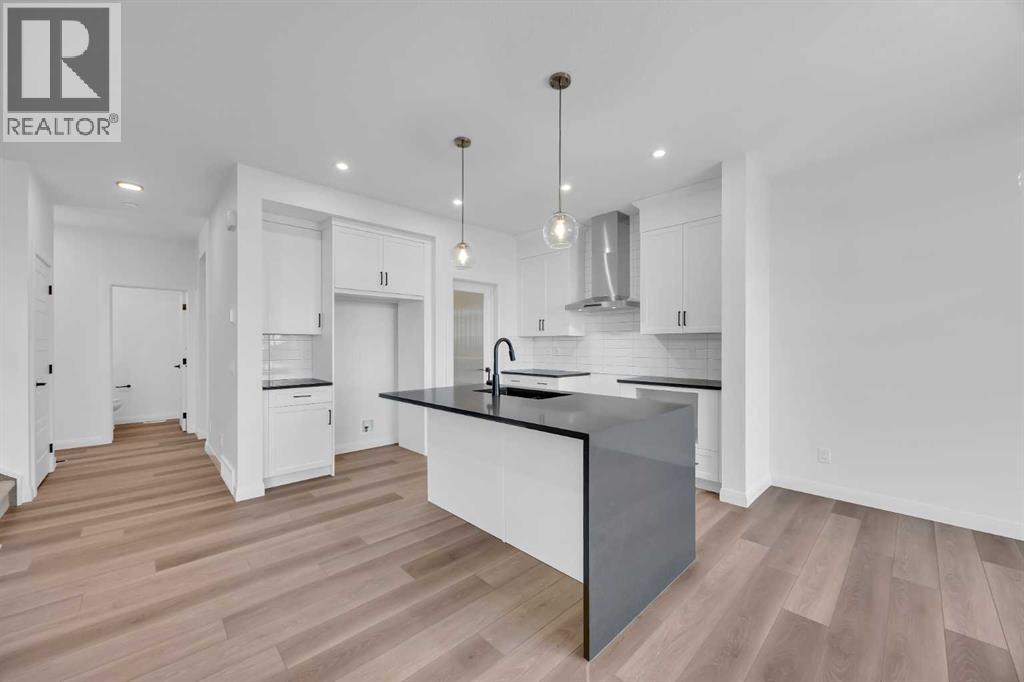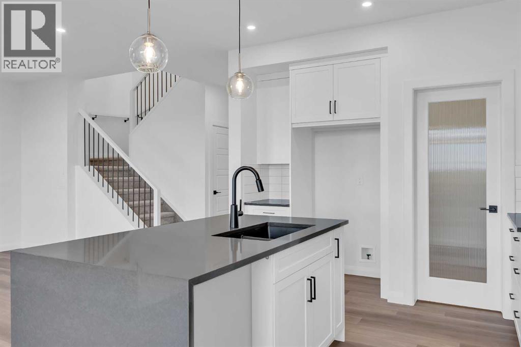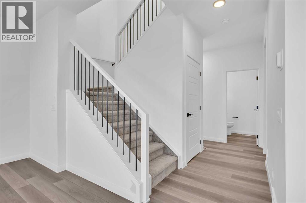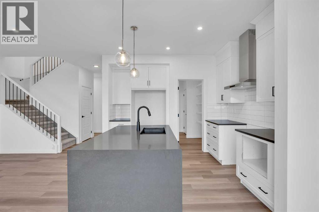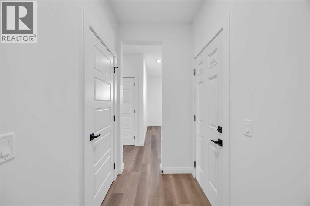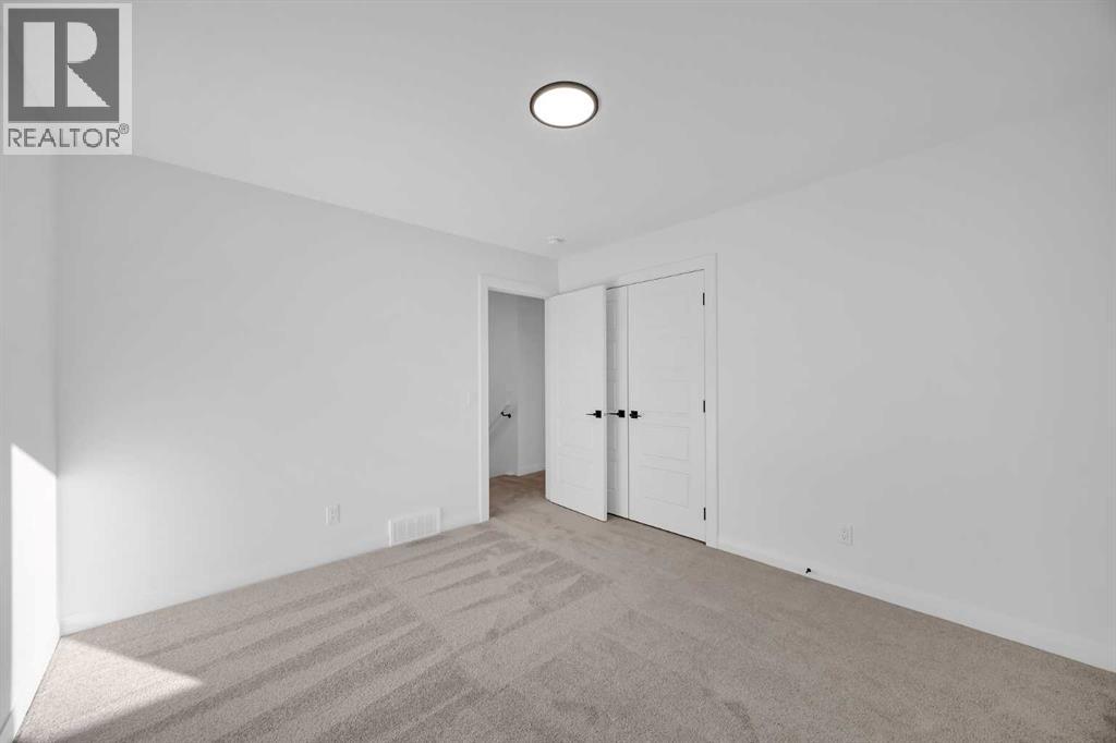 Welcome to the Merritt II by Broadview Homes in Painted Sky, Langdon, offering a well designed layout with 3 bedrooms, a spacious front bonus room, and a rare triple attached garage. This brand new home features a bright open concept main floor and modern finishes throughout, creating a comfortable and functional space with the added benefit of exceptional garage capacity for vehicles, storage, or hobby use. The main level is centered around the open kitchen, dining nook, and great room. The kitchen features an island with a waterfall countertop and a stainless steel appliance package including a gas range, dishwasher, fridge, hood fan, and built in microwave. A walk through pantry connects the kitchen directly to the mudroom, creating a practical transition from the garage and additional storage space. The mudroom itself is designed with everyday convenience in mind and includes two closets to help keep the space organized. The great room is anchored by a gas fireplace finished with floor to ceiling tile, creating a strong architectural focal point and adding warmth to the living space. Large rear windows bring natural light into the home while the open layout allows the kitchen, dining area, and living space to flow comfortably together. Railing details are featured along the stairway and on the main floor, adding a clean and modern design element. Upstairs, the primary bedroom is positioned at the back of the home and features a spacious walk in closet and a well appointed 5 piece ensuite with double vanities, a soaker tub, and a fully tiled walk in shower. Two additional bedrooms are located on the upper level along with a large front bonus room that offers flexible space for a media area, lounge, or home workspace. A spacious laundry room with linen shelving provides added storage and everyday convenience. The unfinished basement offers excellent potential for future development, allowing the new owners to expand the living space to suit their needs. Located in Painted Sky, residents enjoy access to parks, pathways, playgrounds, and walking distance to Langdon School and Horseshoe Crossing High School. Just 20 minutes east of Calgary and 15 minutes to Chestermere, this community offers small town living with convenient commuter access. (id:53676)