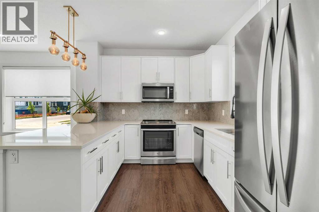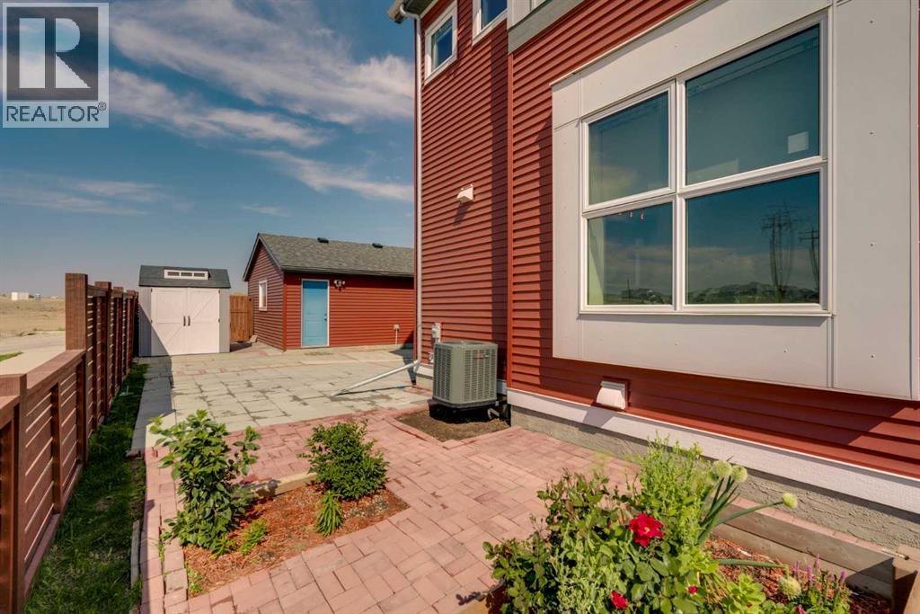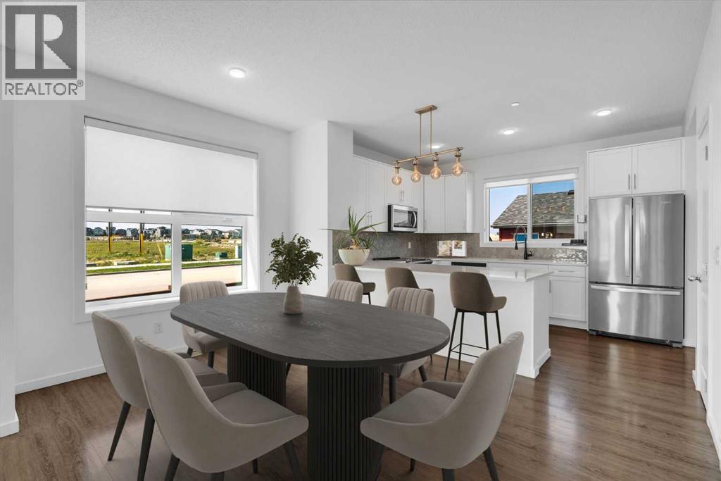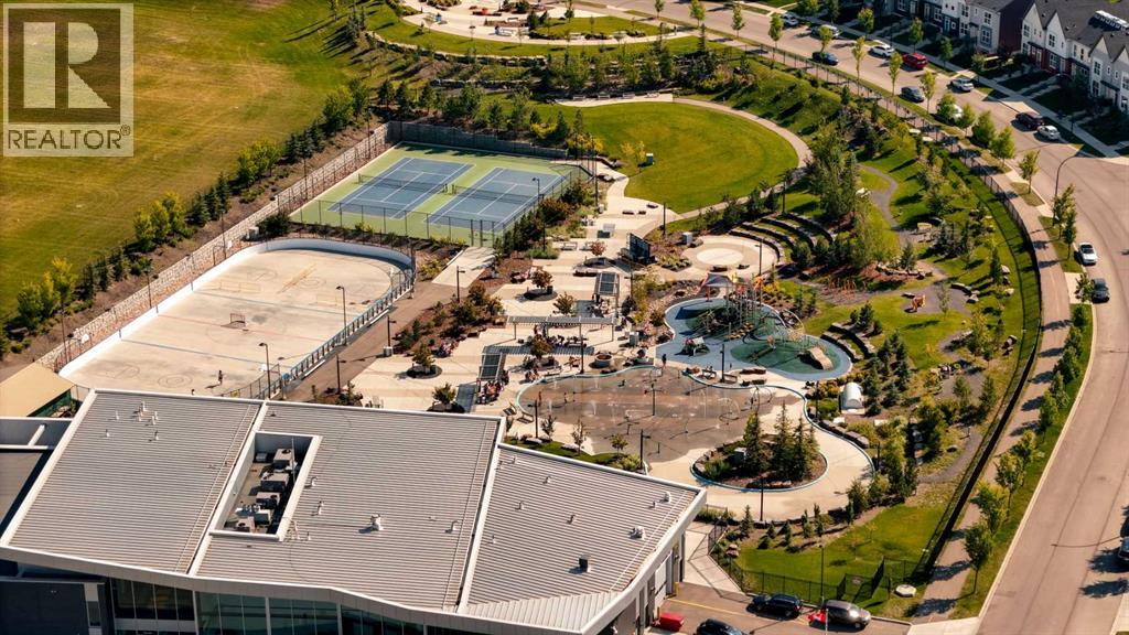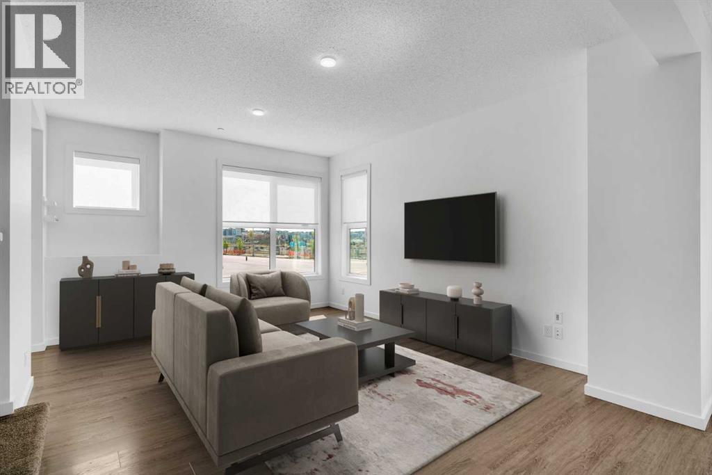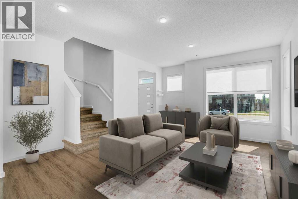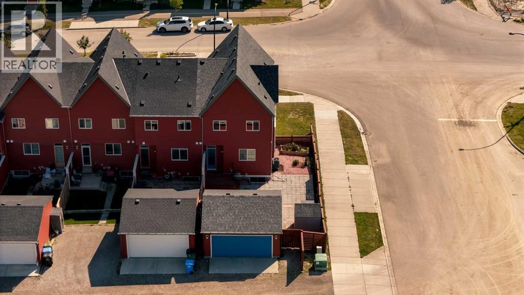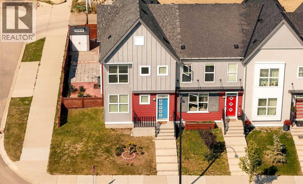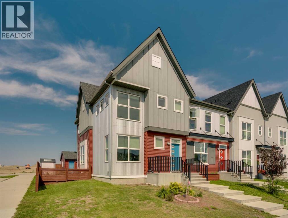 END-UNIT 4-BED TOWNHOME ON A CORNER LOT W/ FINISHED BSMT, DBL GARAGE & NO CONDO FEES IN LIVINGSTON! Welcome to 156 Livingston View NE — a rare end-unit townhouse on one of the largest lots on this street, just steps from the Livingston Hub! Featuring a giant low-maintenance backyard, double garage, and fully finished basement, this home offers more leg room in every way — more living space, more yard space, and more parking space. Plus, no condo fees, air-conditioning & over 2000+ SQFT of developed living space provide you with unbeatable value! Step inside and you’re greeted by a bright foyer with storage and sightlines into the open-concept main floor. The living room sits at the front of the home, filled with natural light from oversized South-facing windows. At the centre of the main floor, the dining area offers plenty of space for family dinners or hosting friends. Further in, the kitchen impresses with Quartz countertops, stainless steel appliances, shaker-style cabinetry, and a unique herringbone backsplash for that extra warmth — plus a window over the sink to look out at your backyard. A rear mudroom opens onto a back deck & a fenced yard, low-maintenance stone patio, garden beds, and plenty of room for those summer BBQs. Back inside, a 2pc powder room for guests completes this level. Upstairs, the primary suite comes with its' own set of perks including a walk-in closet and a 3-piece ensuite featuring a glass shower. Two additional bedrooms and a full 4-piece bath are down the hall, along with the convenience of upstairs laundry. The fully finished basement adds incredible flexibility. A large rec room is perfect for movie nights, a home gym, or a play area. There’s also a 4th bedroom and another full bathroom — ideal for guests, older kids, or a private home office. Outside, this property sits on a massive corner lot, with a backyard space most townhomes can’t match — plus a double detached garage adds secure parking and extra storage. Down the block, y ou'll find the Livingston View Pond & Livingston Hub - one of Calgary’s premier community hubs. The 35,000 sq ft recreation centre is exclusive to Livingston residents, featuring outdoor rinks, splash park, tennis courts, gym, amphitheatre, daycare spaces, banquet facilities, summer camps and more. Access to the rest of the city is easy with several nearby major roadways including Stoney Trail, Harvest Hills Blvd, & Deerfoot Trail. Jumping in the car: Downtown is a 22 min drive (25.7KM), Airport is a 12 min drive (14.7KM), & Banff is a 1hr 20 min drive (132KM). (id:53676)