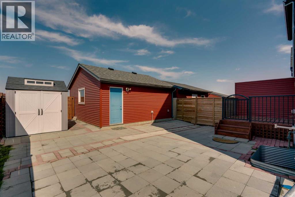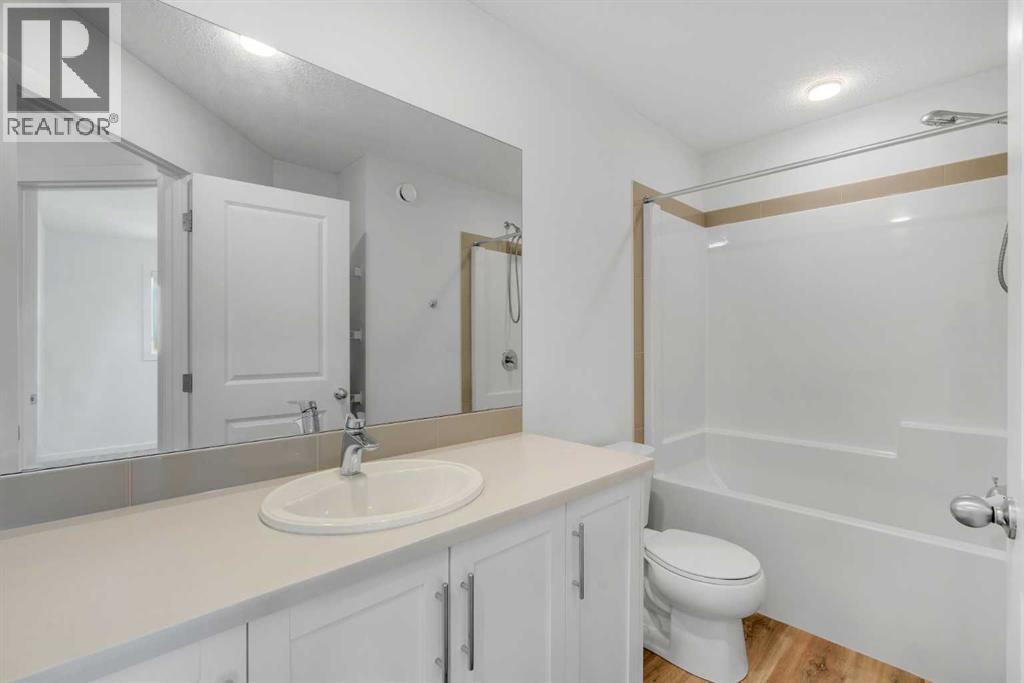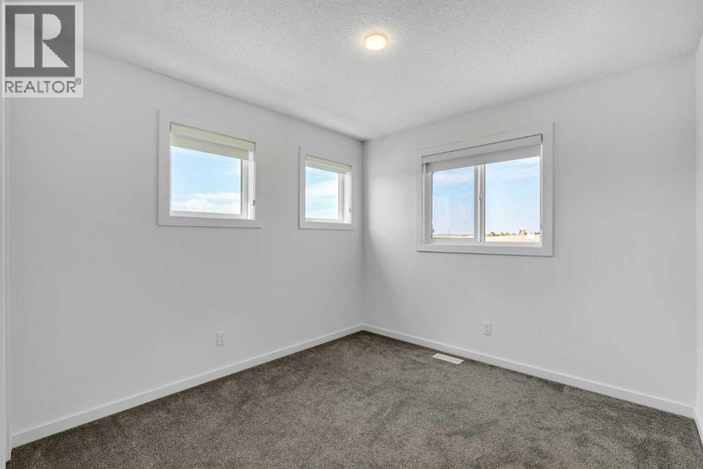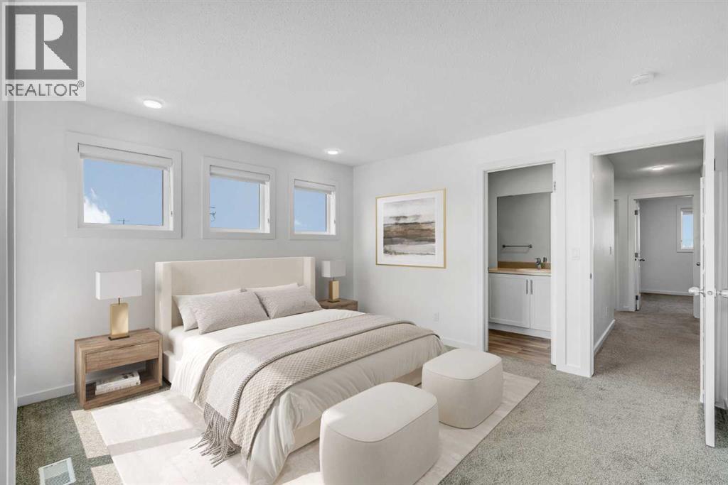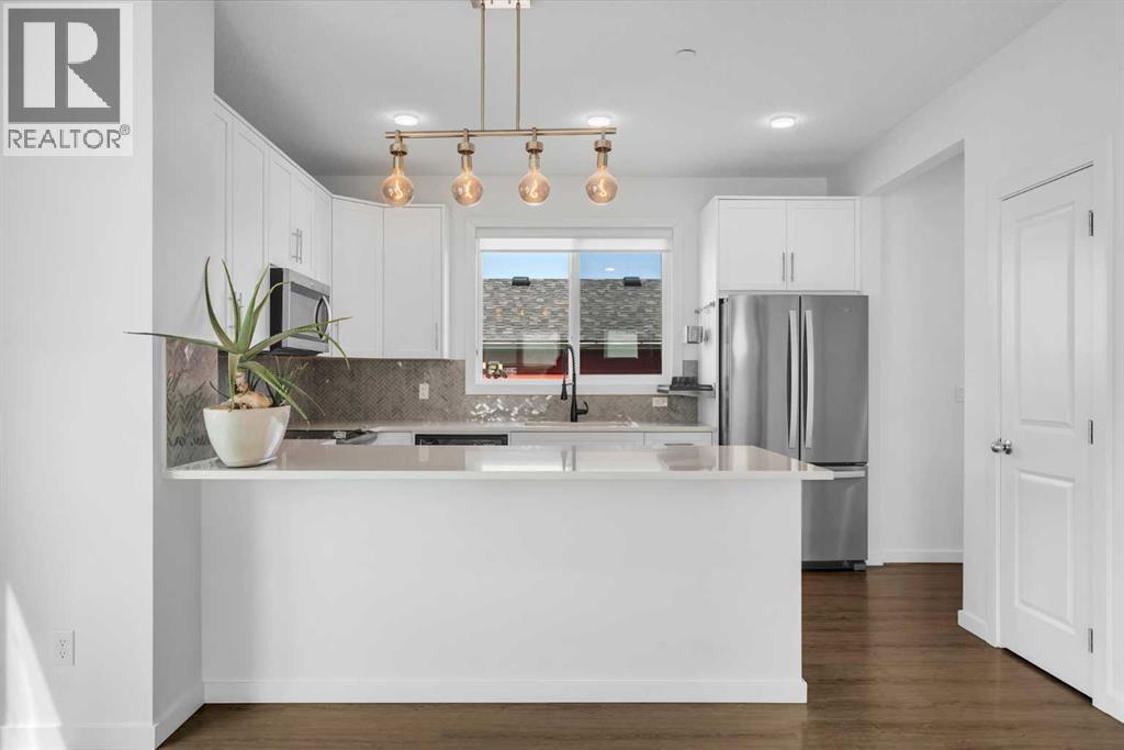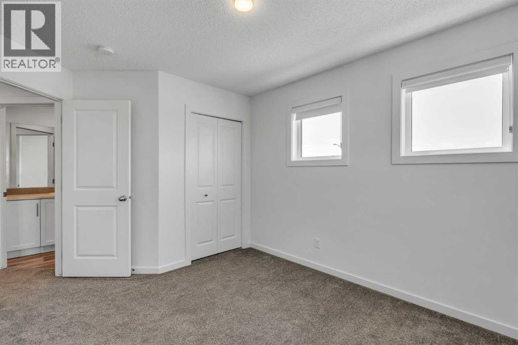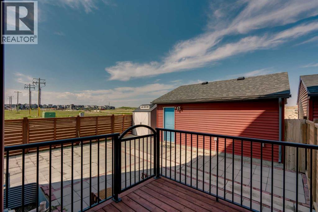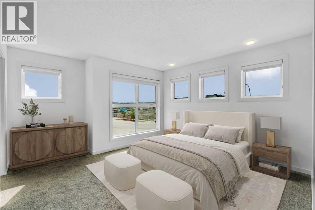END-UNIT 4-BED TOWNHOME ON A CORNER LOT W/ FINISHED BSMT, DBL GARAGE & NO CONDO FEES IN LIVINGSTON! Welcome to 156 Livingston View NE — a rare end-unit townhouse on one of the largest lots on this street, just steps from the Livingston Hub! Featuring a giant low-maintenance backyard, double garage, and fully finished basement, this home offers more leg room in every way — more living space, more yard space, and more parking space. Plus, no condo fees, air-conditioning & over 2000+ SQFT of developed living space provide you with unbeatable value! Step inside and you’re greeted by a bright foyer with storage and sightlines into the open-concept main floor. The living room sits at the front of the home, filled with natural light from oversized South-facing windows. At the centre of the main floor, the dining area offers plenty of space for family dinners or hosting friends. Further in, the kitchen impresses with Quartz countertops, stainless steel appliances, shaker-style cabinetry, and a unique herringbone backsplash for that extra warmth — plus a window over the sink to look out at your backyard. A rear mudroom opens onto a back deck & a fenced yard, low-maintenance stone patio, garden beds, and plenty of room for those summer BBQs. Back inside, a 2pc powder room for guests completes this level. Upstairs, the primary suite comes with its' own set of perks including a walk-in closet and a 3-piece ensuite featuring a glass shower. Two additional bedrooms and a full 4-piece bath are down the hall, along with the convenience of upstairs laundry. The fully finished basement adds incredible flexibility. A large rec room is perfect for movie nights, a home gym, or a play area. There’s also a 4th bedroom and another full bathroom — ideal for guests, older kids, or a private home office. Outside, this property sits on a massive corner lot, with a backyard space most townhomes can’t match — plus a double detached garage adds secure parking and extra storage. Down the block, y ou'll find the Livingston View Pond & Livingston Hub - one of Calgary’s premier community hubs. The 35,000 sq ft recreation centre is exclusive to Livingston residents, featuring outdoor rinks, splash park, tennis courts, gym, amphitheatre, daycare spaces, banquet facilities, summer camps and more. Access to the rest of the city is easy with several nearby major roadways including Stoney Trail, Harvest Hills Blvd, & Deerfoot Trail. Jumping in the car: Downtown is a 22 min drive (25.7KM), Airport is a 12 min drive (14.7KM), & Banff is a 1hr 20 min drive (132KM). (id:53676)