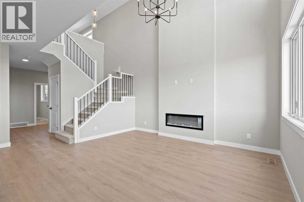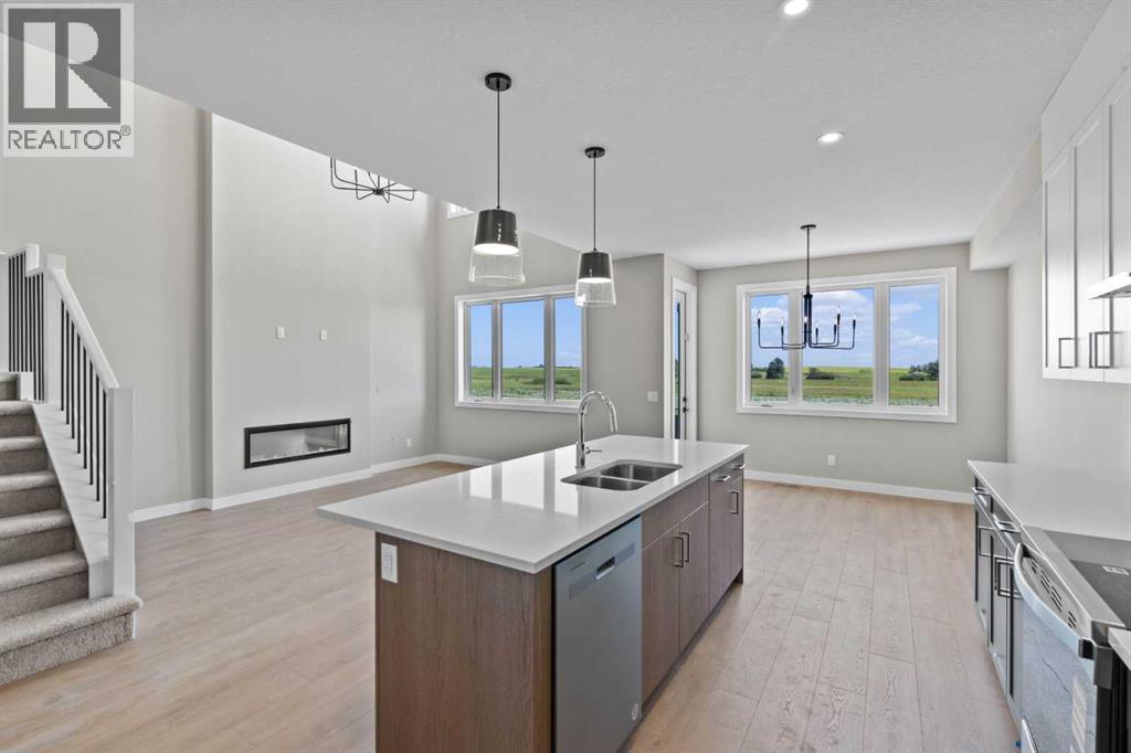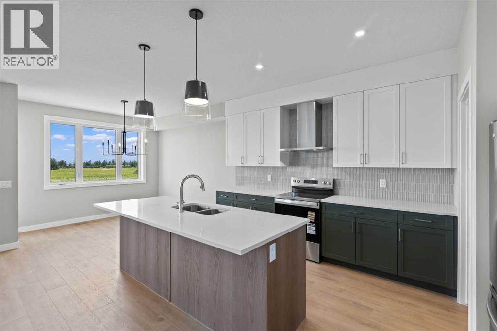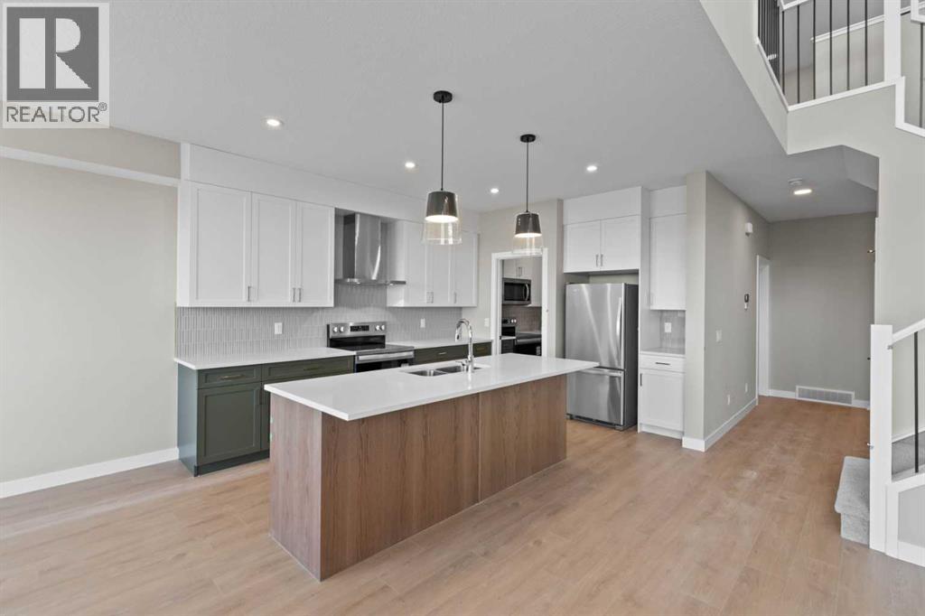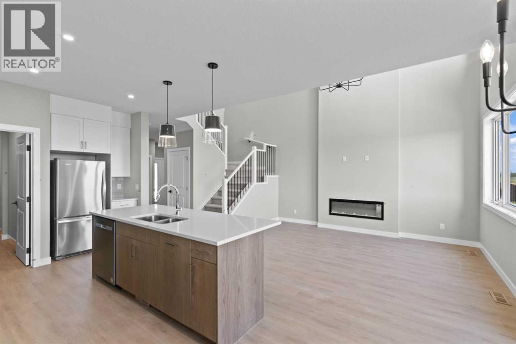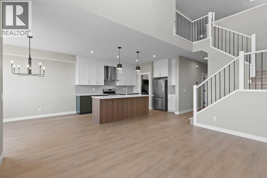 IMMEDIATE POSSESSION | 2,277 SQ.FT. | 5-BED | 3-BATH | MAIN FLOOR BED + BATH | OPEN TO ABOVE | SPICE KITCHEN | SEPARATE SIDE ENTRANCE | DECK | FRONT LANDSCAPING | HARDIE BOARD SIDING | This stunning home by Crystal Creek Homes BACKS ONTO GREENSPACE and is designed for everyday family life. The MAIN FLOOR has a BEDROOM and FULL BATH, perfect for grandparents or anyone who prefers to avoid stairs. Or use it as a home office. The standout kitchen features full-height cabinetry, quartz counters, and a SPICE KITCHEN to keep fragrant cooking contained. An open-to-above great room with large windows fills the space with light, and the dining area opens onto a rear deck that’s perfect for summer barbecues and morning coffee. Upstairs there are four bedrooms, including a spacious primary suite, a bonus room, a 5-piece bathroom, and convenient laundry. The 9' BASEMENT and separate SIDE ENTRANCE provides future suite potential (subject to approval and permitting by the City). Hardie board siding adds durability, and a full builder warranty is included for peace of mind. Belvedere offers quick access to Stoney Trail, East Hills shopping, and future parks and schools. Book your showing today! (id:53676)