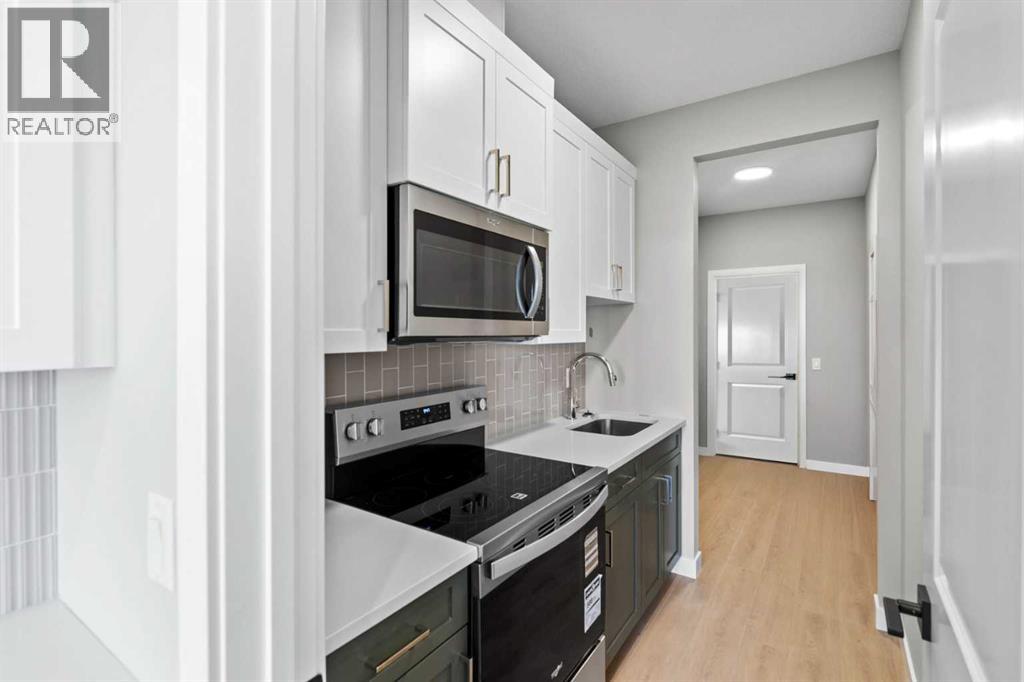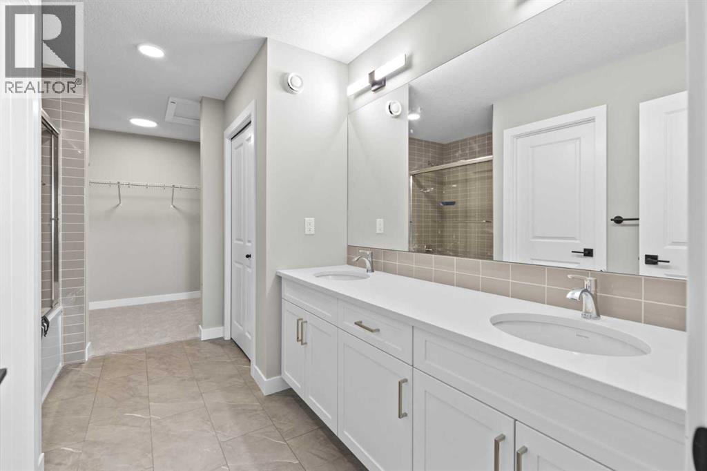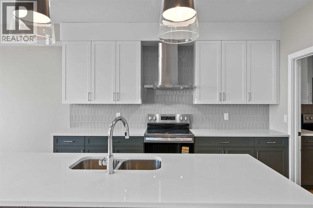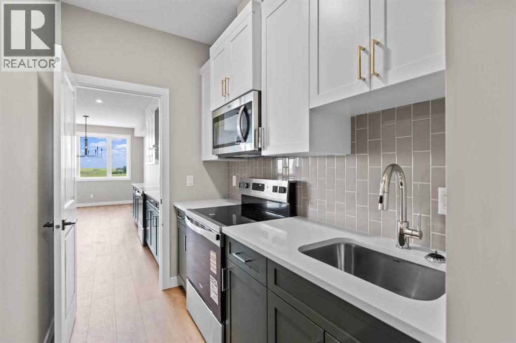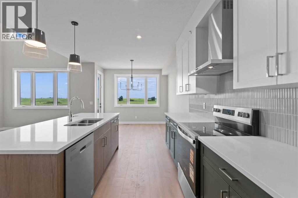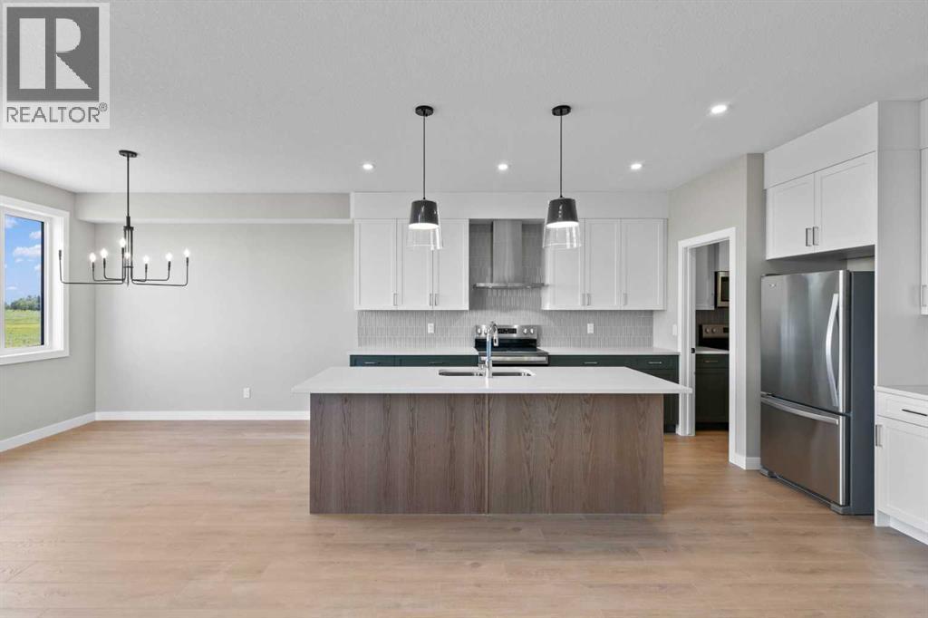 IMMEDIATE POSSESSION | 2,277 SQ.FT. | 5-BED | 3-BATH | MAIN FLOOR BED + BATH | OPEN TO ABOVE | SPICE KITCHEN | SEPARATE SIDE ENTRANCE | DECK | FRONT LANDSCAPING | HARDIE BOARD SIDING | This stunning home by Crystal Creek Homes BACKS ONTO GREENSPACE and is designed for everyday family life. The MAIN FLOOR has a BEDROOM and FULL BATH, perfect for grandparents or anyone who prefers to avoid stairs. Or use it as a home office. The standout kitchen features full-height cabinetry, quartz counters, and a SPICE KITCHEN to keep fragrant cooking contained. An open-to-above great room with large windows fills the space with light, and the dining area opens onto a rear deck that’s perfect for summer barbecues and morning coffee. Upstairs there are four bedrooms, including a spacious primary suite, a bonus room, a 5-piece bathroom, and convenient laundry. The 9' BASEMENT and separate SIDE ENTRANCE provides future suite potential (subject to approval and permitting by the City). Hardie board siding adds durability, and a full builder warranty is included for peace of mind. Belvedere offers quick access to Stoney Trail, East Hills shopping, and future parks and schools. Book your showing today! (id:53676)
