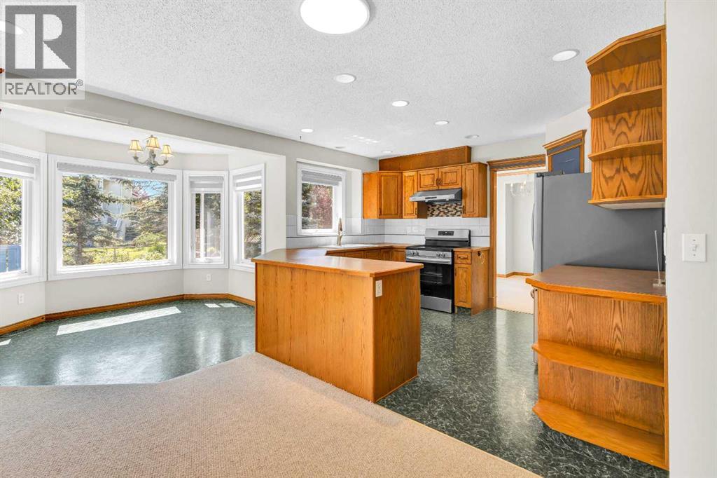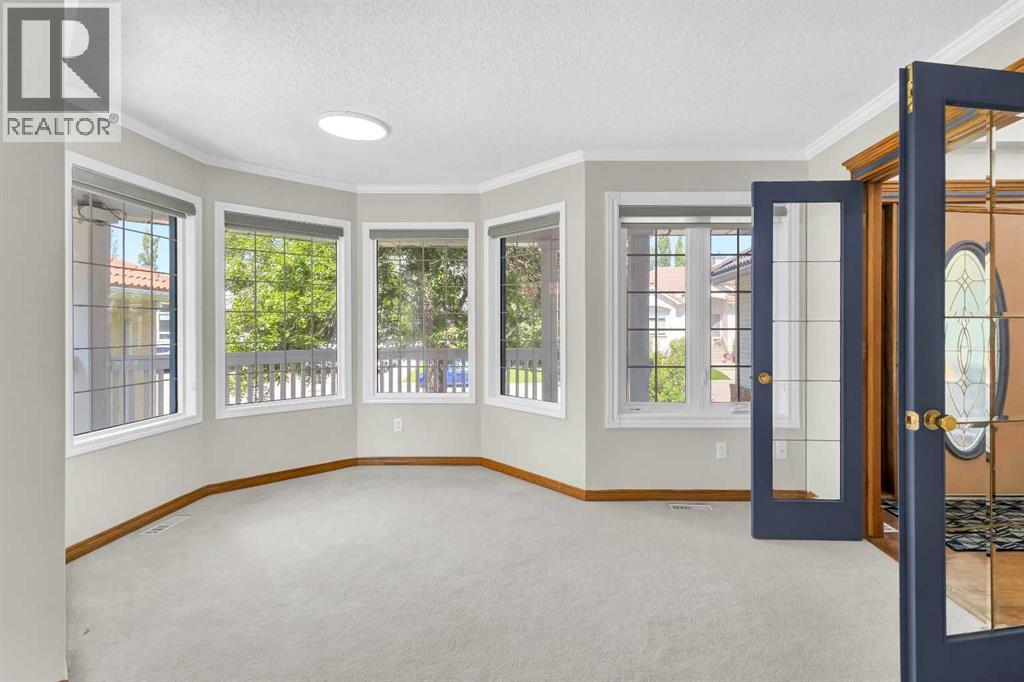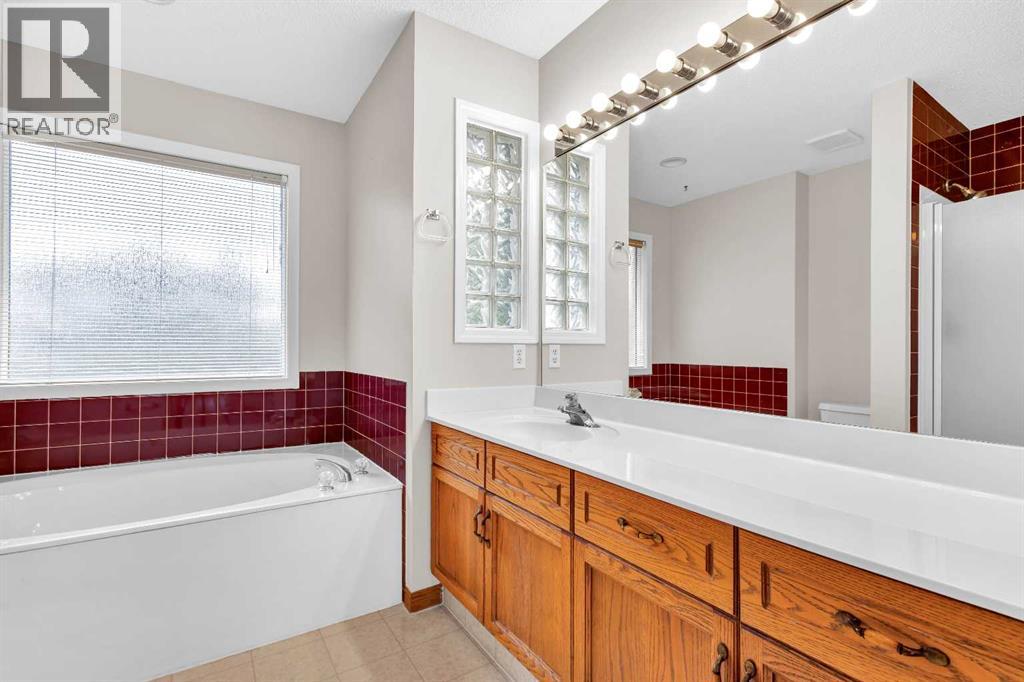 Welcome to Hamptons – where timeless charm meets family comfort.Tucked into a peaceful cul-de-sac and backing onto landscaped green space, this home offers over 3,000 sqft of total living area. As you step through the front door, the freshly painted main and upper floors invite you into a formal living and dining area, bathed in sunlight. Whether it's a family gathering in the bright breakfast nook or cozy evenings by the gas fireplace in the family room, the main level offers space to connect and unwind.The kitchen features stainless steel appliances, a walk-in pantry, and a brand new stove (2025)—perfect for everyday cooking or weekend hosting. Upstairs, you’ll find a spacious den, two generous bedrooms, and a large primary retreat complete with jetted tub, dual sinks, and walk-in closet.The bright basement includes a full bathroom, flexible rec room, and plenty of space for home gym, ping pong, or your next media setup. Notable upgrades include a concrete tile roof (2014), a Garage door (2017) and numerous window replacements (2020) to ensure peace of mind for years to come.Enjoy walking distance to top-ranked schools like Tom Baines & Sir Winston Churchill High, plus quick access to Stoney Trail, Costco, and local parks.This home blends warmth, functionality, and location—your next chapter begins in Hamptons. (id:53676)