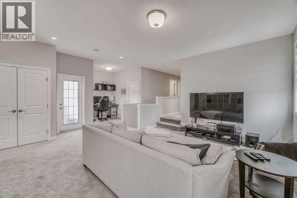 BACKING ONTO POND | GREEN SPACE & PLAYGROUND | OVER 3,000 SQ FT | FULLY FINISHED BASEMENT WITH BIG WINDOW | AUBURN BAY LAKE COMMUNITYWelcome to this beautifully appointed 4-bedroom home offering over 3,000 sq ft of total developed living space, ideally located on a quiet, family-friendly street in the highly sought-after lake community of Auburn Bay. Perfectly positioned backing directly onto green space, playground, and scenic walking paths, this home offers a rare blend of privacy, open views, and everyday convenience—just minutes to schools, shopping, and all essential amenities. The main floor features a bright, open-concept layout filled with natural light from oversized windows framing peaceful pond views. At the heart of the home is a chef-inspired kitchen showcasing maple hardwood cabinetry, quartz countertops, stainless steel appliances, and a gas range. A large central island anchors the space—perfect for entertaining—seamlessly connecting the dining area and inviting living room. Step outside onto the rear deck to enjoy tranquil water views, direct pathway access, and even seasonal community fireworks reflecting over the pond—an exceptional outdoor lifestyle right in your backyard. Upstairs, a spacious bonus room with soaring ceilings offers the perfect setting for family movie nights or relaxation. A private upper deck extends directly from the bonus room, offering an elevated outdoor space to relax and enjoy the surrounding views. The generous primary retreat features a walk-in closet and a luxurious 5-piece ensuite complete with dual vanities, a deep soaker tub, and a separate shower. Two additional bedrooms and a full bathroom complete the upper level. The fully developed basement extends the living space with a large recreation room featuring oversized windows, a stylish wet bar equipped with dishwasher, wine cooler, and hood fan, plus a guest bedroom, full bathroom, and a versatile flex space ideal for a home office, gym, or playroom. Additional hi ghlights include an oversized double attached garage and the rare advantage of backing directly onto expansive green space—offering both privacy and uninterrupted views. Located within close proximity to both Catholic and public schools, parks, pathways, and Auburn Bay’s exclusive lake amenities, this home presents an exceptional opportunity for families and investors alike. (id:53676)