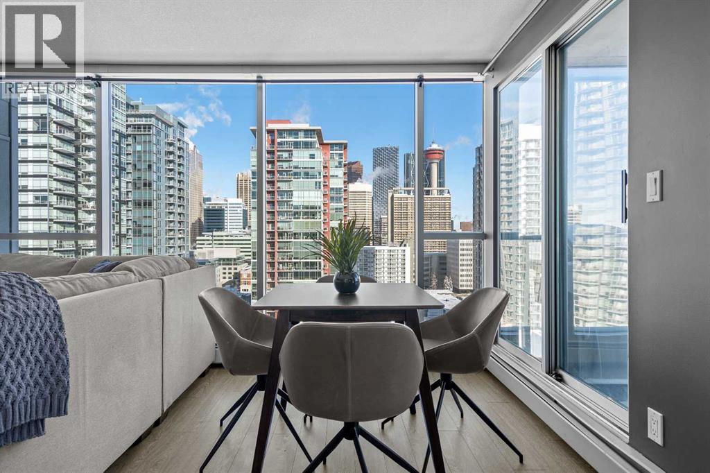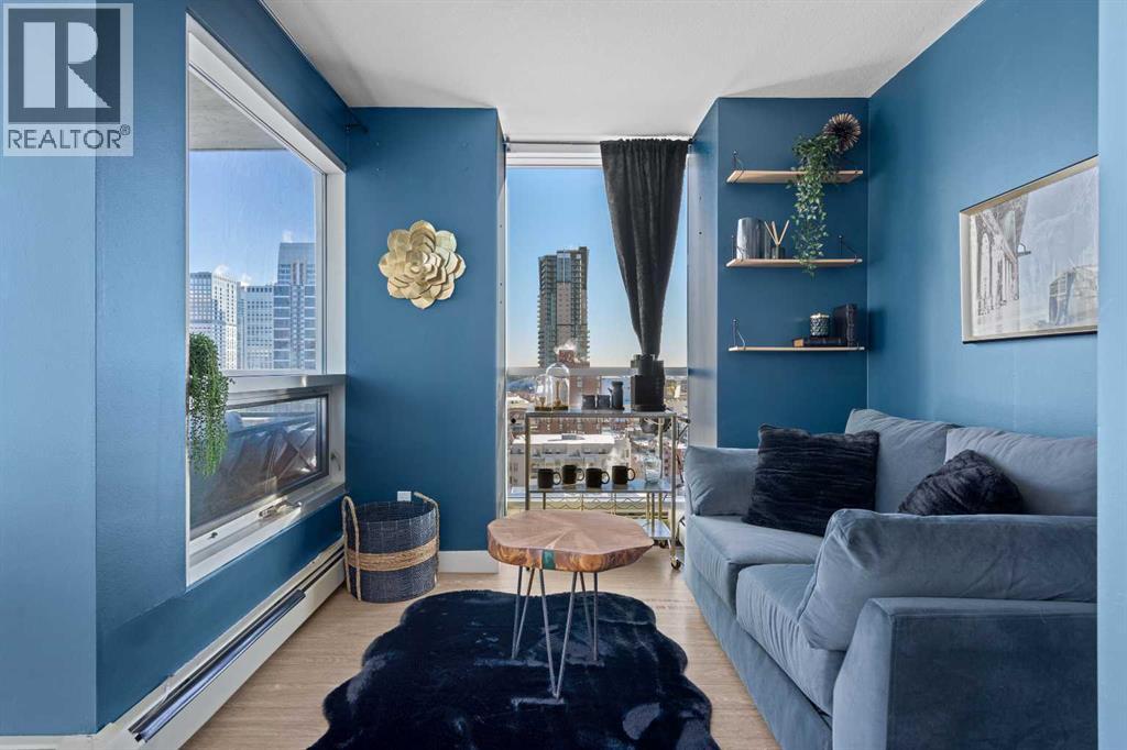 Stunning downtown skyline views! This ultra modern 2 bedroom 2 bathroom property features a wide open concept perfect for entertaining. Floor to ceiling windows allow full views of the beautiful downtown as well as Calgary stampede grounds. This concrete building has fantastic walkability to 4th St shops, restaurants, is a short stroll to downtown and has great access to everything your lifestyle needs. There's also titled, heated underground parking, gas BBQ hook up and AC to keep you cool in the summer, call today to view! (id:53676)