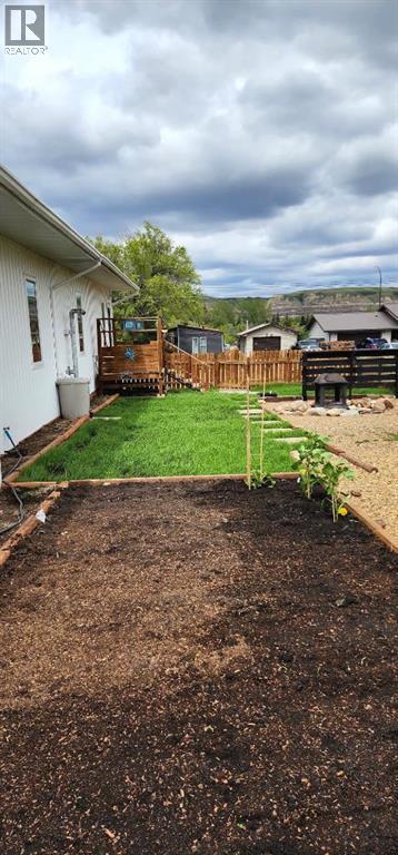 Looking to maximize your investment? At just $315 per square foot - well below the average in Drumheller - this home is a great deal! This fully finished bungalow offers great value, with lower property taxes than Calgary and energy-efficient features that cut utility costs, keeping more in your pocket.Step inside to discover recent renovations that elevate both style and functionality. The living room and kitchen have been upgraded with a rustic rough-cut wood feature wall, trendiest paint colors, and a modern dining area light fixture. The kitchen is a chef’s dream, now boasting additional custom cabinetry with 24 sq. ft. of extra storage, elegant wooden countertops, and matching window-frame shelves—the perfect spot to house your plants or ripen fresh tomatoes from your own backyard garden.A Home That Checks Every BoxIf you’re a ready-to-act buyer, buckle up—your anticipation is about to hit the red zone. This home hits the jackpot in the sought-after, quiet community of Newcastle. Situated on a family-friendly street, this move-in-ready bungalow sits on a ¼-acre lot, complete with an oversized double garage, a private backyard, and stunning views of the Hoodoos.Inside, no detail has been overlooked. Offering 4 bedrooms, 3 bathrooms, and over 1,800 sq. ft. of finished space, this home was custom-designed for comfort year-round. Stay warm in winter and cool in summer with low-cost utilities, featuring Rockwool insulation and R60 blown-in attic insulation. Cozy up in the family room with the new pellet stove, heating up to 2,000 sq. ft. on chilly nights.An Incredible Airbnb OpportunityWith a high volume of tourists year-round, this property offers strong potential as an Airbnb investment—whether as a primary residence or income-generating rental.Outdoor Living at Its FinestEntertain guests on the expansive 18x27 patio, complete with a fire pit, or sip your morning coffee on the 6x16 front deck. Enjoy even more outdoor living on the newly added 16x16 deck wi th gazebo - perfect for shaded summer lounging.The backyard is a nature lover’s dream, featuring Honeycrisp apple trees and blueberry bushes.There’s even RV parking with a 30-amp hookup for added convenience.Upgrades & Highlights:Energy-Efficient Upgrades: White siding & steel roofing for lower energy costs.New Double Garage: Steel roof & vertical siding for durability.New Entrance Doors & Windows.Fully Fenced with Low-Maintenance Landscaping: Stone & mulch yard.New Electrical System: 100-amp panel, meter base, and wiring.Luxury Kitchen Upgrades: Ceramic apron-front sink, soft-close cabinets & drawers, 5 LG smart appliances, a 7cu.Ft chest freezer and a microwave.Outdoor Motion Sensor Lighting for security.Heated & Well-Insulated Crawlspace.All this, and you’re just minutes from parks, hiking trails, live theatre, and the world-class Dinosaur Museum.This isn’t just a house—it’s a lifestyle upgrade. Book your showing today and experience this peaceful paradise firsthand! (id:53676)