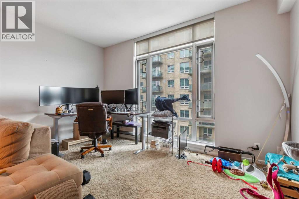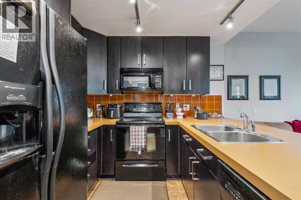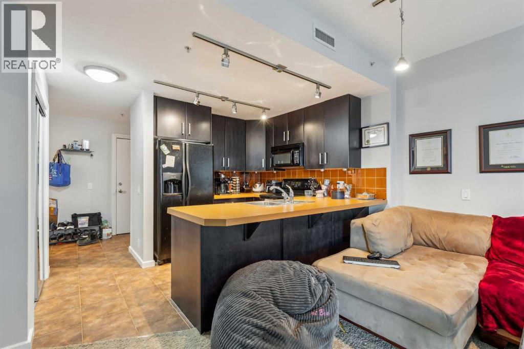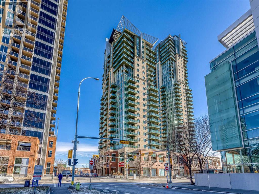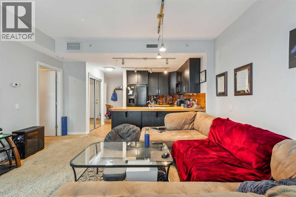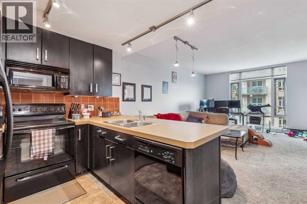 Welcome to urban living at its finest in the sought-after SASSO building! This 1 bedroom + den, 1 bathroom condo is perched on the 16th floor, offering sweeping southwest views which offers maximum sun exposure! This unit is located on the best side of the building, offering incredible views of both the mountains and Stampede Park- a rare offering, as one of only six units in the building with an oversized covered balcony and expanded floor plan. *THE SPECIAL LEVY THAT WAS ASSESSED JULY 2025 FOR $7,188.08 HAS BEEN PAID IN FULL BY THE SELLER. The receipt is included in supplements* Step inside to a bright, open-concept layout featuring a modern kitchen with upgraded dark wood cabinetry, a chic Italian tile backsplash, and sleek black appliances. The kitchen flows seamlessly into the spacious dining and living areas, creating a perfect space for both everyday living and entertaining.The generous primary bedroom features a walk-through closet that connects to the stylish 4-piece bathroom. Just off the entrance, a convenient den with built-in desk and hookups is ideal for a home office. In-suite laundry is tucked away in the primary bedroom closet for ultimate convenience.This unit includes one titled underground parking stall and a separate storage unit.Residents of SASSO enjoy premium amenities including a fully-equipped gym, recreation and billiards rooms, a hot tub, theatre room, and a common outdoor patio and garden space. Located just steps to the Stampede Grounds, The Saddledome and the upcoming new arena, as well as the shops, dining, and nightlife of 17th Avenue, this is an unbeatable location for work, play, and everything in between.Whether you’re a first-time buyer, investor, or looking for a vibrant downtown lifestyle, this unit checks all the boxes. This unit is INCREDIBLE VALUE, The condo with one titled parking stall is assessed at $327,000! Don’t miss out, book your private viewing and start enjoy your dream inner city lock and go lifestyle! (id:53676)
